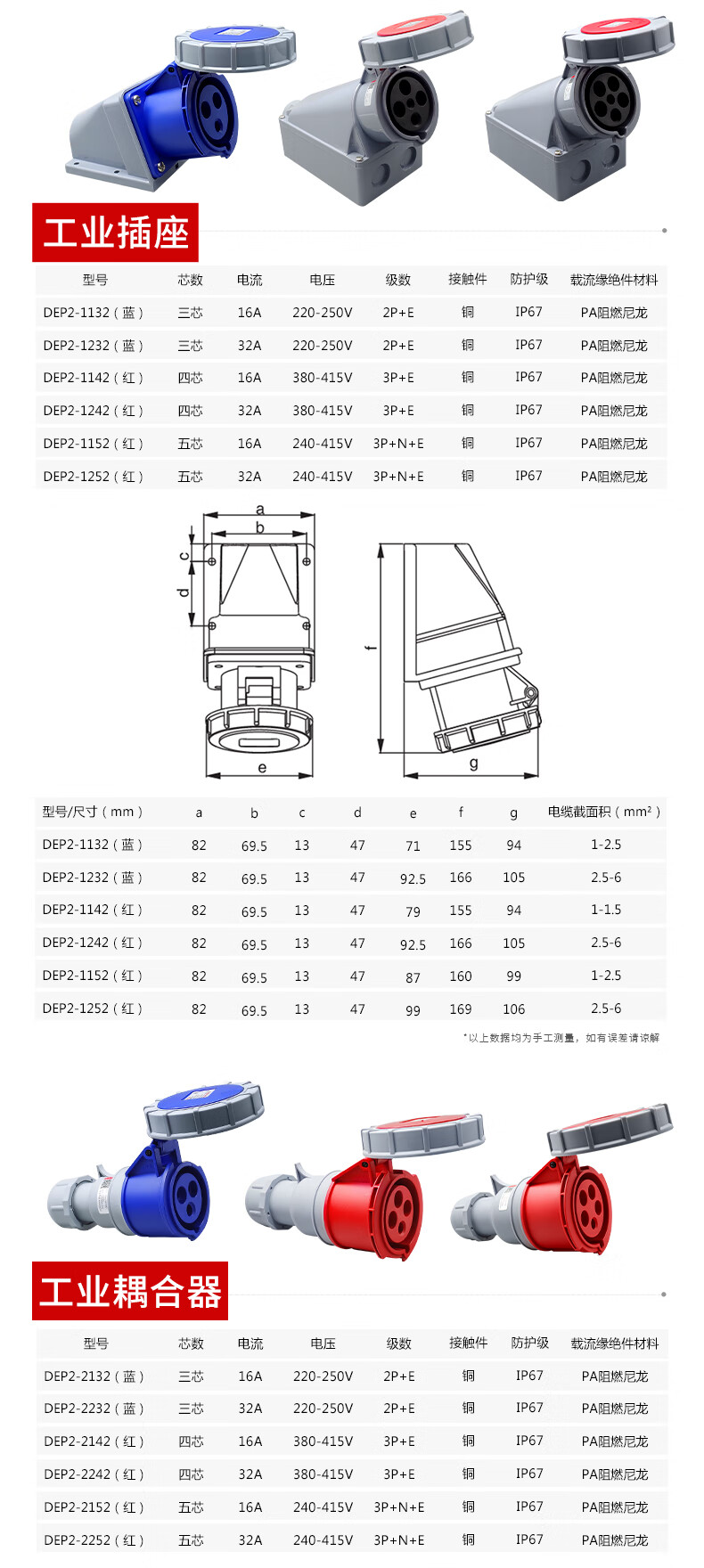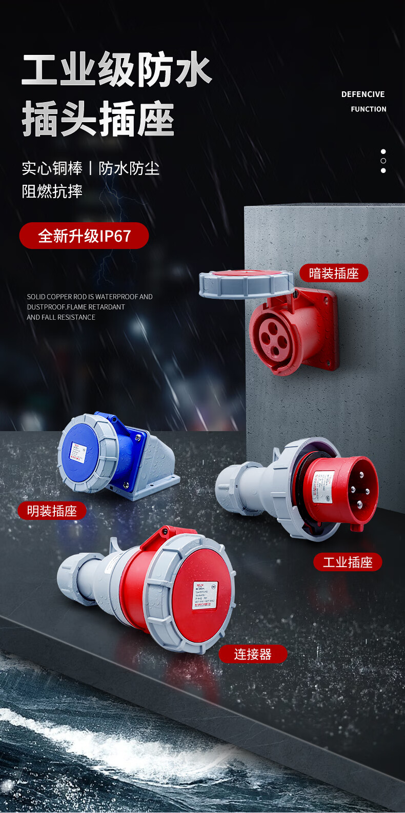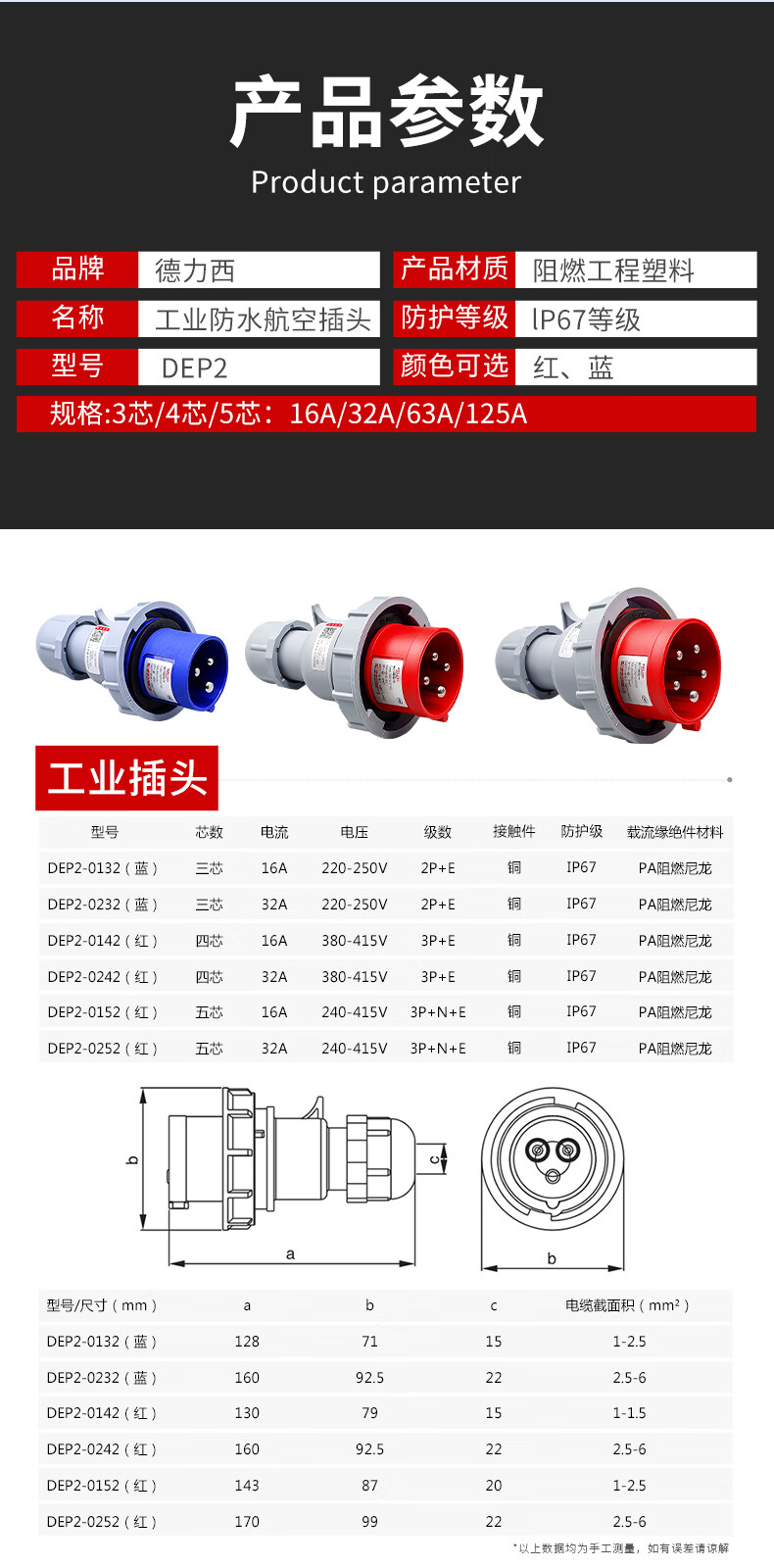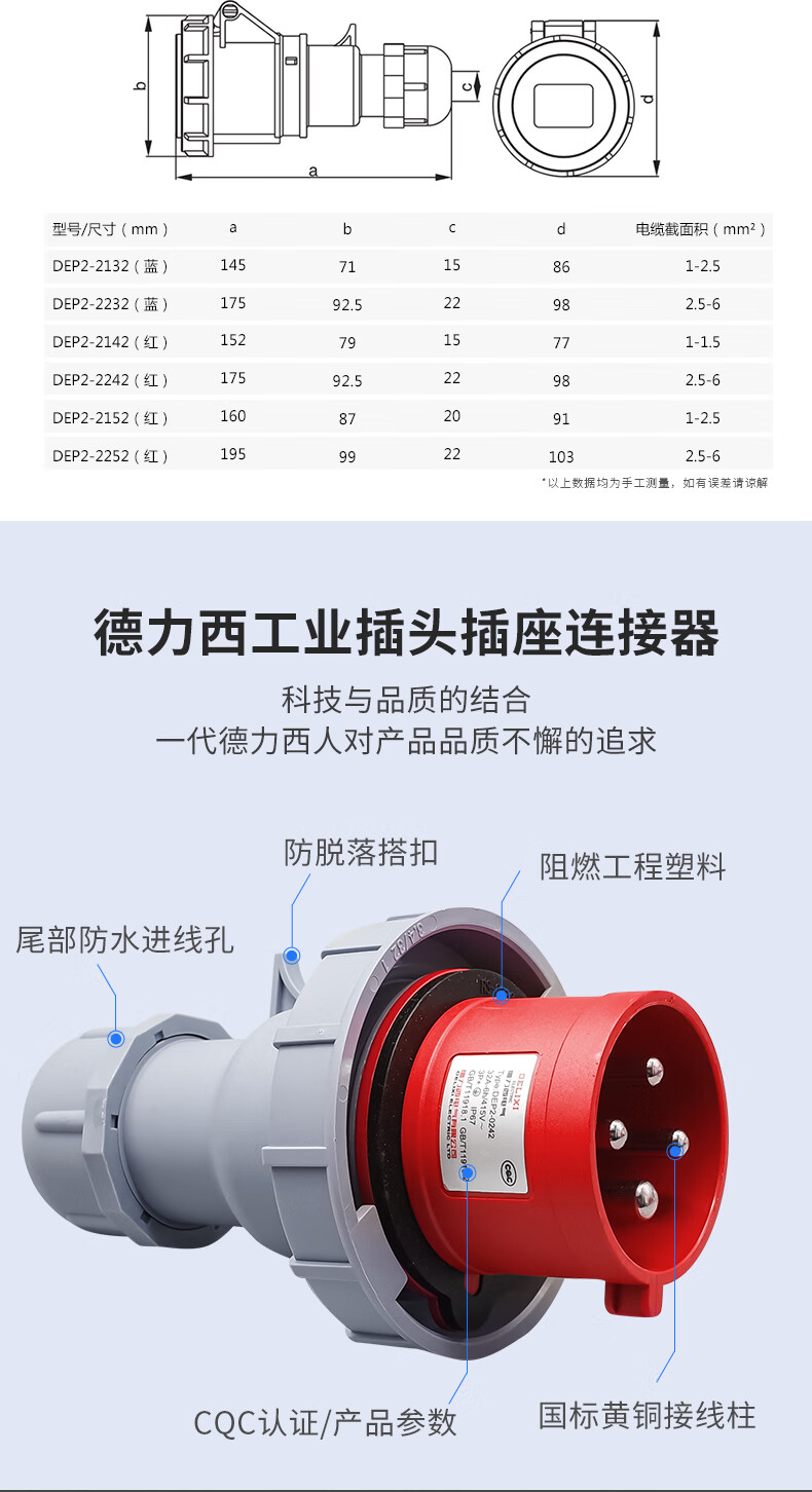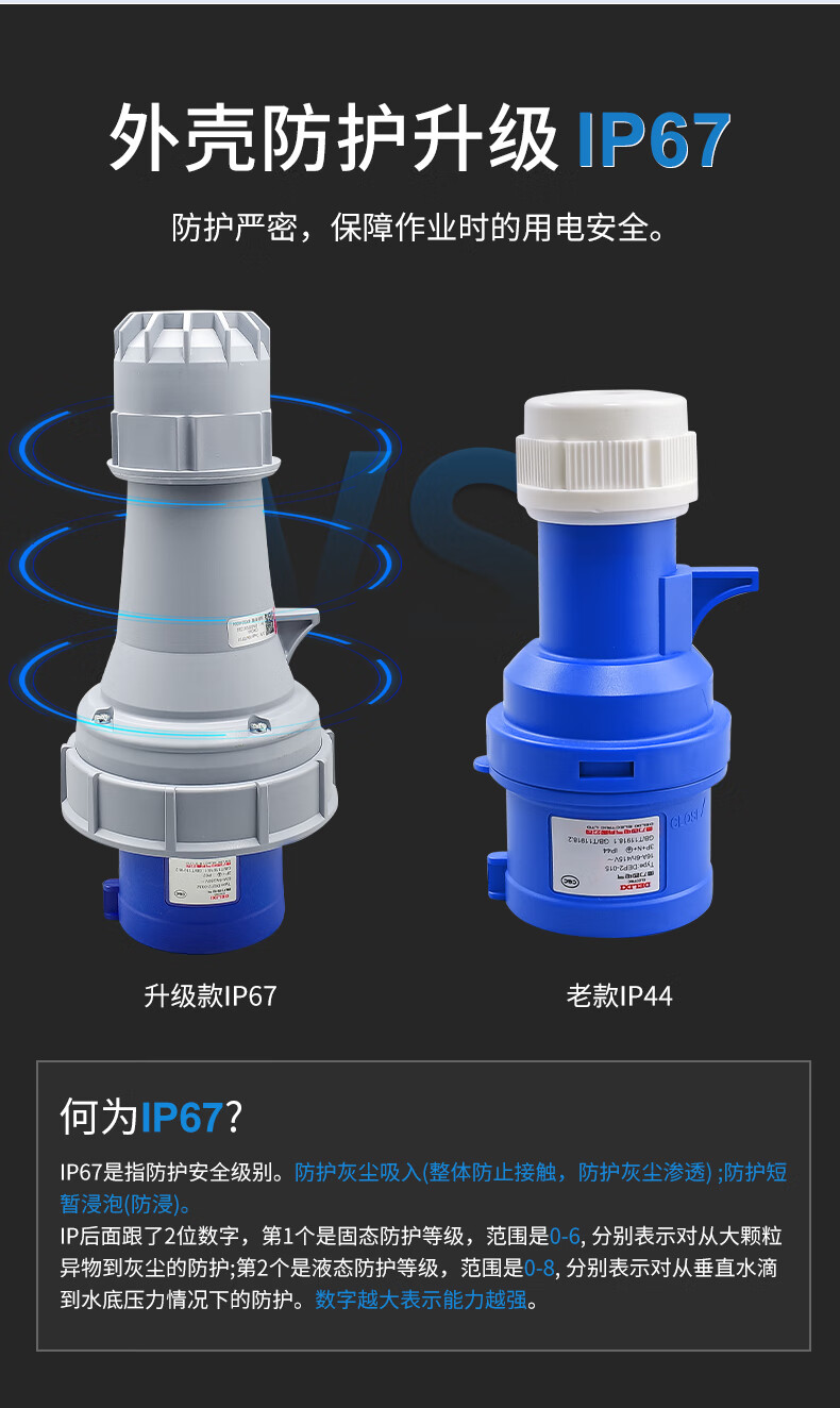 Delixi IP67 waterproof industrial aviation plug 63a socket 3-core 4 three-phase electricity 380v male and female 125 connection 3-core 63A exposed socket