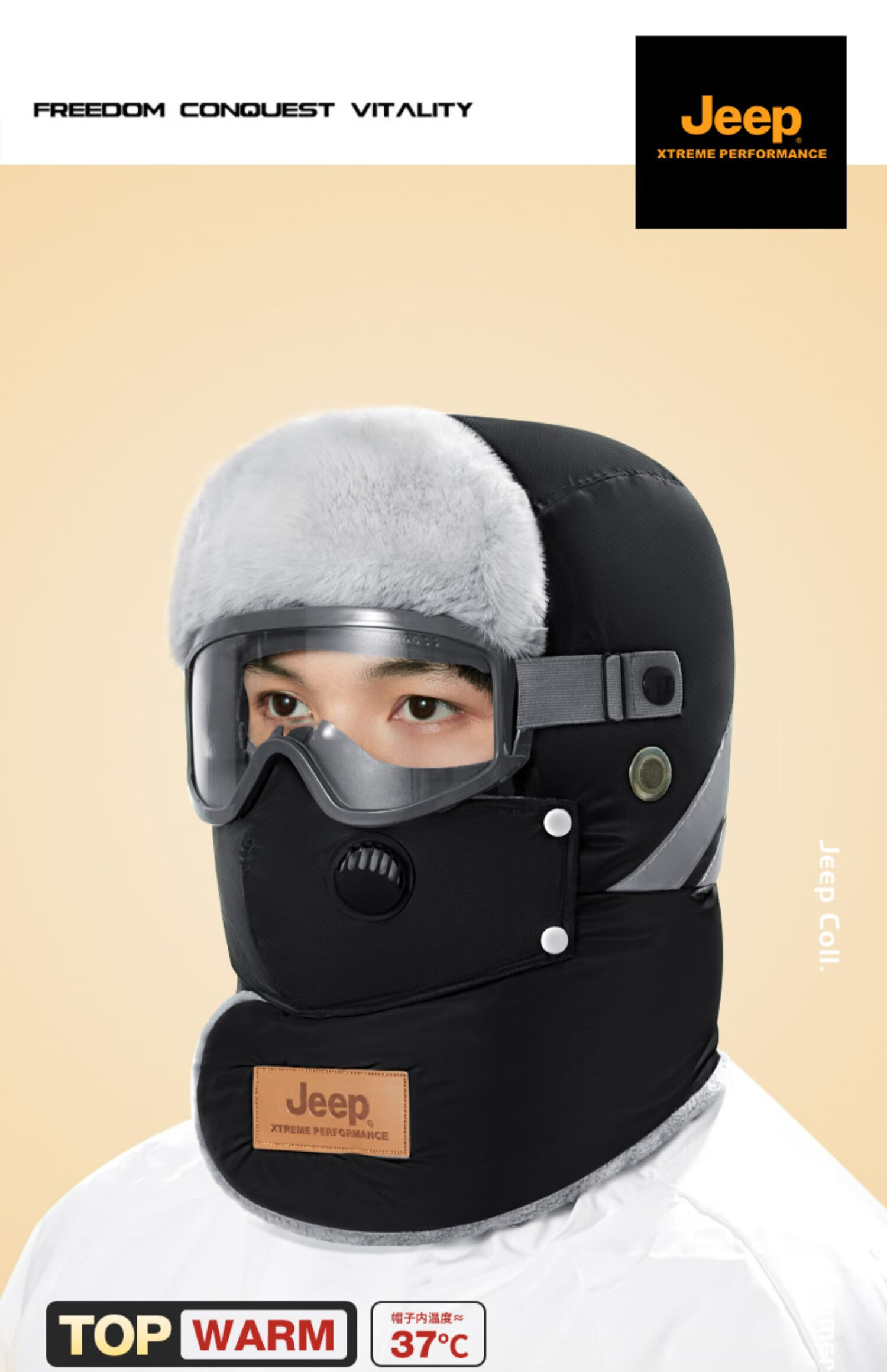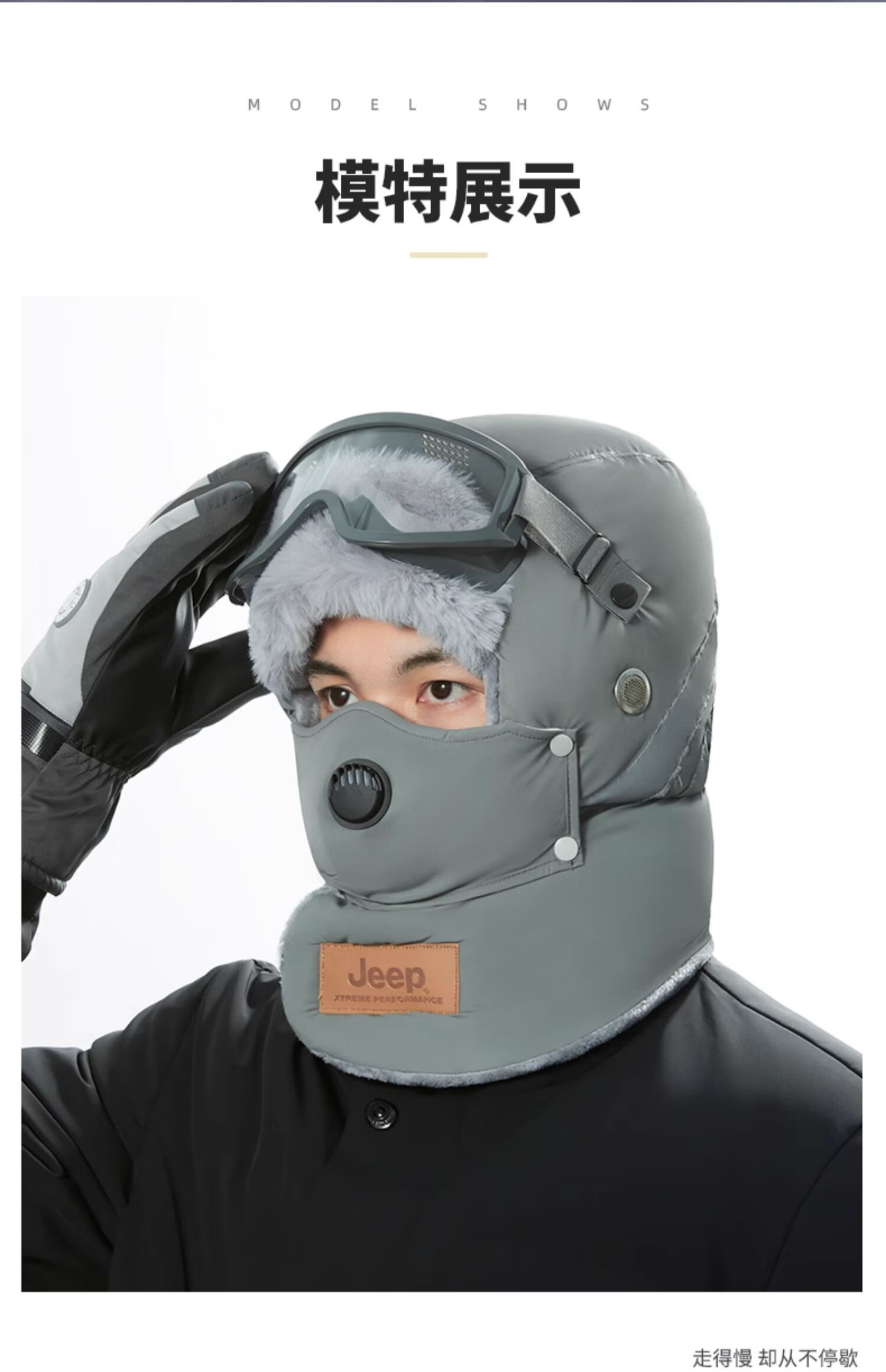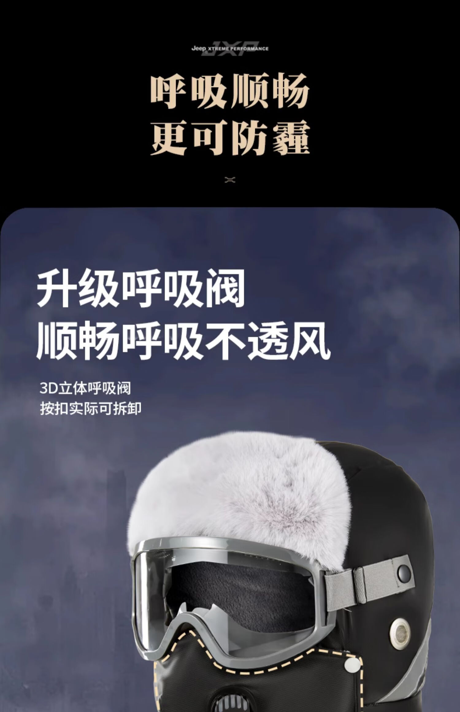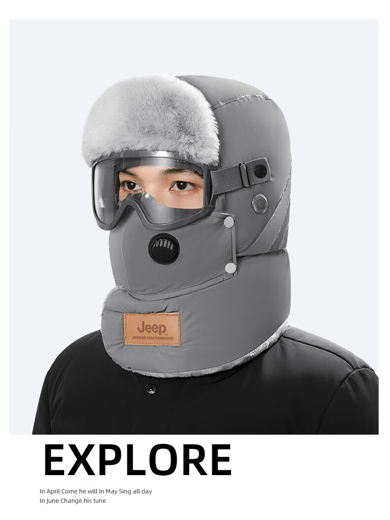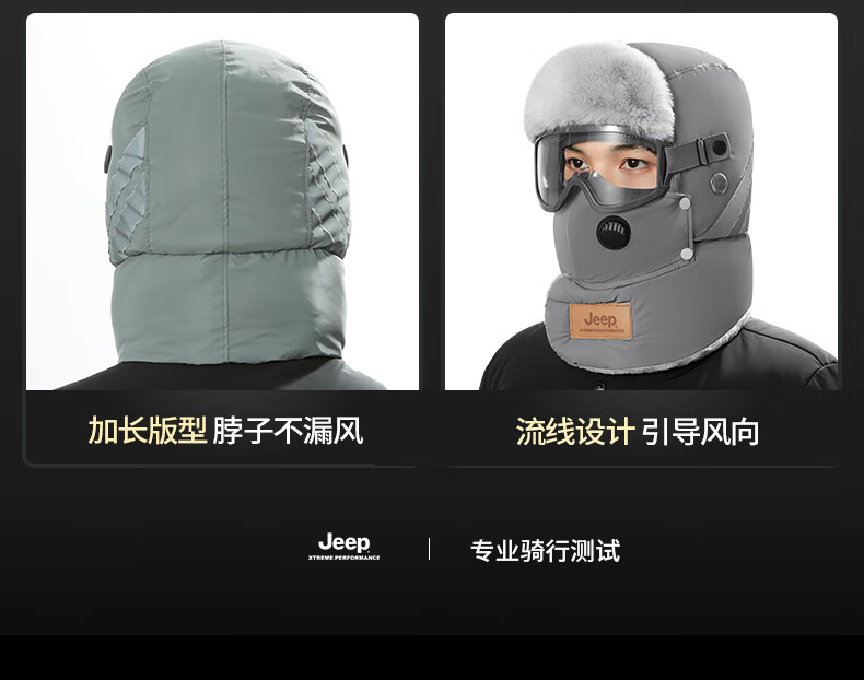 JEEP Jeep Front Hat Men's Winter Warmth Artifact Northeast Electric Vehicle Mask Cycling Men's Windproof Hat Men-Black Professional Windproof Glasses