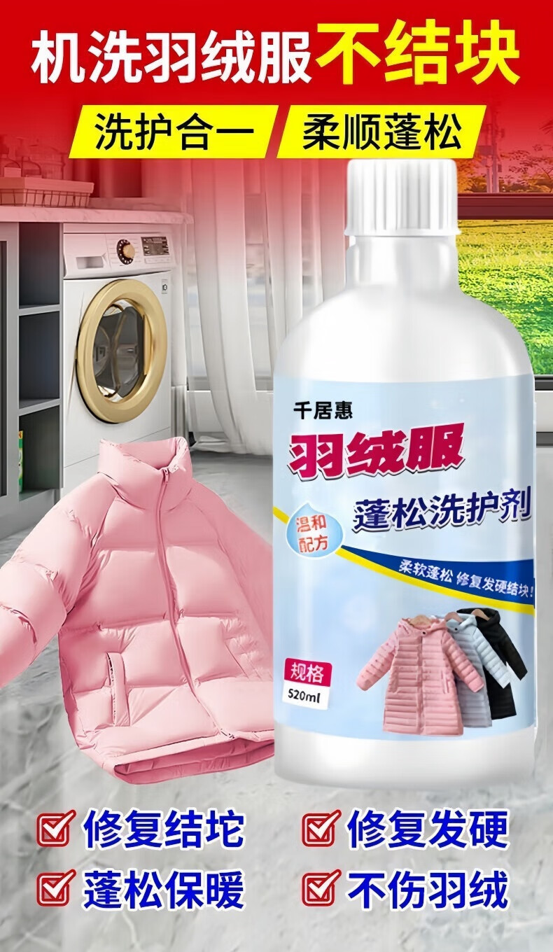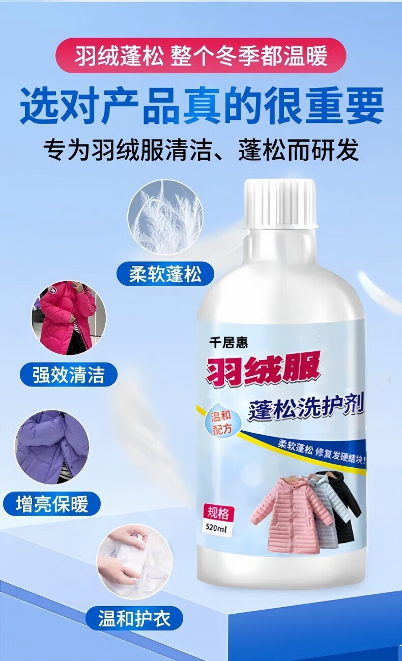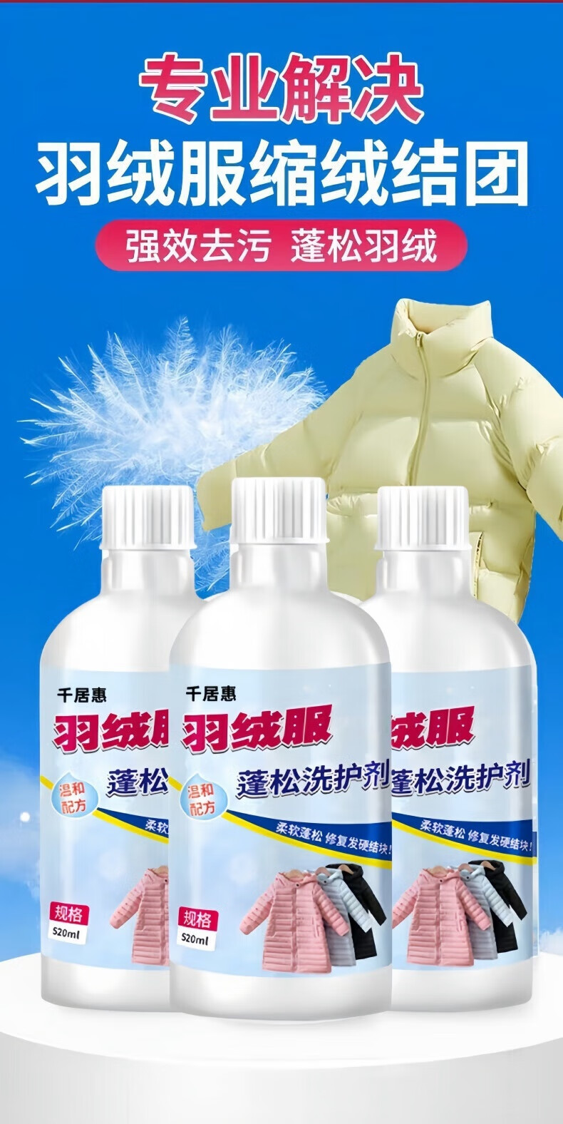 Qianjuhui down jacket fluffing agent washing machine special detergent down jacket cleaning agent machine washable special laundry detergent 520ml 2 bottles anti-caking + fluffy + machine washable