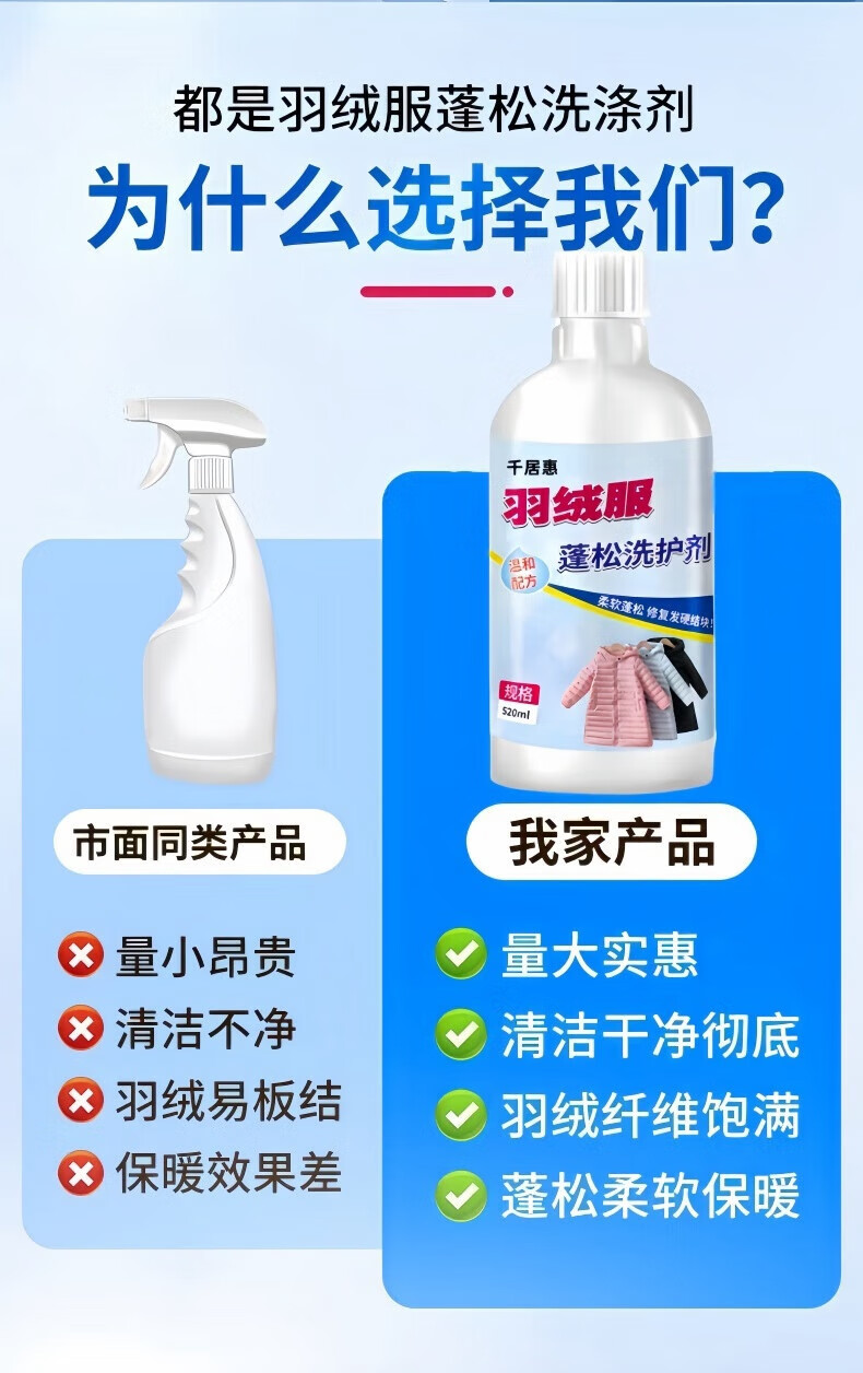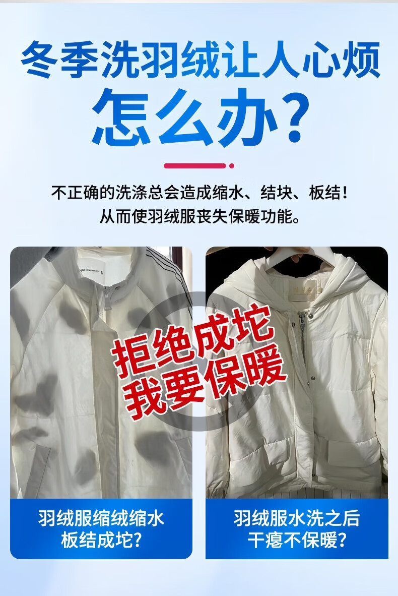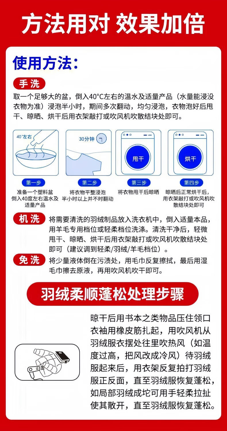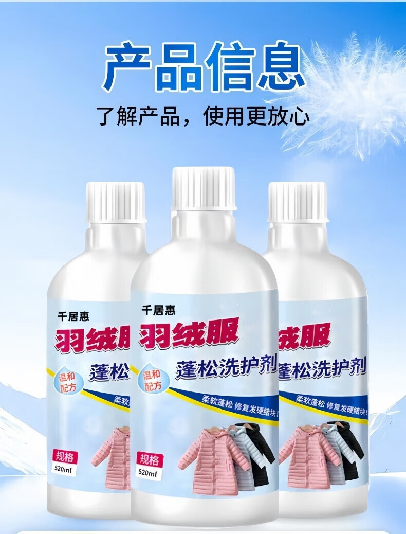 Qianjuhui down jacket fluffing agent washing machine special detergent down jacket cleaning agent machine washable special laundry detergent 520ml 2 bottles anti-caking + fluffy + machine washable