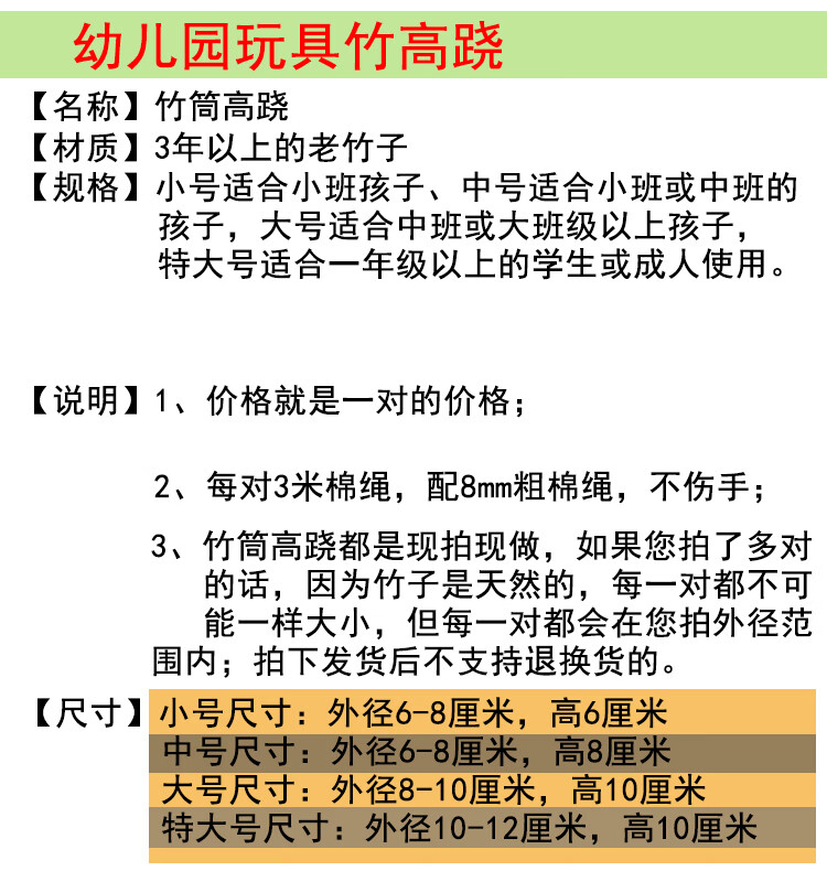 Bamboo tube stilts Kindergarten Bamboo Toys Children's Bamboo High Balance Training Equipment Small stilts without bamboo sections Large bamboo sections at the top A pair of stilts