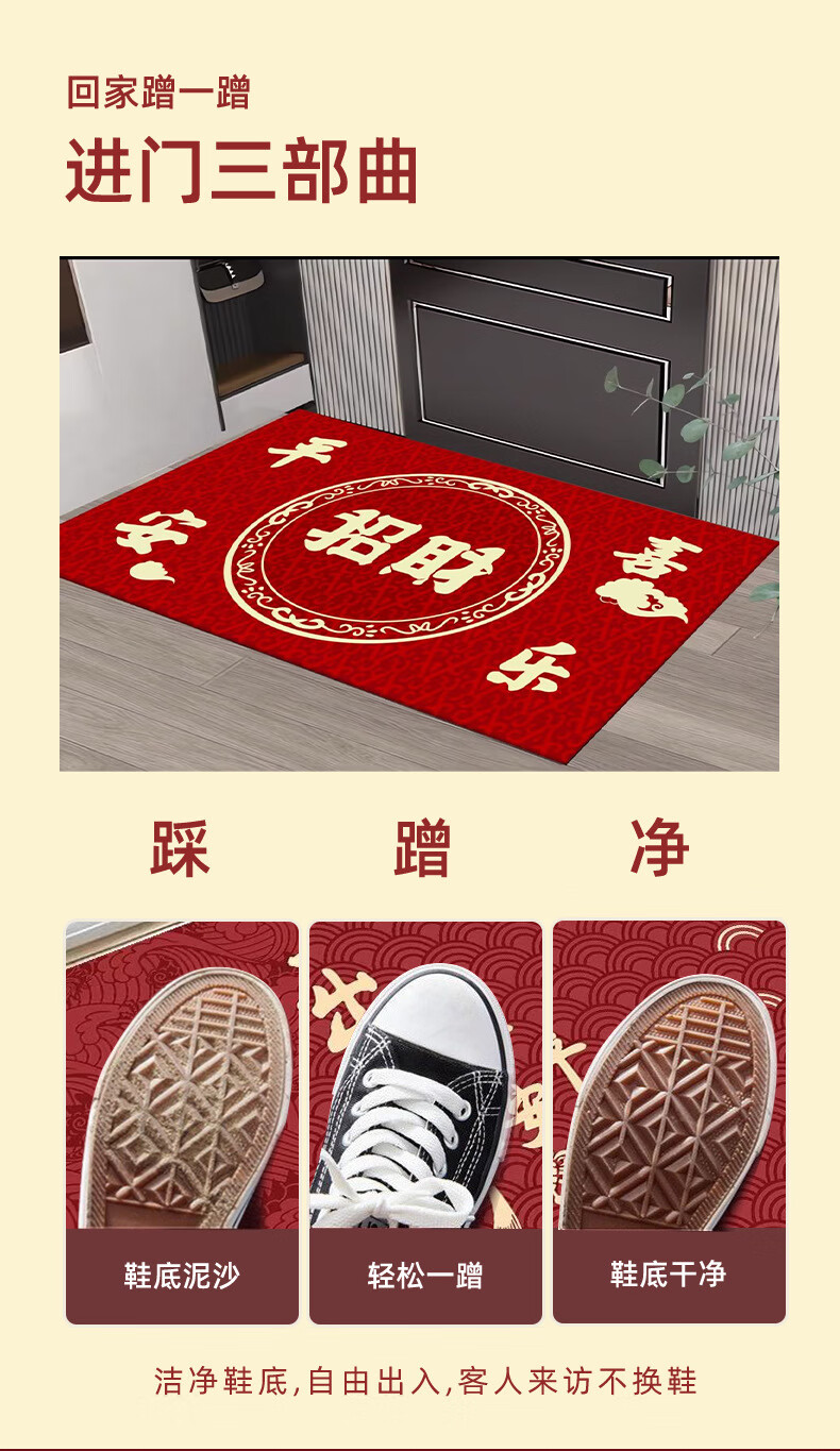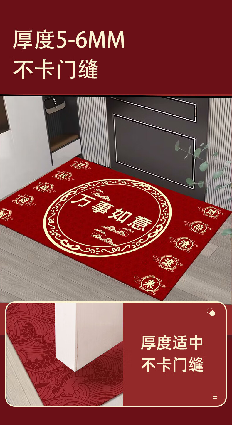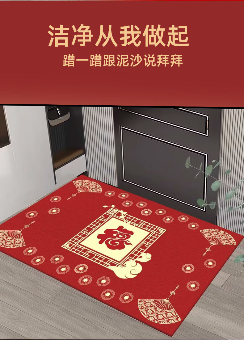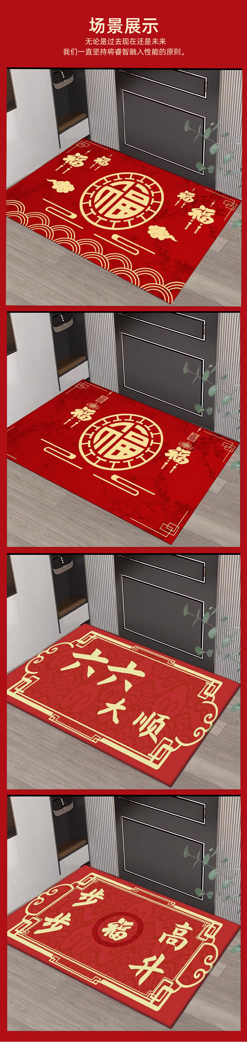 Acacia Tong New Chinese Style Fu Character Floor Mat Entry Door Mat Carpet Entrance Entrance Mat Wear-Resistant Anti-Slip Entry Door Mat Red Floor Mat Good Fortune 1 50*80