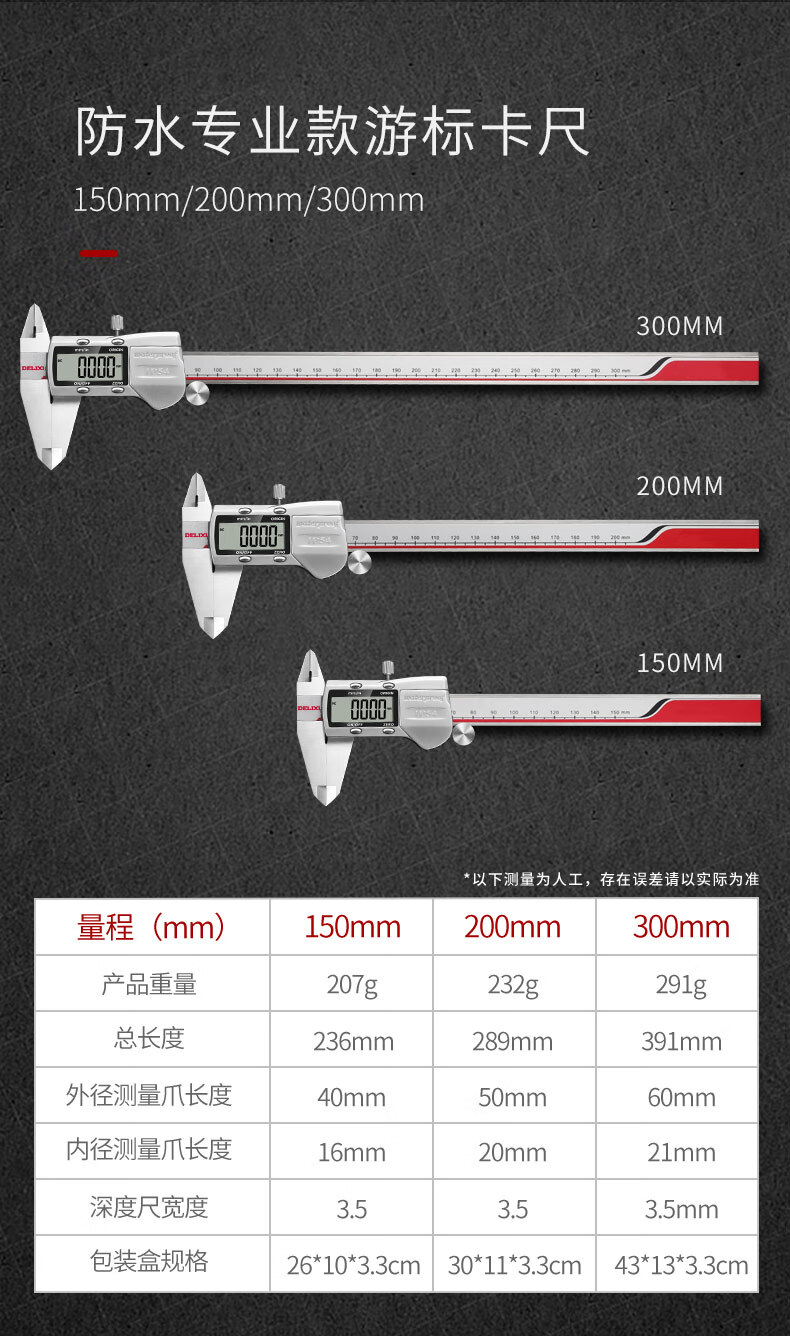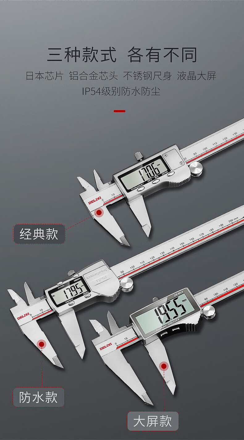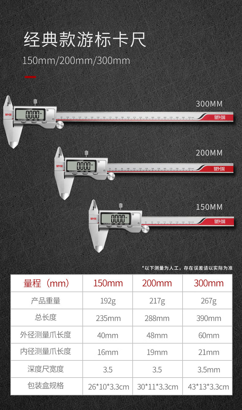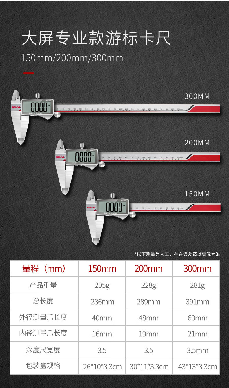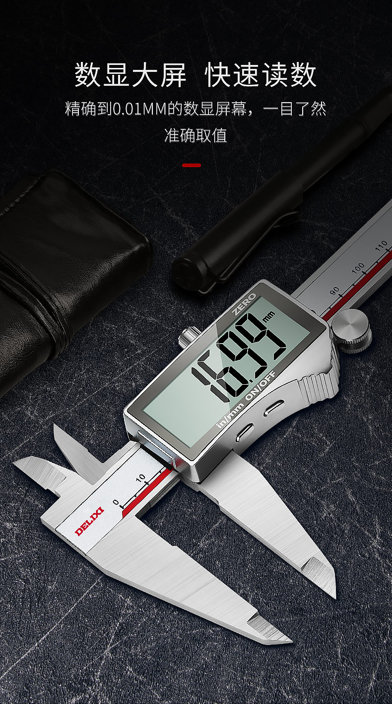 Delixi electronic vernier caliper high-precision digital display industrial-grade small play high-depth oil mark caliper upgraded large screen-stainless steel digital display caliper 0-150mm
