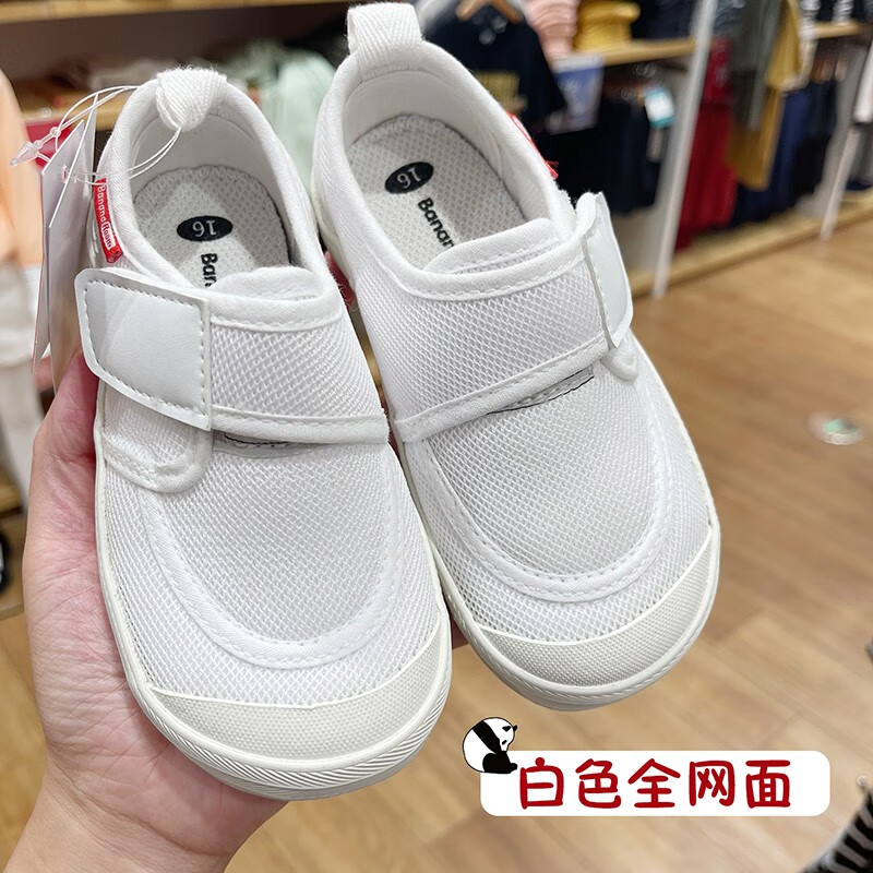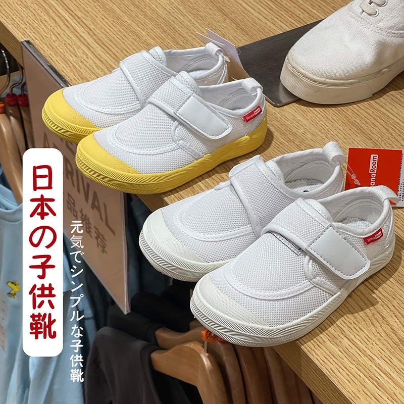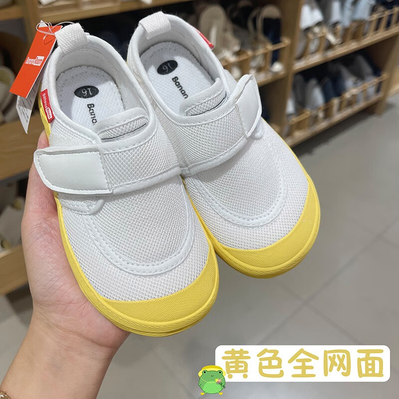 BananaRoom Japanese children's kindergarten baby white shoes for boys and girls sports shoes indoor floor shoes canvas shoes children's shoes yellow all-inclusive 21 inner length 14cm