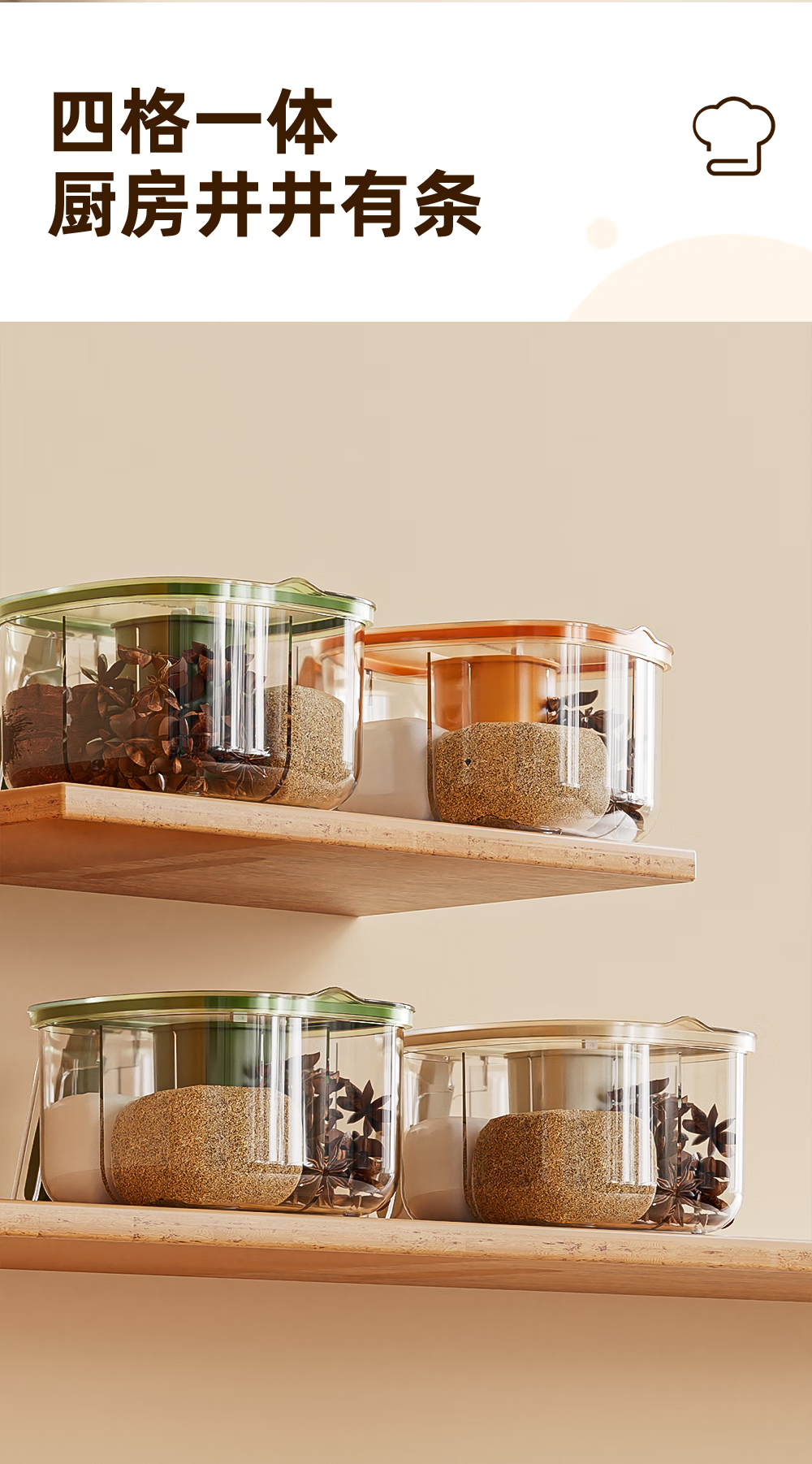 Modern housewife seasoning box multi-grid integrated set kitchen household storage seasoning salt shaker MSG seasoning box hand-held opening and closing seasoning box - off-white