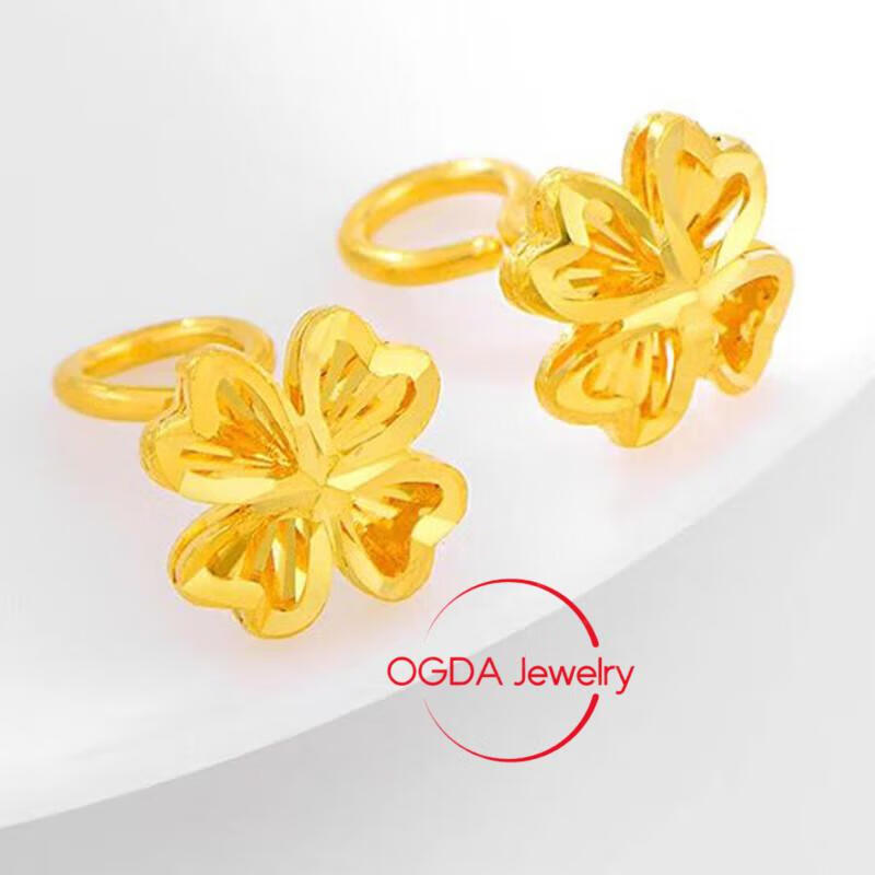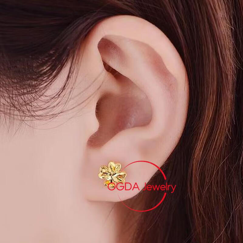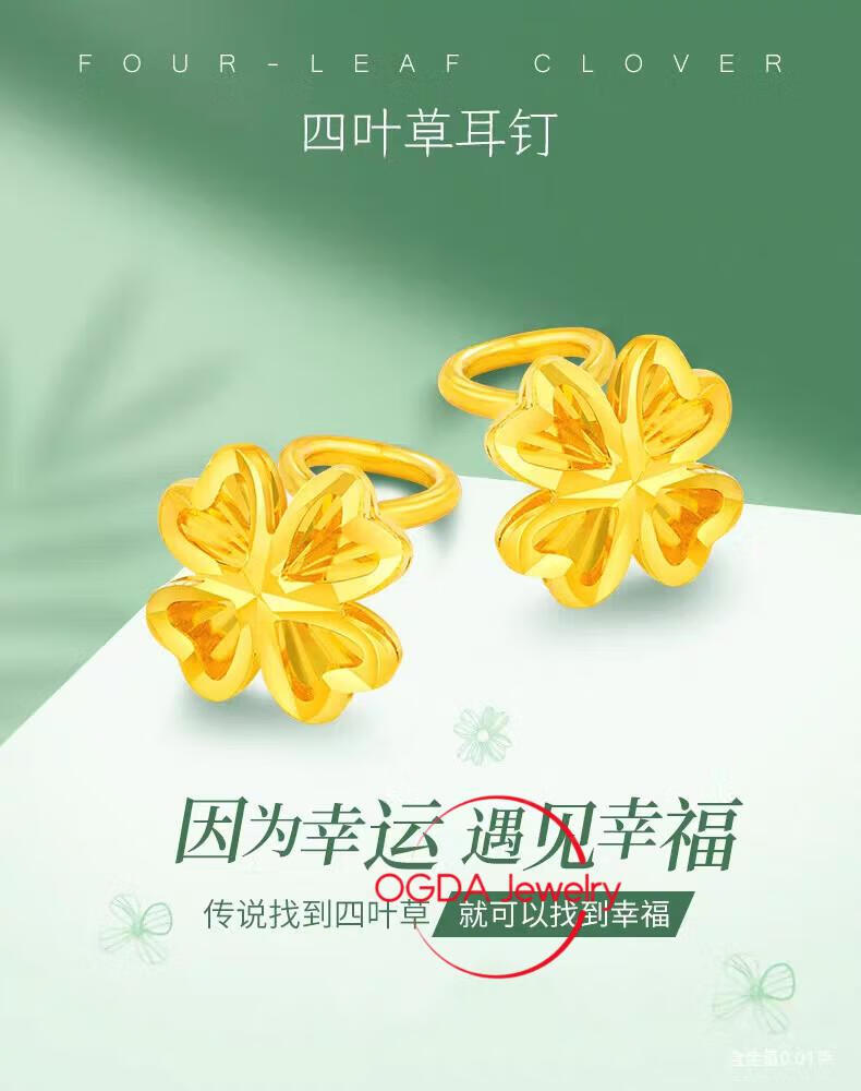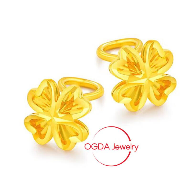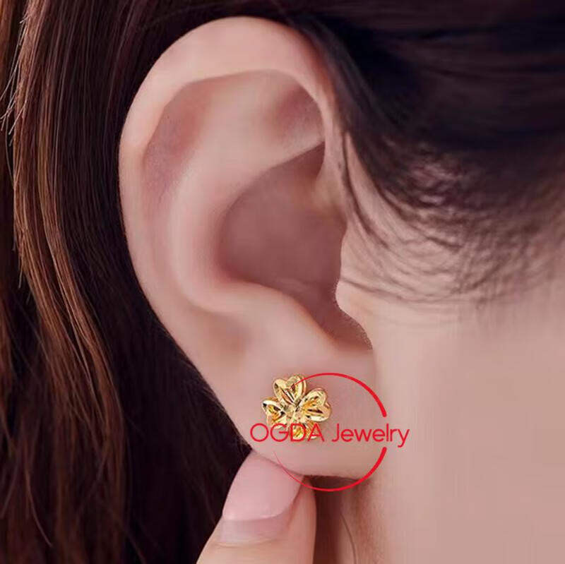 DL 1998 Fat Donglai same style 18K gold four-leaf clover gold-plated lucky female curved hook fashion temperament flower love small earrings gold four-leaf clover earrings (curved hook) pair