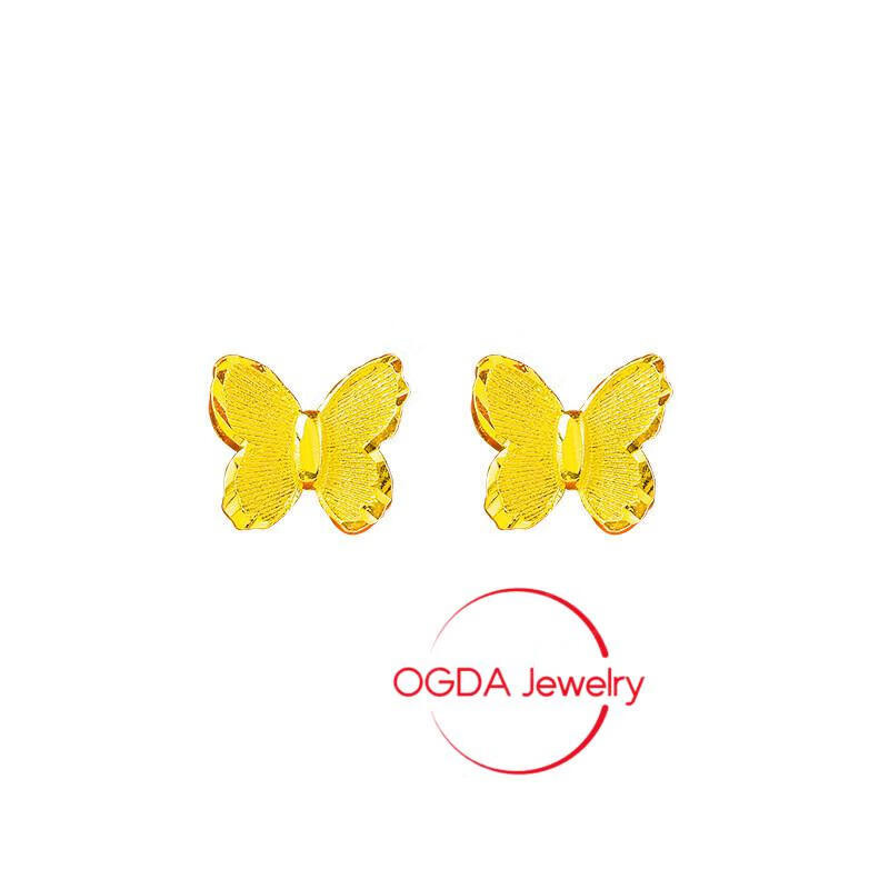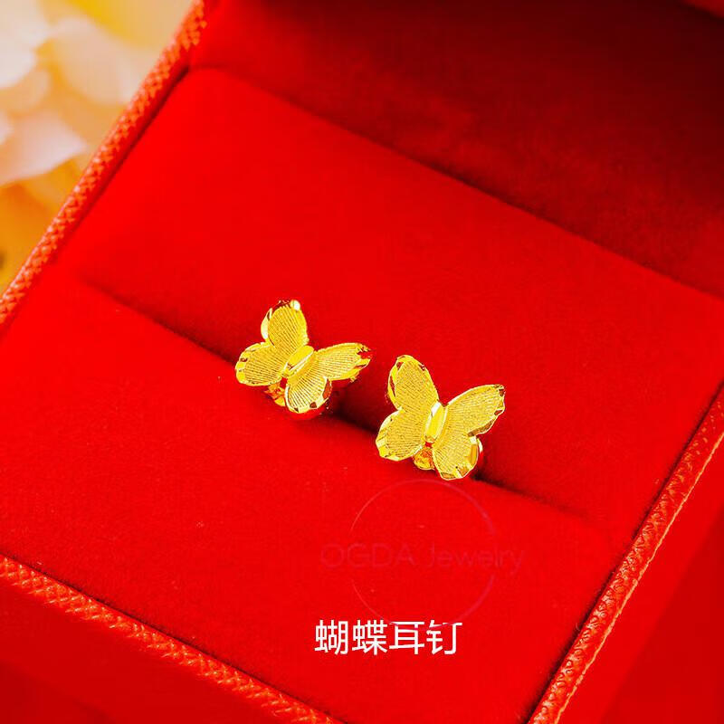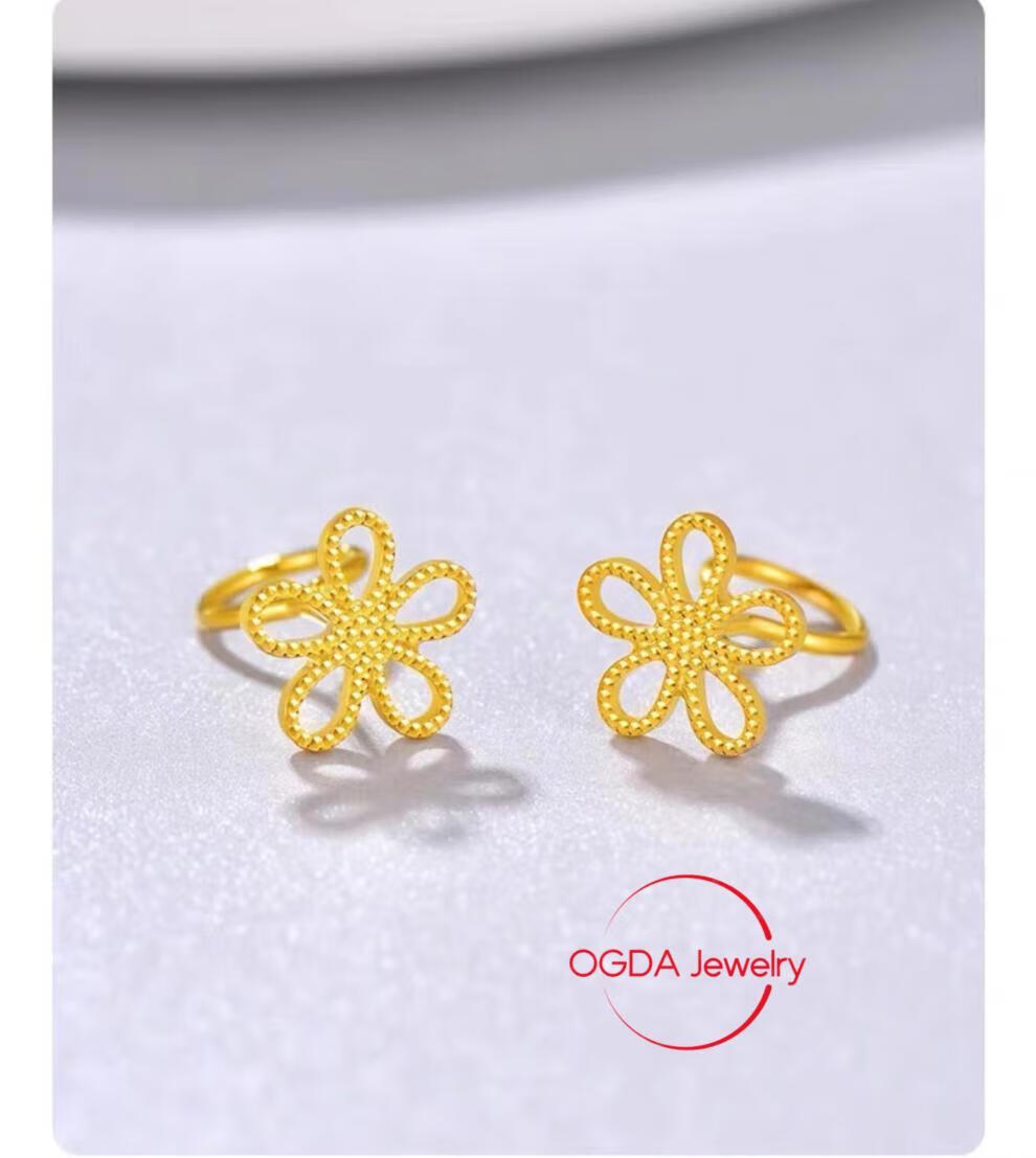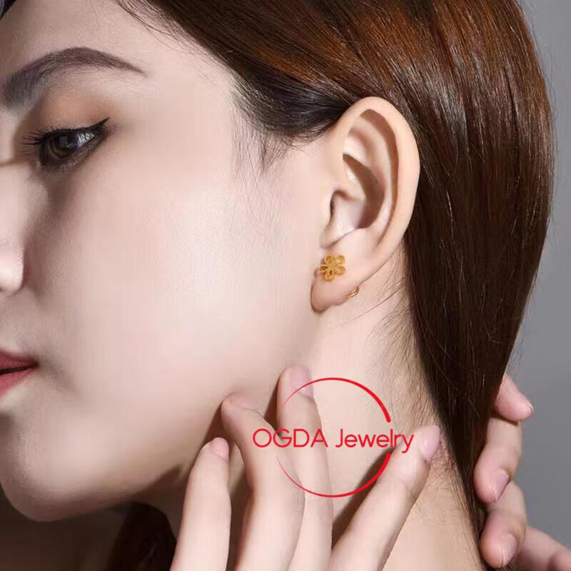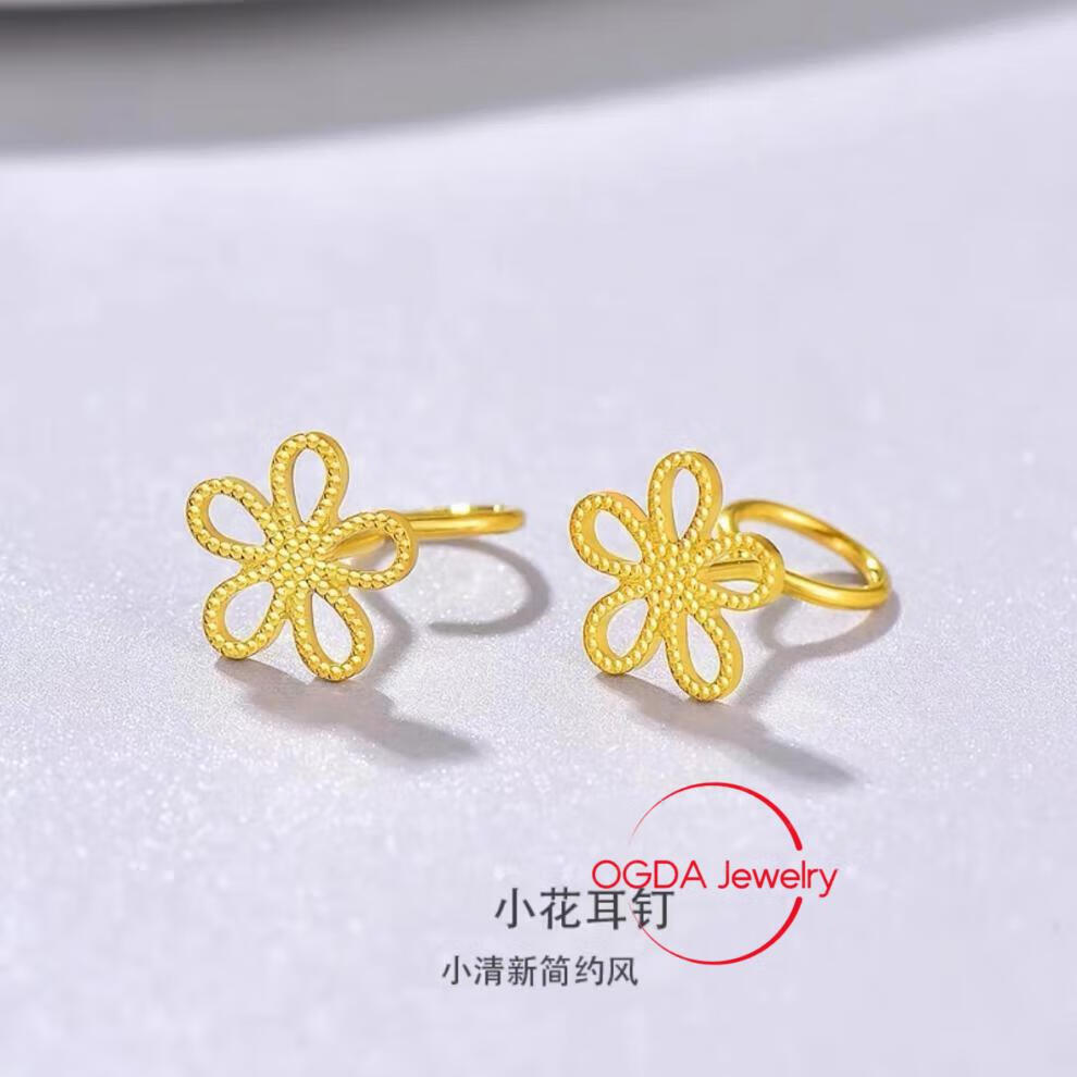 DL 1998 Fat Donglai same style 18K gold four-leaf clover gold-plated lucky female curved hook fashion temperament flower love small earrings gold four-leaf clover earrings (curved hook) pair
