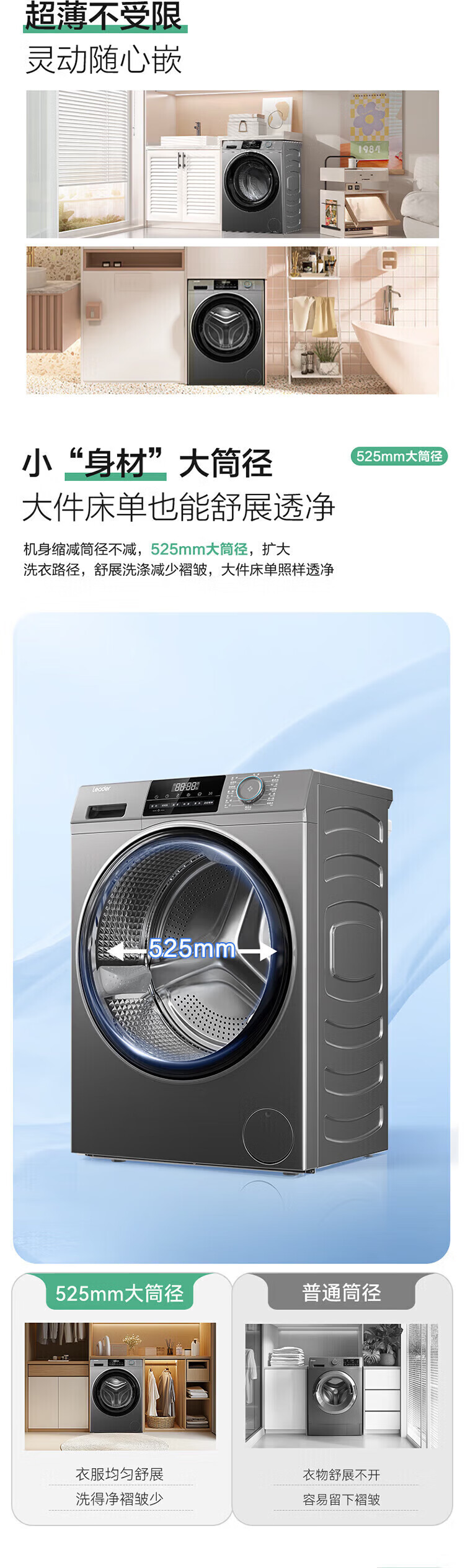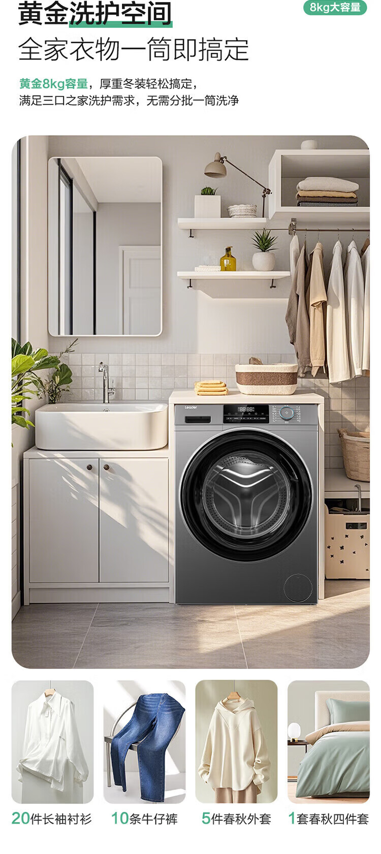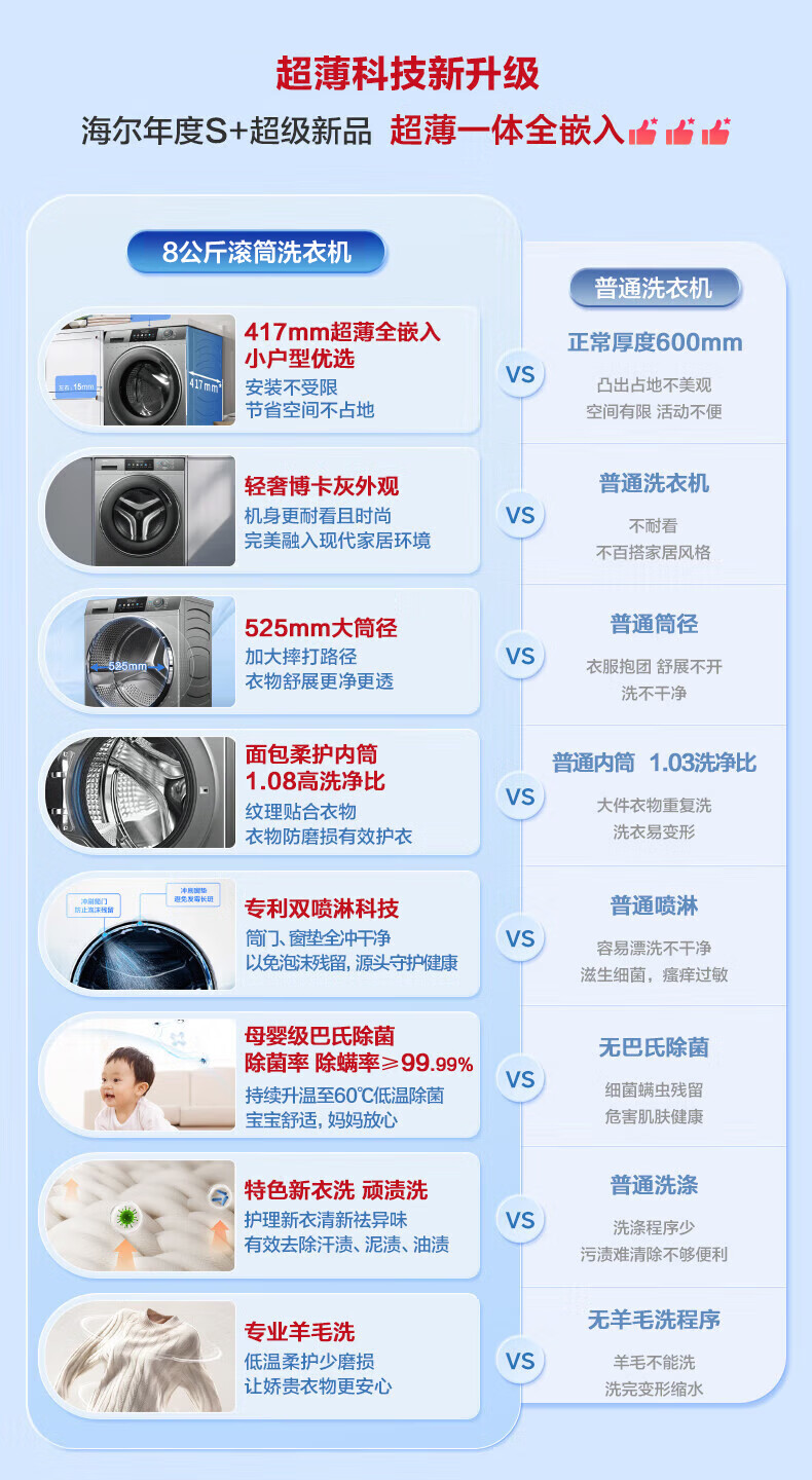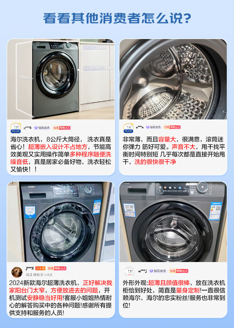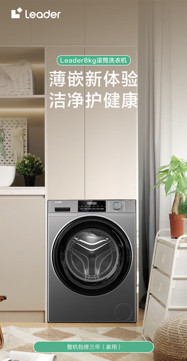 Haier (Haier) 417mm ultra-thin drum washing machine fully automatic 8kg small household rental built-in 525mm large diameter first-class energy-efficiency pasteurization trade-in commander wool and down washing + stubborn stain washing + new clothes washing + mite removal + child lock