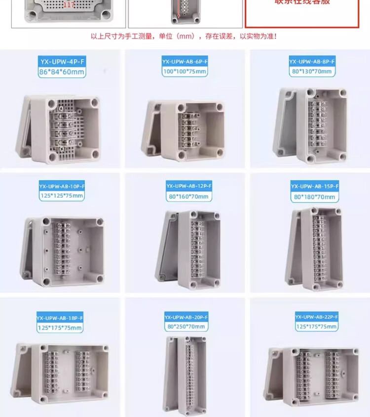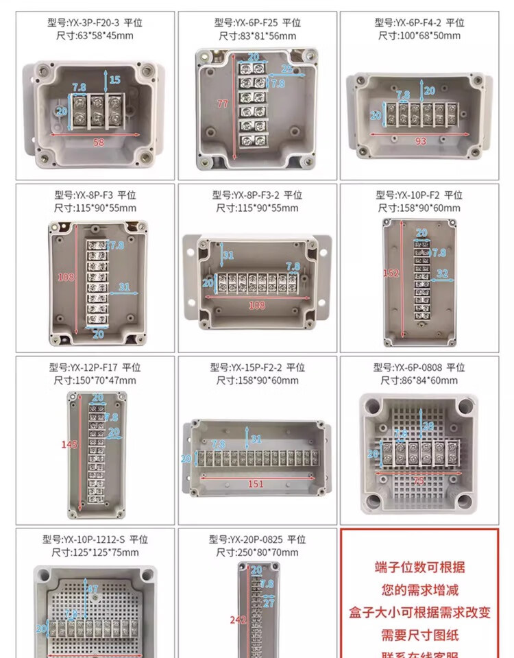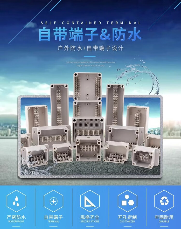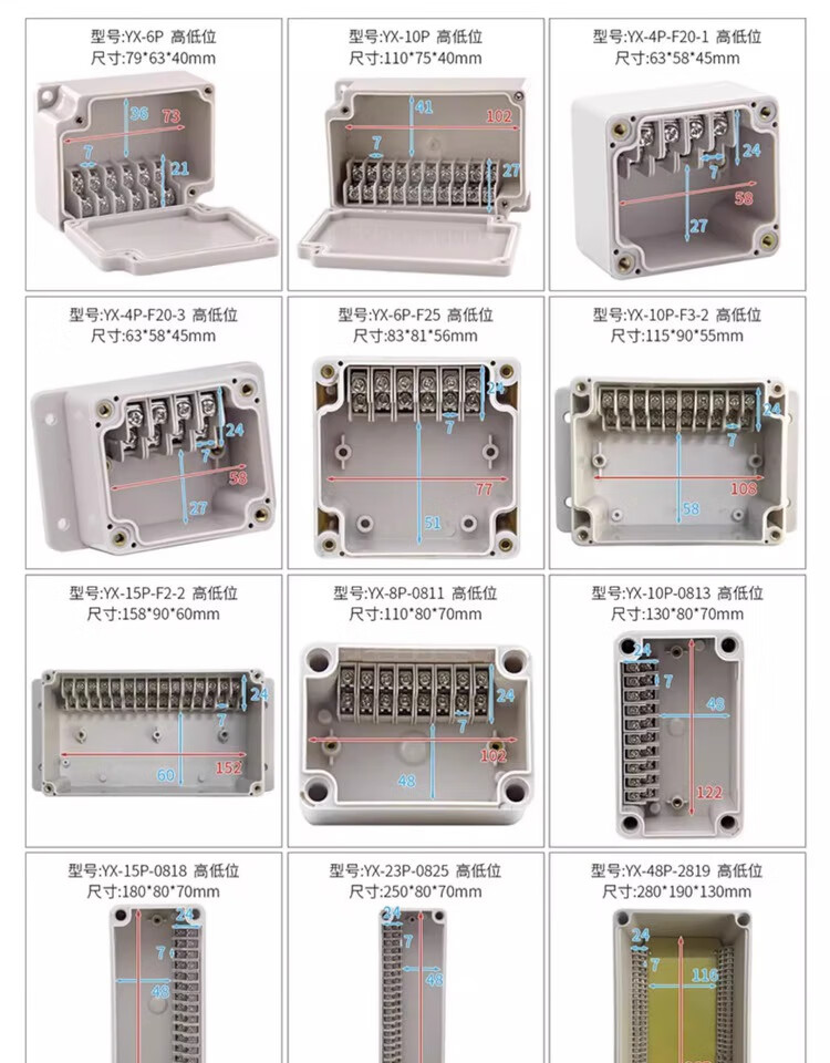 Outdoor waterproof junction box with terminals outdoor rainproof plastic power junction box industrial sealed circuit junction box new material YX-GD-15P 158*86*55mm