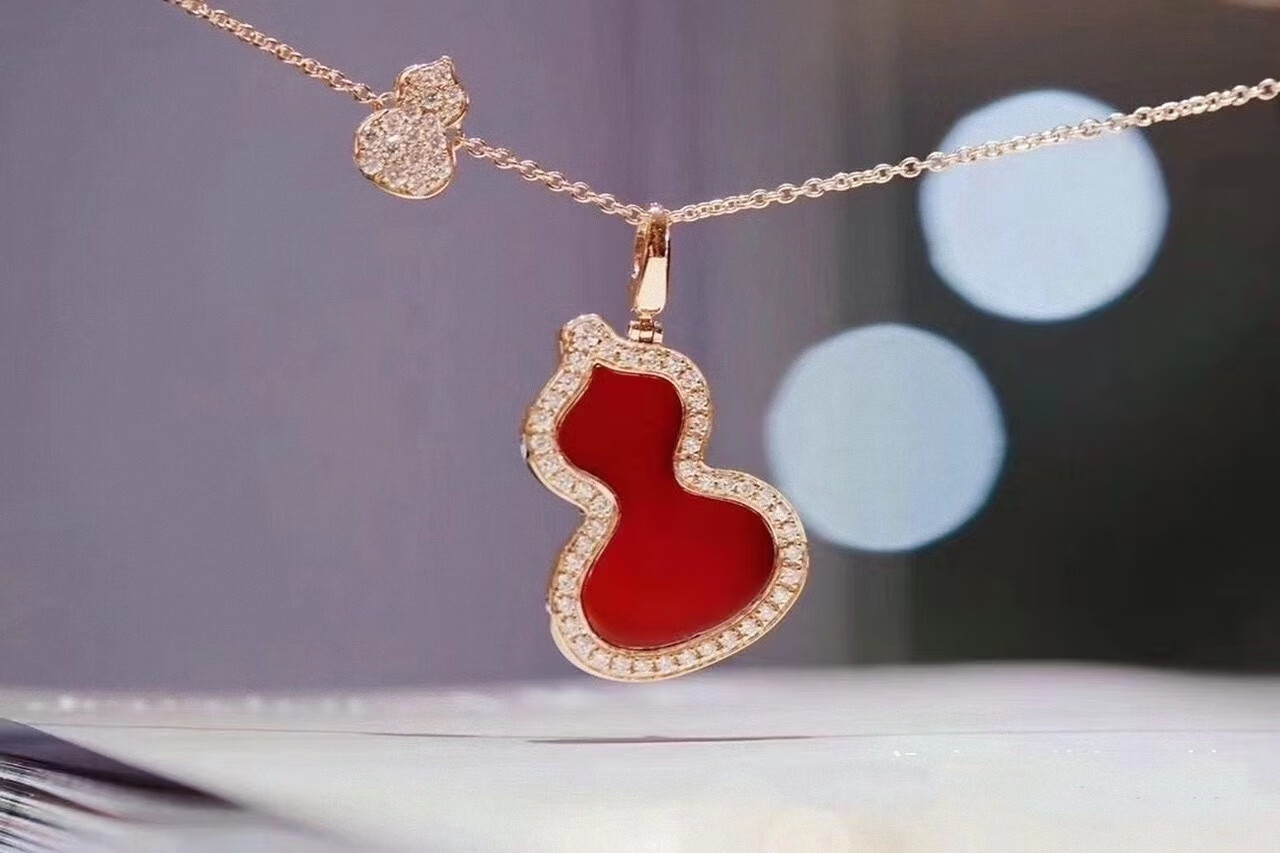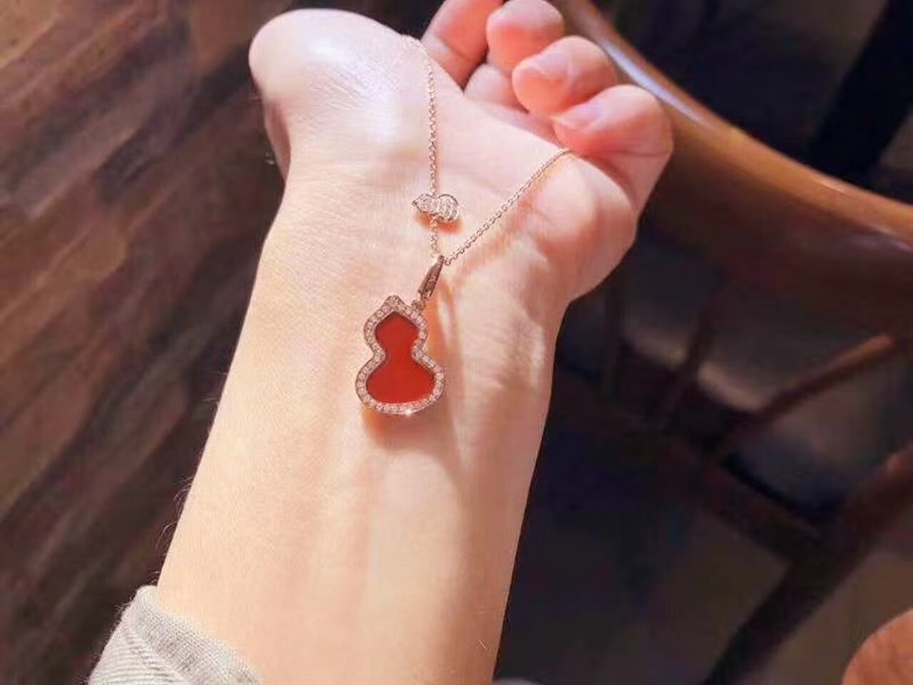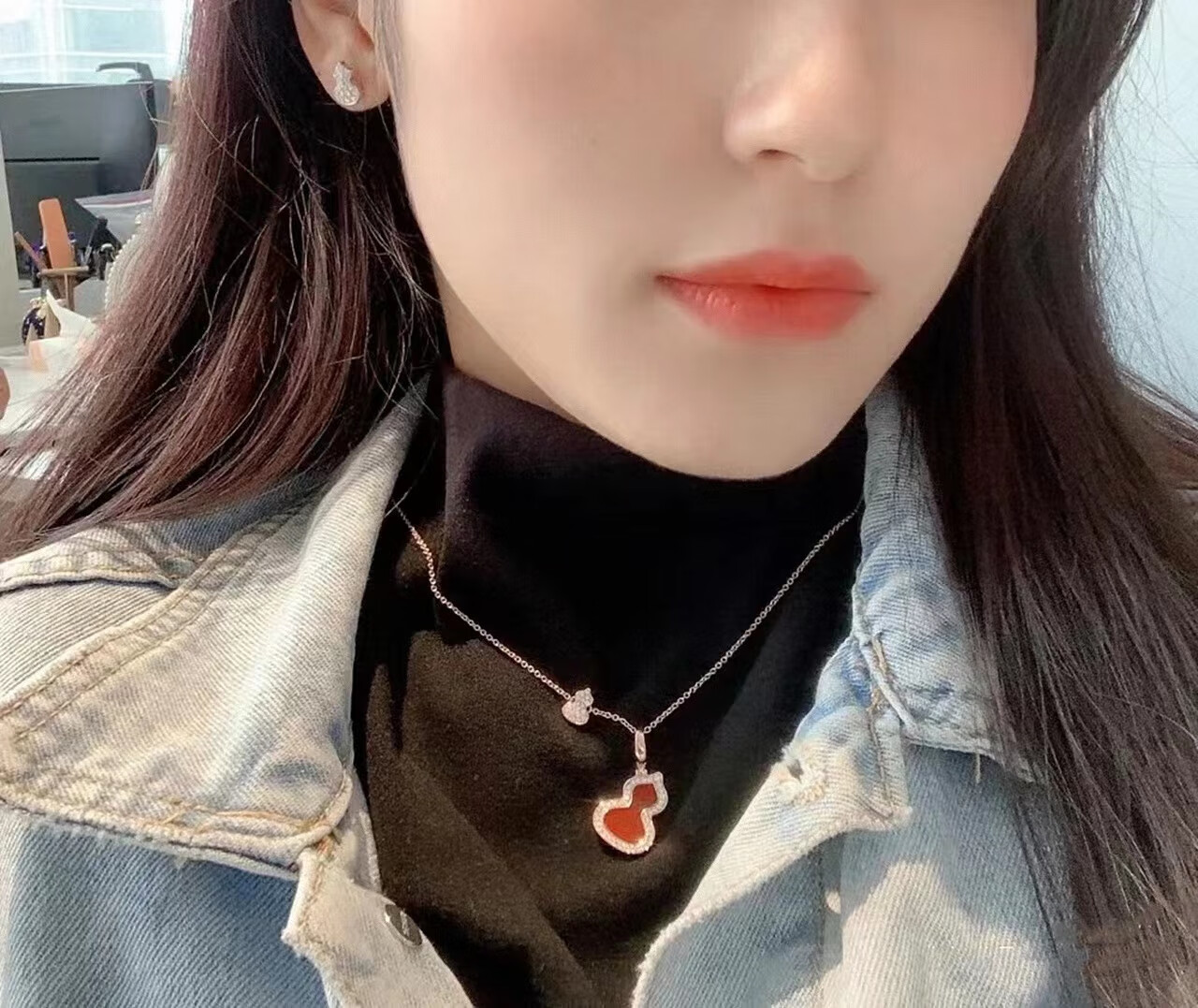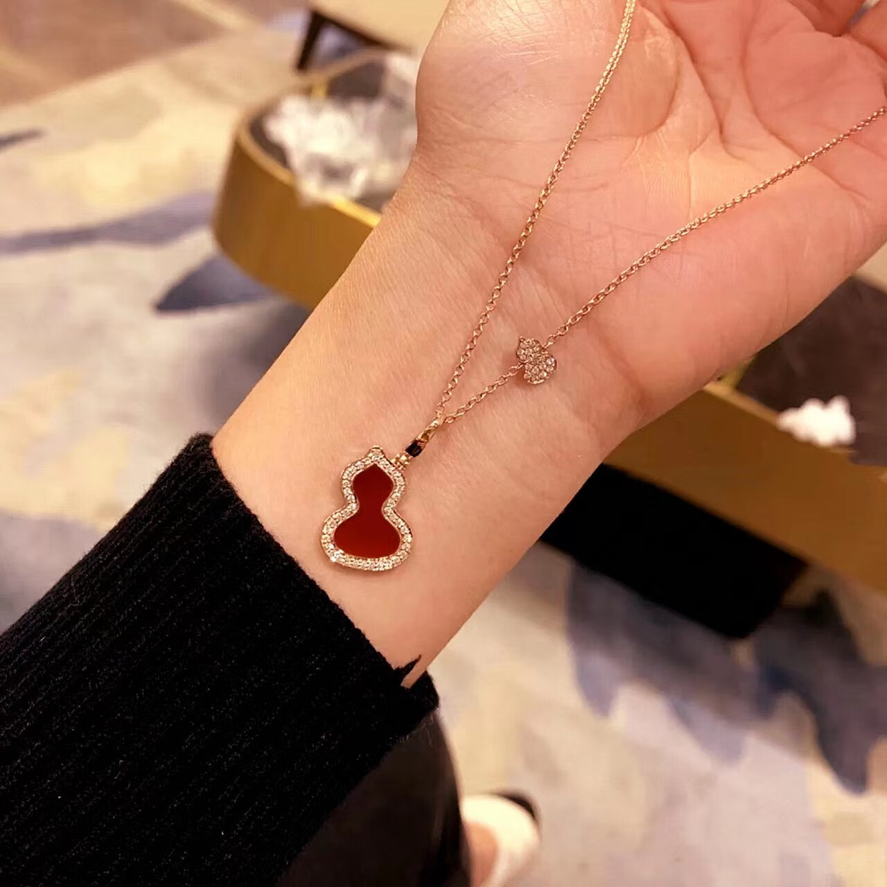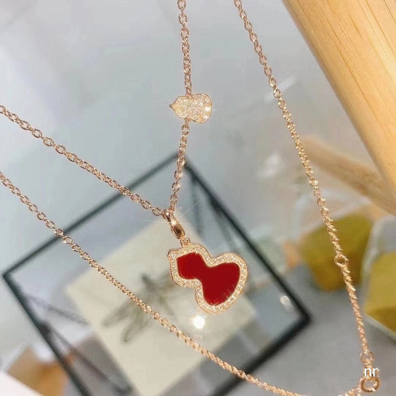 GIOIO Swarovski Zirconium White Deer Shi Yi Same Style Gourd Necklace Light Luxury Niche Clavicle Chain Pendant Same Style Gourd Necklace - Red