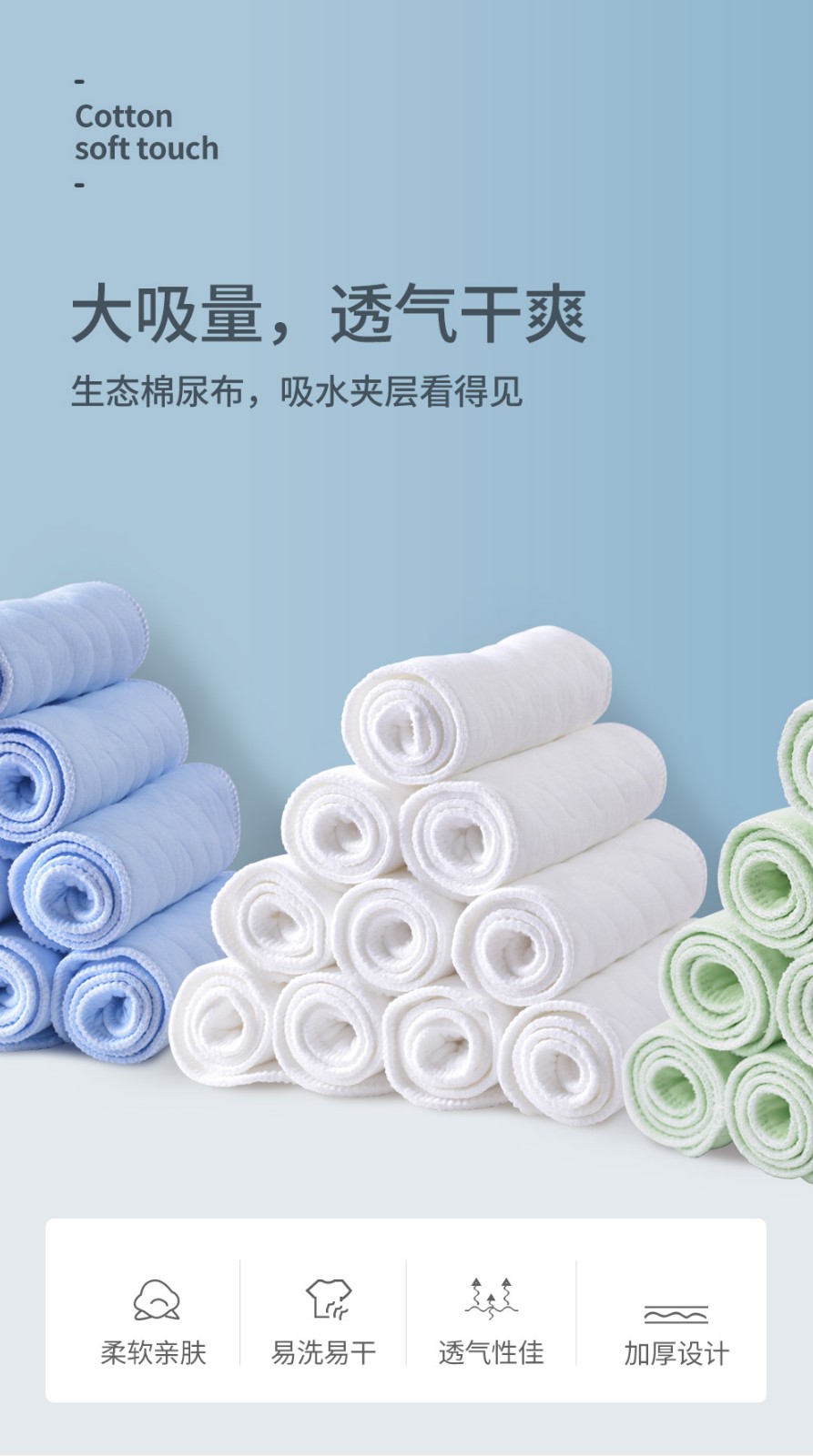 Mamaguo (org.mama) baby diapers washable newborn urine ring diaper pad child diaper meson breathable diaper pocket three layers 10 pieces mixed color summer breathable 46*17cm