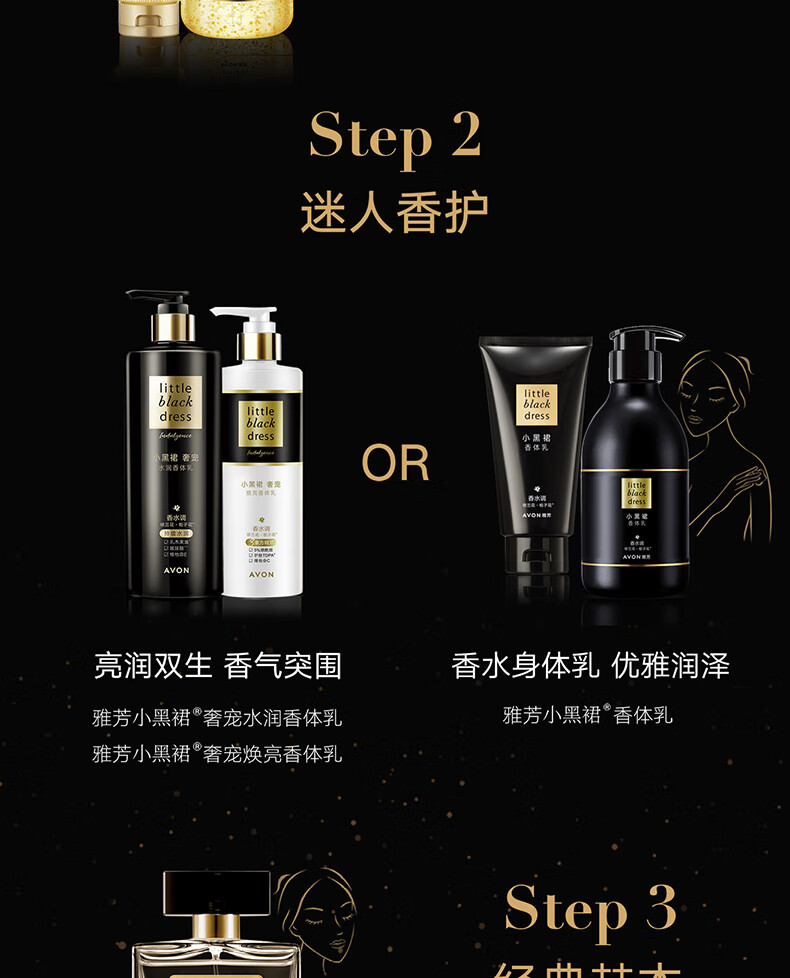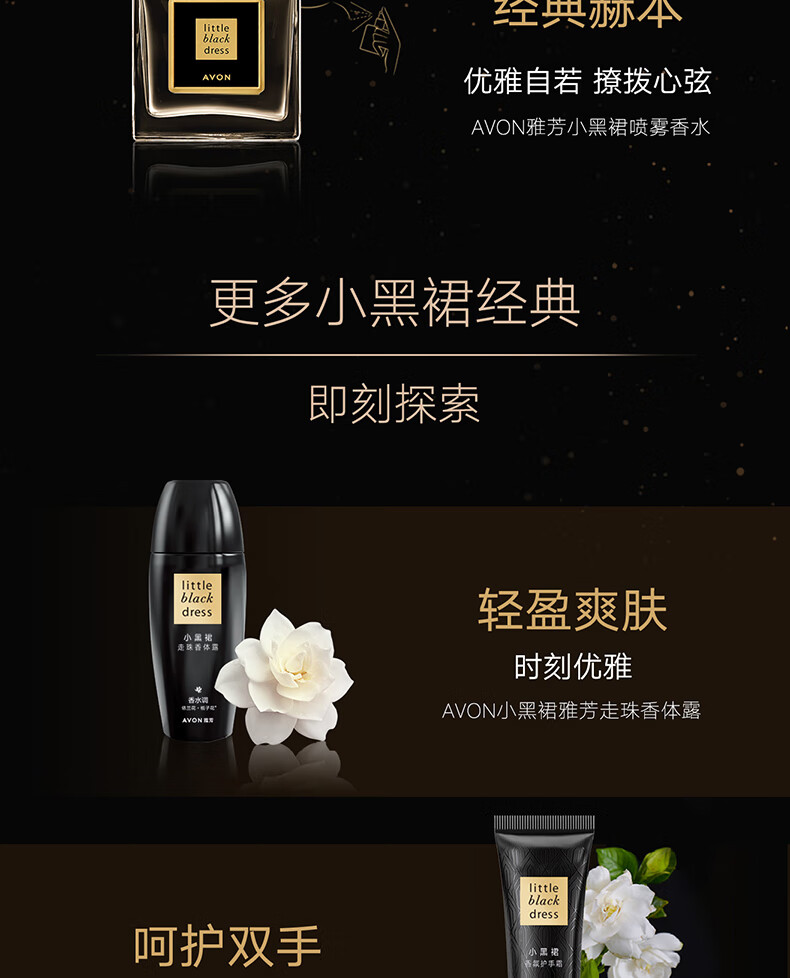 AVON Little Black Dress Full Body Lasting Fragrance Body Lotion Shower Gel Roll-on Perfume Antiperspirant Body Lotion Hand Cream Women's Set 1 Bottle Little Black Dress Body Lotion 200g