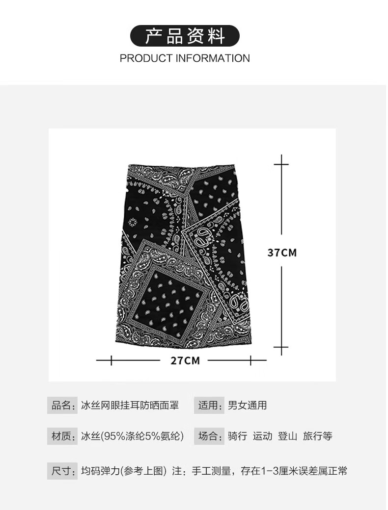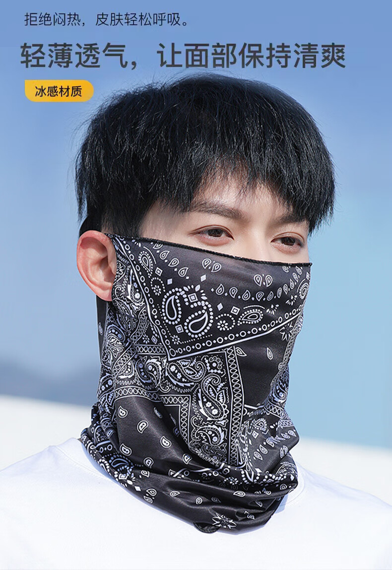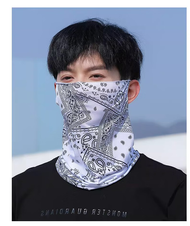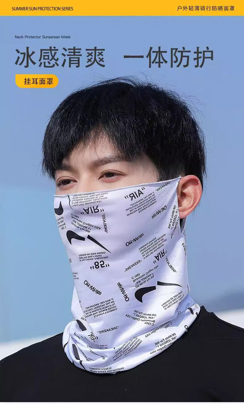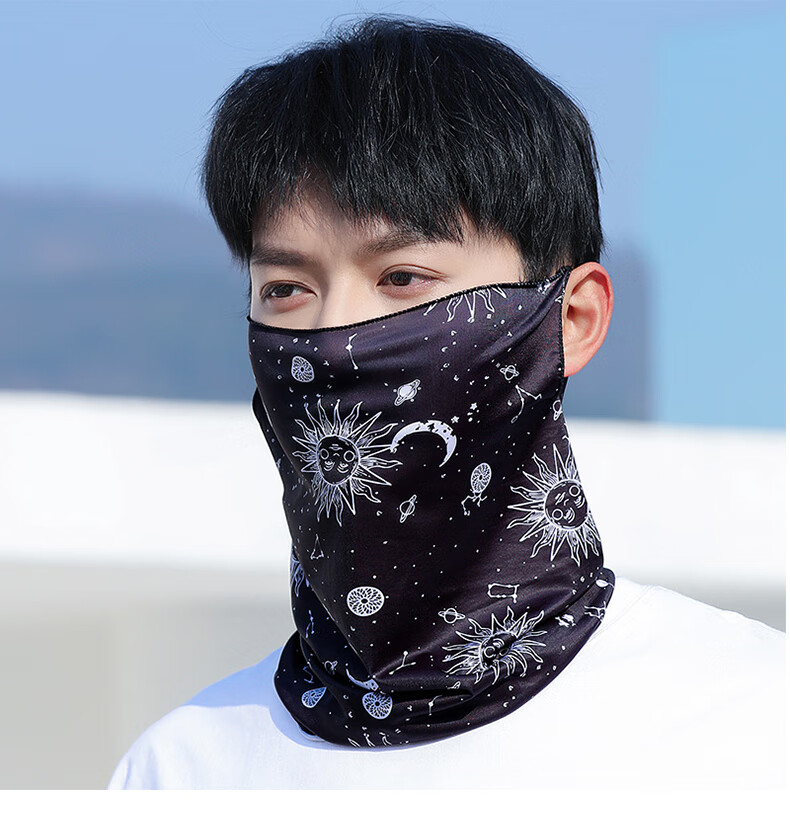 Sun protection mask men's summer ice silk ear-hanging mask cycling breathable thin scarf outdoor sports covering full face veil check mark black + graffiti black ice silk mask