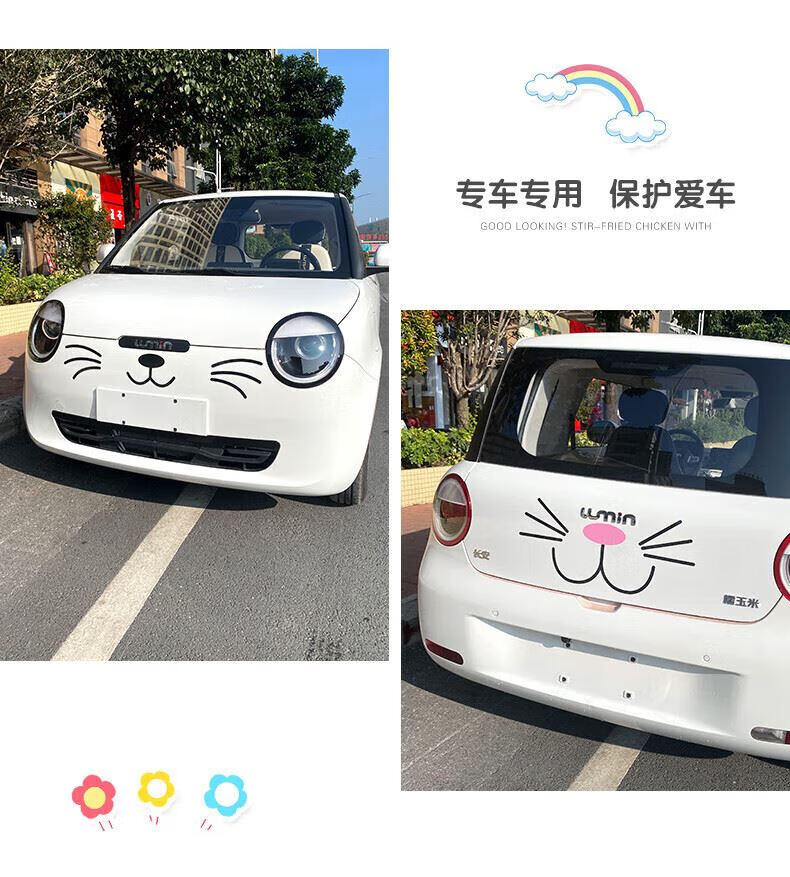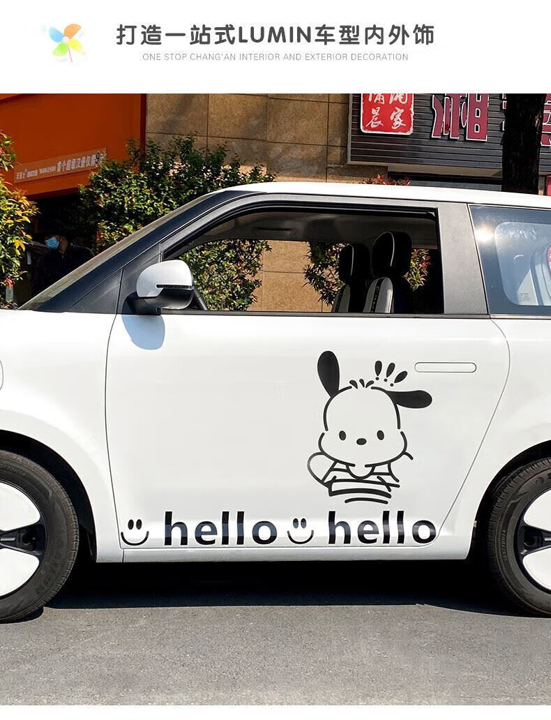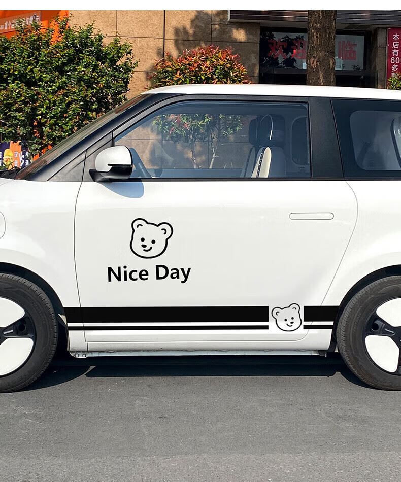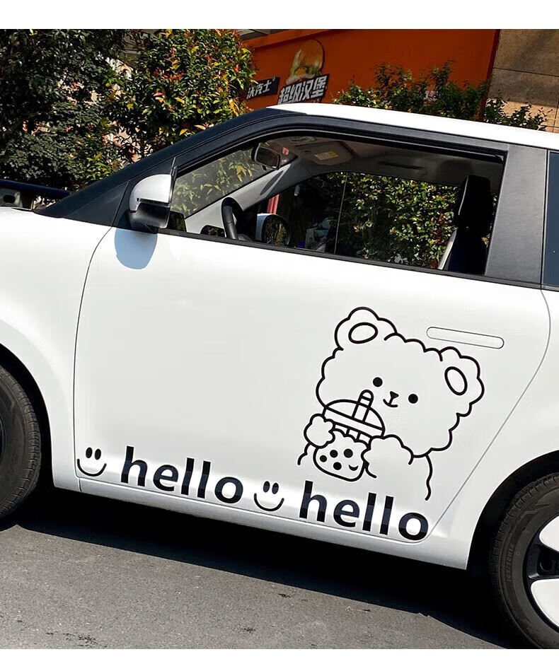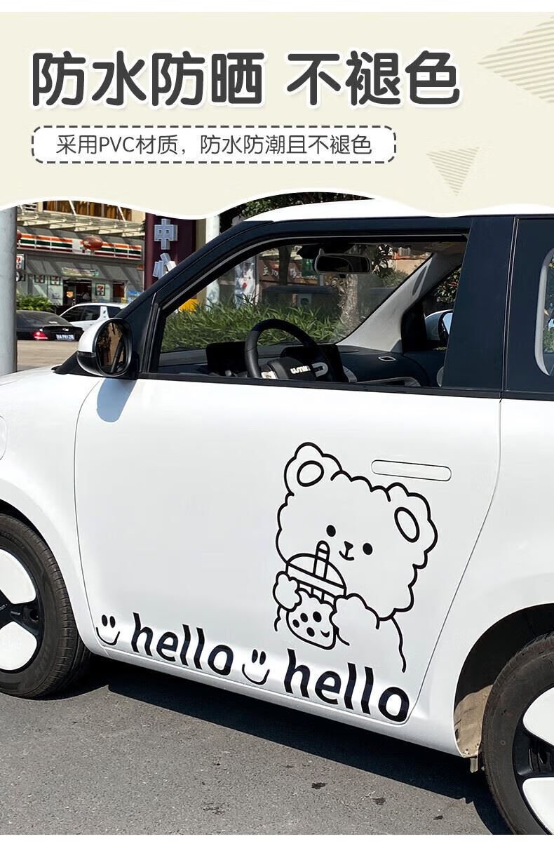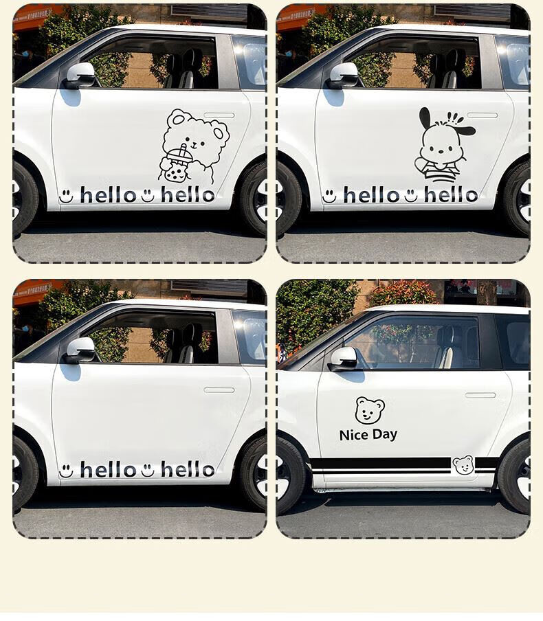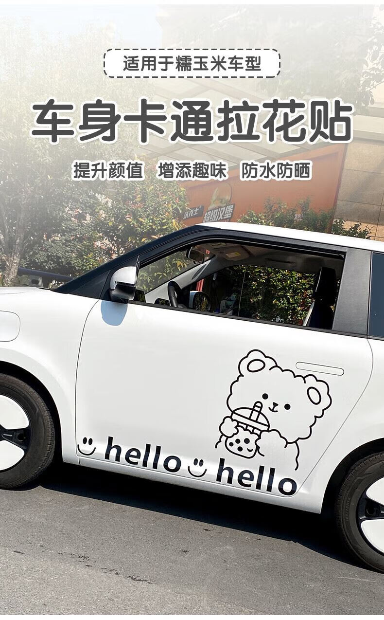 Tucker is suitable for 2023 Changan Lumin waxy corn car body stickers, creative and cute car exterior modification pull flower waistline, milk tea bear car body pull flower stickers - black on both sides