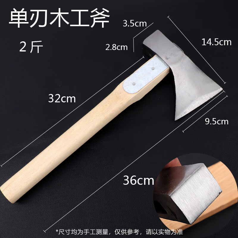 XMSJ special woodworking ax single-edged edge forged all-steel firewood splitting outdoor fine steel handmade household small fire ax 2.8Jin Jin equals 0.5kg fine woodworking ax