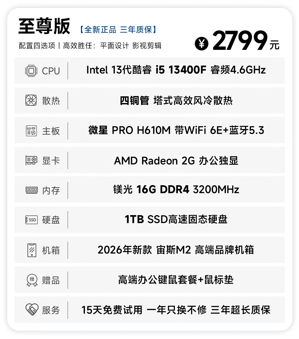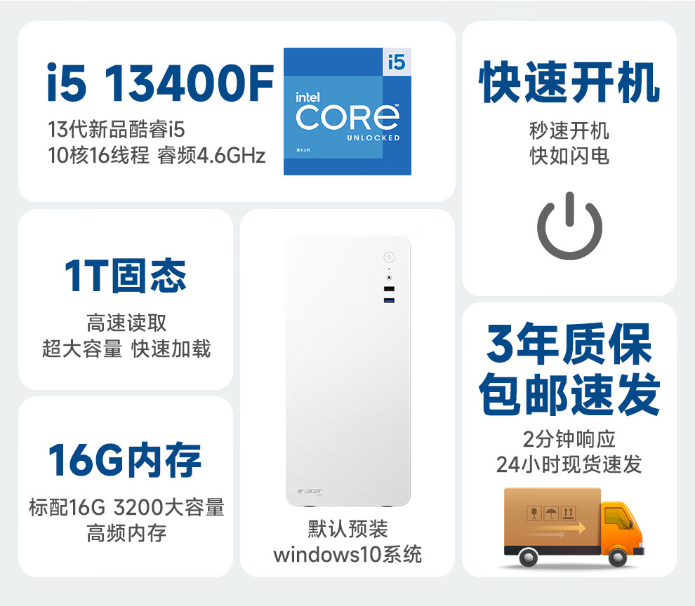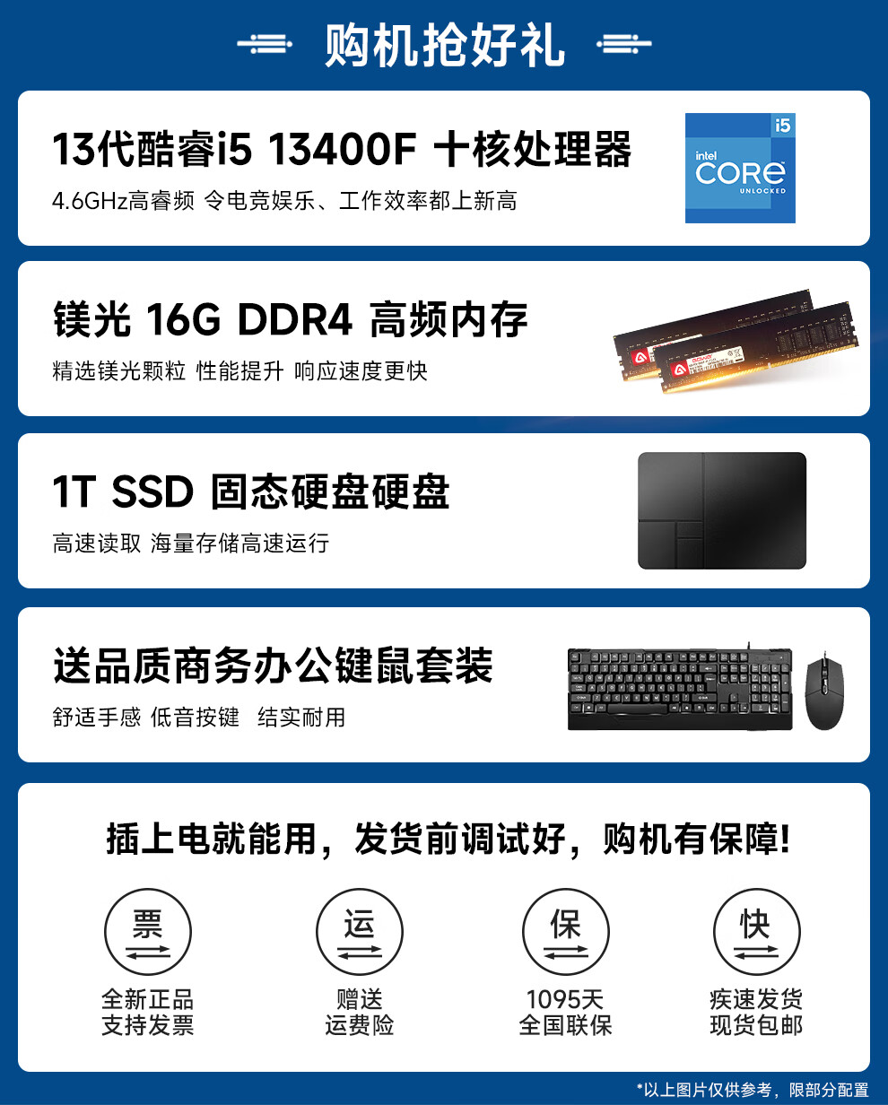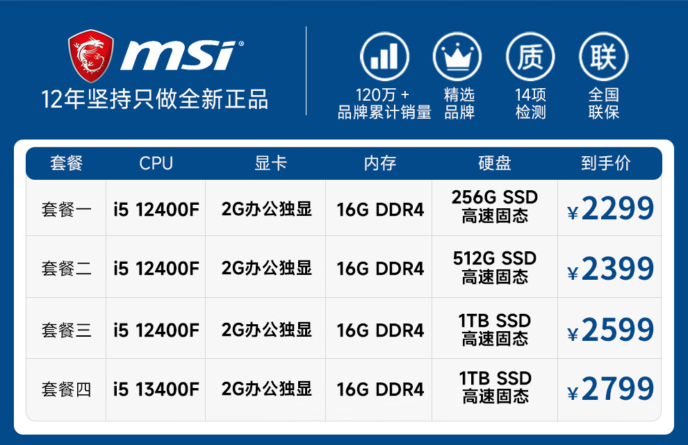 MSI 13th generation Core i5 12400L 13400 office game commercial home mini PC desktop computer host full set of complete machine diy assembly machine i5 13400F丨16+1T丨WiFi Bluetooth