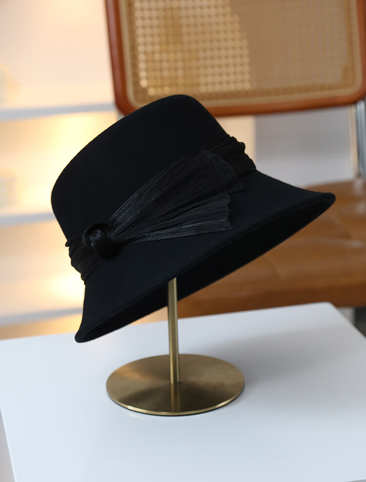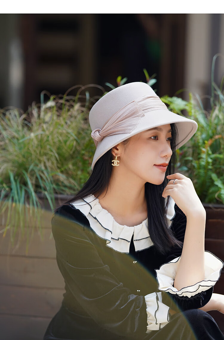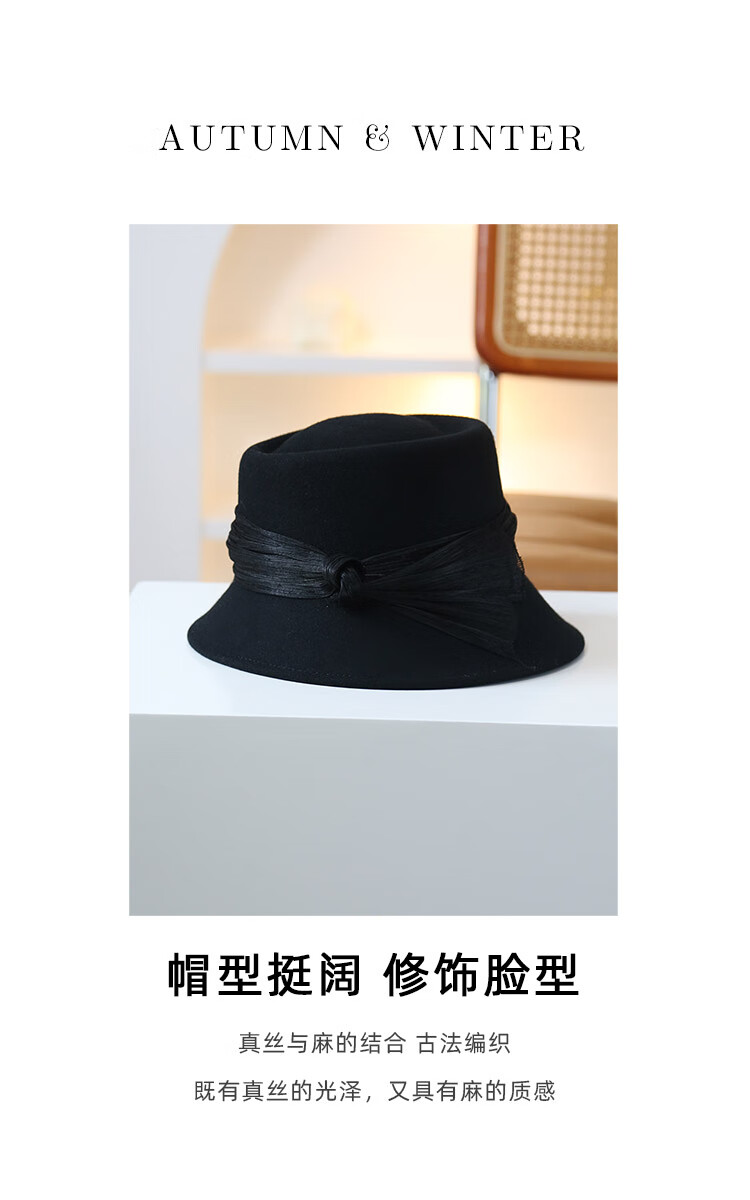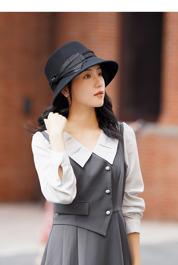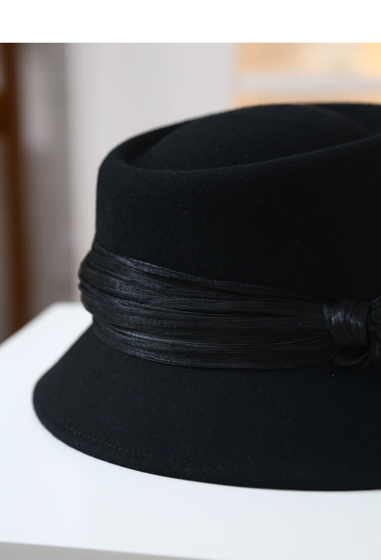 JOLISAC Autumn Print Autumn and Winter Hat Women's 100% Wool Delicate Skin Friendly Hat Women's Travel Photo Elegant French Warm Hat Black Adjustable