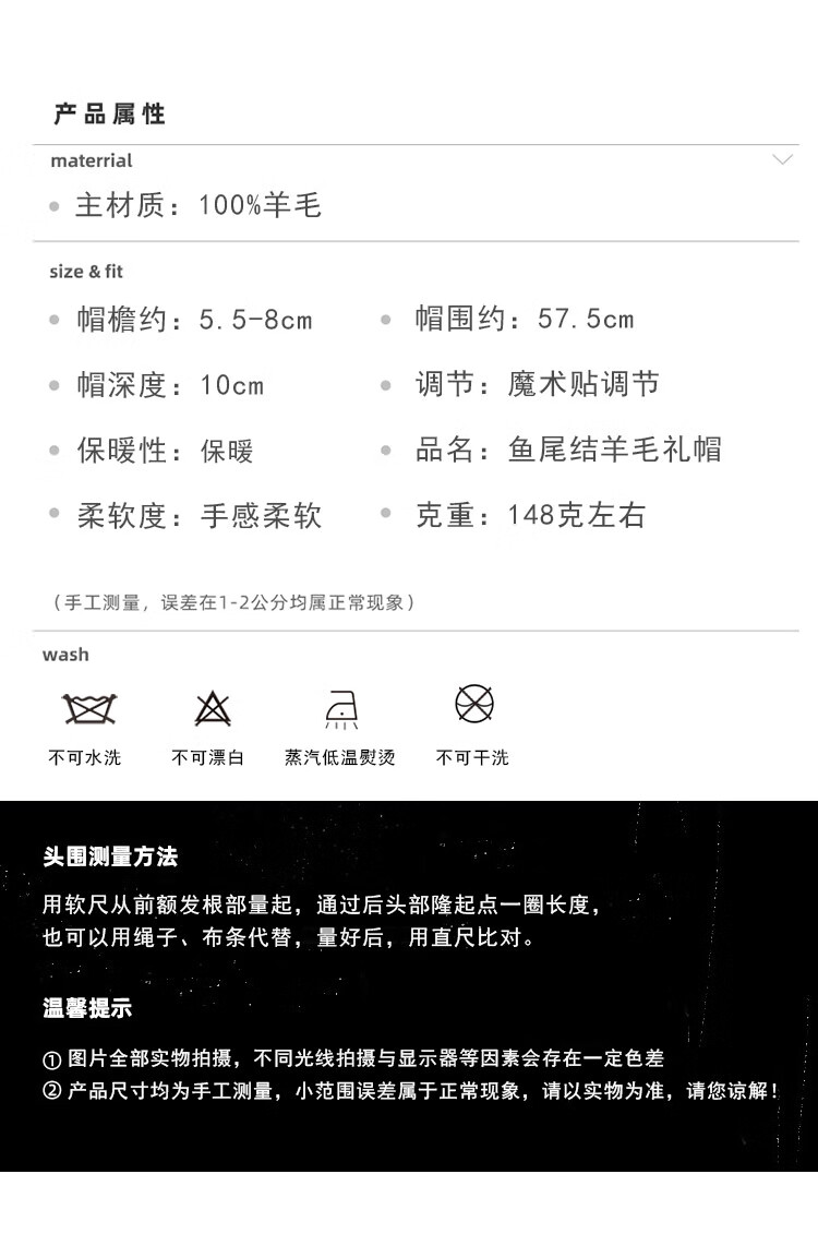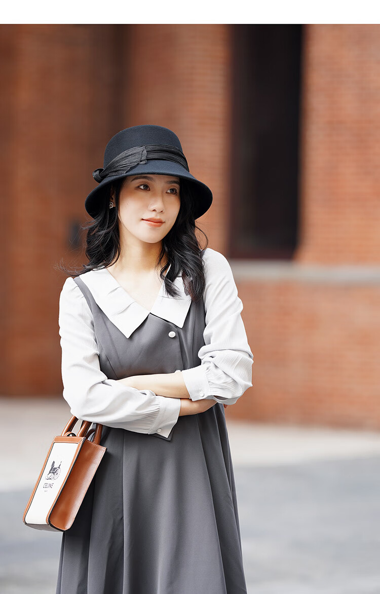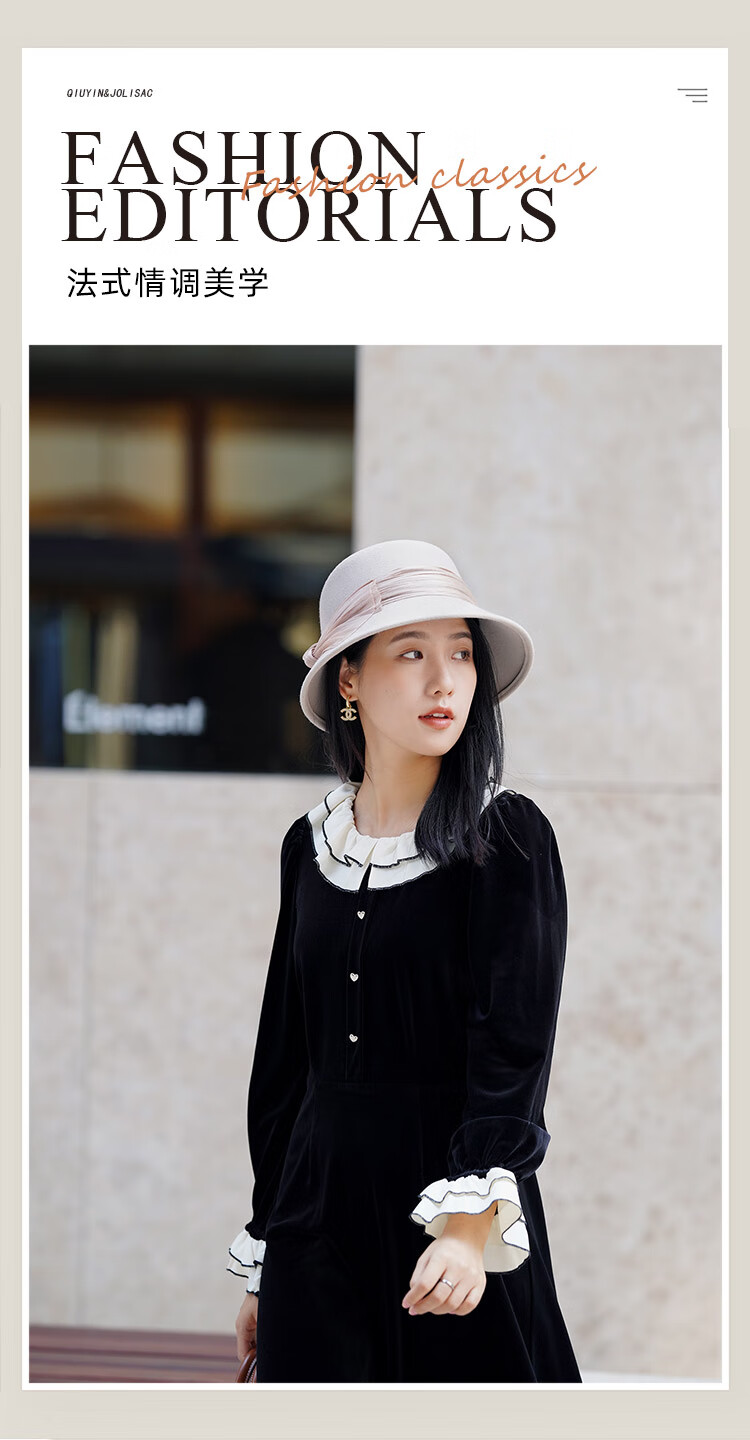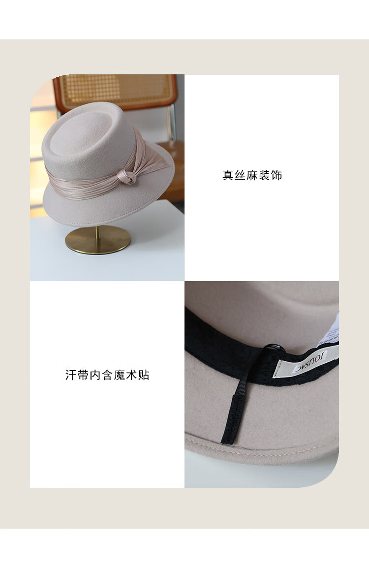 JOLISAC Autumn Print Autumn and Winter Hat Women's 100% Wool Delicate Skin Friendly Hat Women's Travel Photo Elegant French Warm Hat Black Adjustable