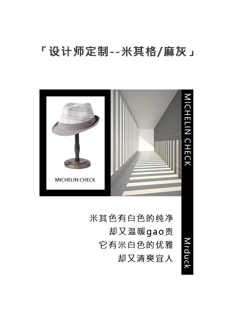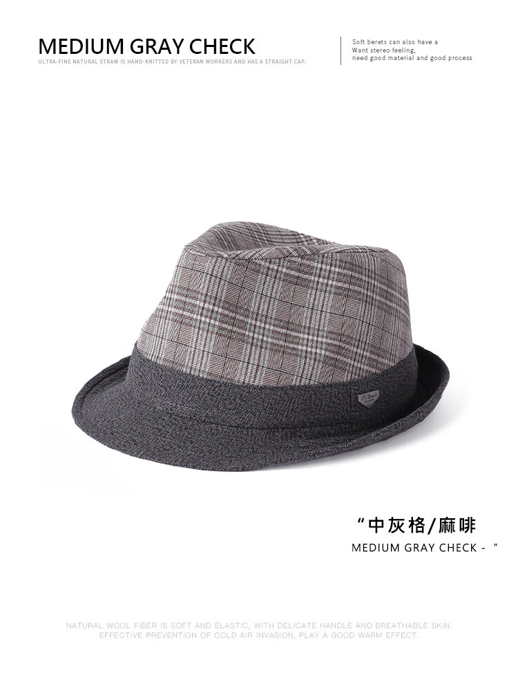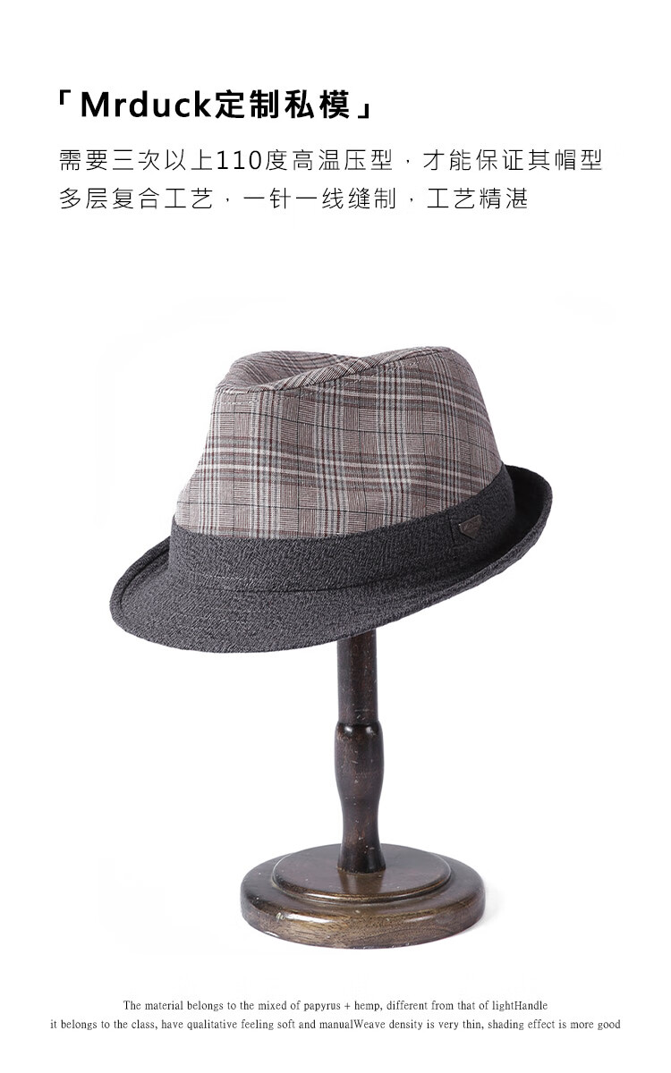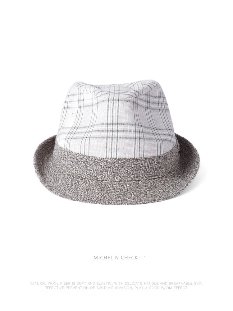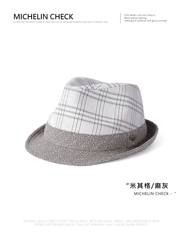 Mr DUCK unique product 30% off clearance linen jazz hat British retro curled men's gentleman's hat fashionable plaid MS46212-Michigan/hemp gray (top hat) M (55-57cm)
