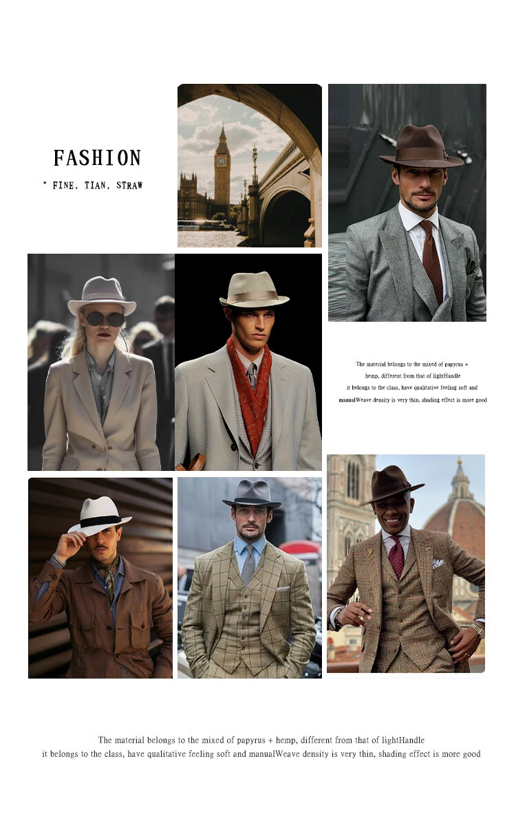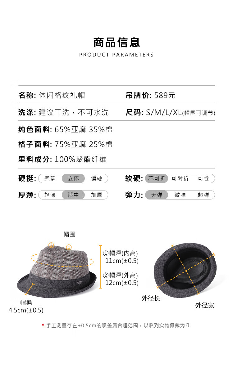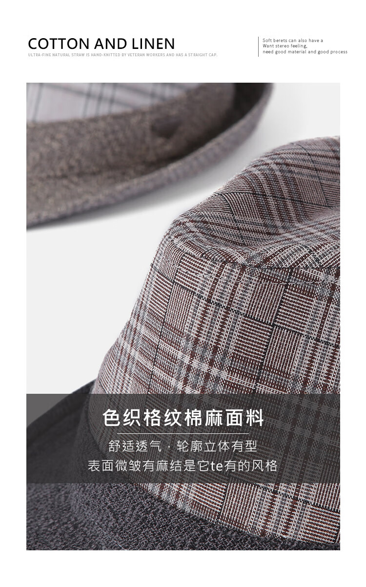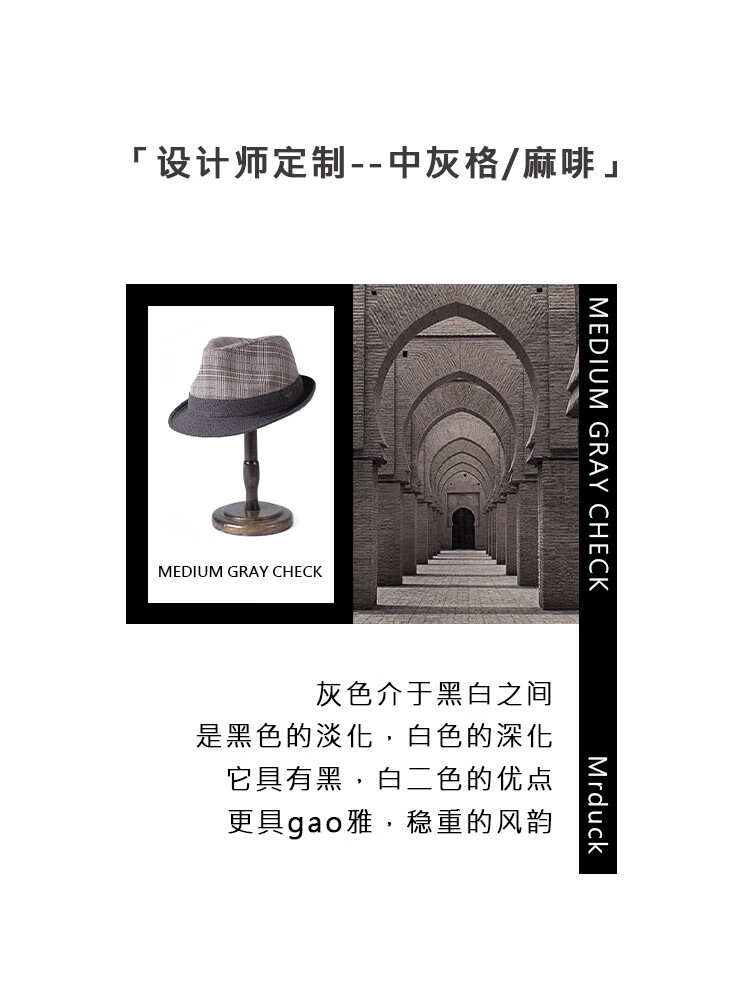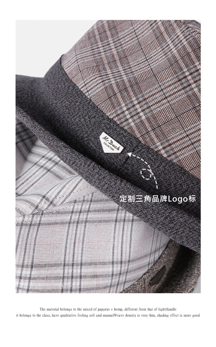 Mr DUCK unique product 30% off clearance linen jazz hat British retro curled men's gentleman's hat fashionable plaid MS46212-Michigan/hemp gray (top hat) M (55-57cm)