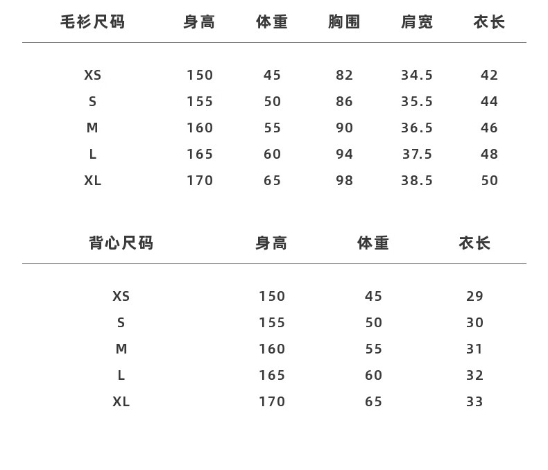 China (cm) 160-165/84-86 165-170 / 88-90 167-172 / 92-96 168-173 / 98-102 170-176 / 106-110