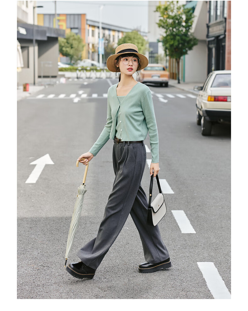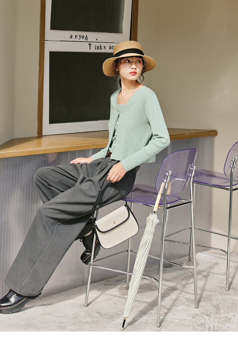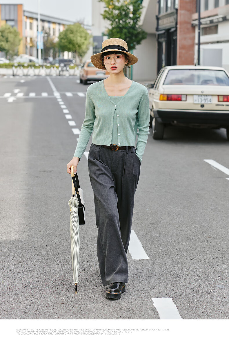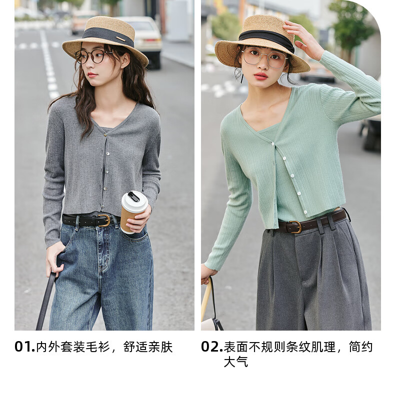 Zihan (ZIHAN) Zihan striped texture camisole knitted cardigan two-piece casual fashion suit for women spring mint green L