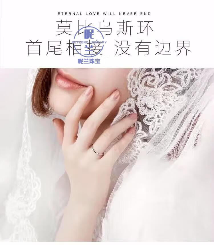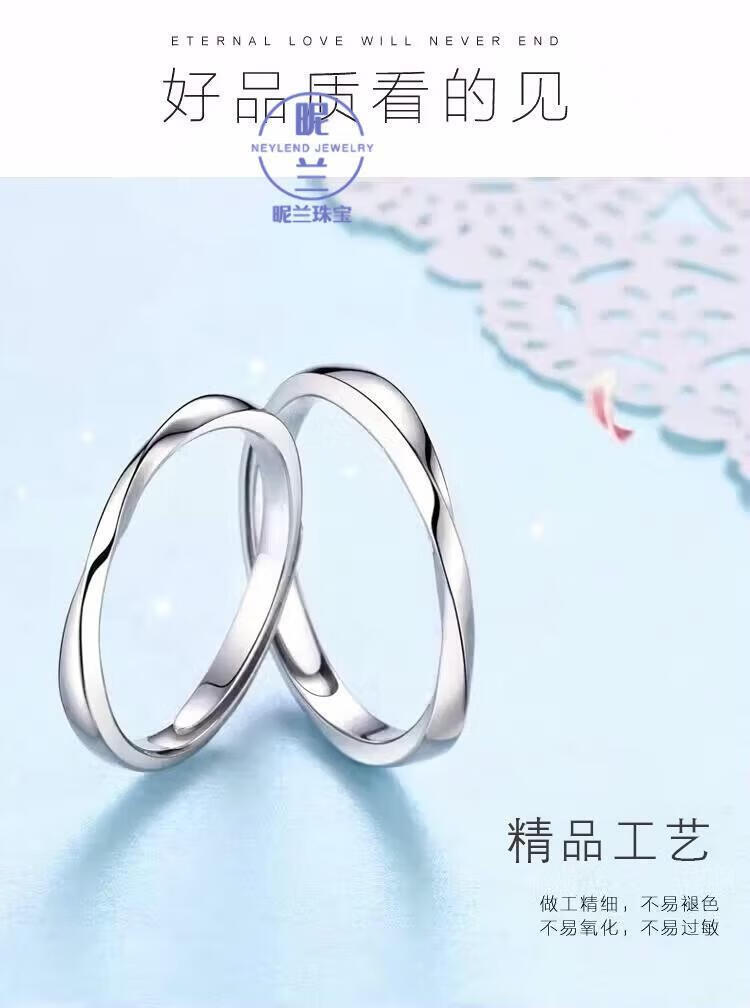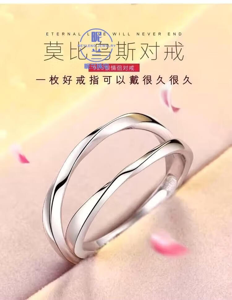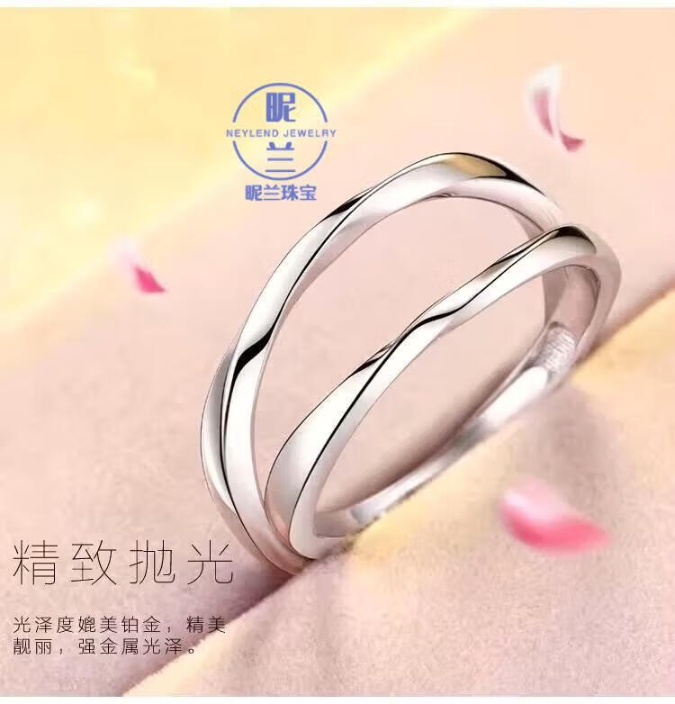 Nilan platinum Möbius ring PT950 couple ring plain ring engraved platinum wedding women's ring opening adjustable