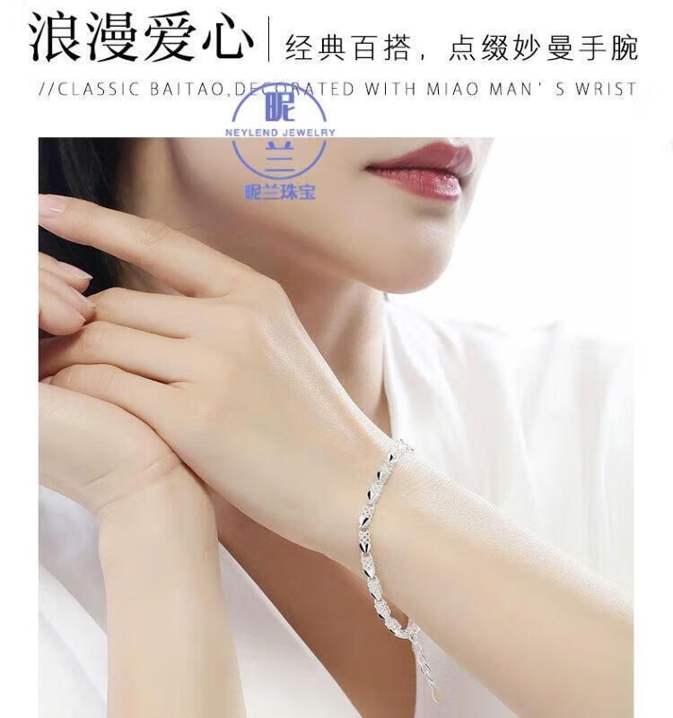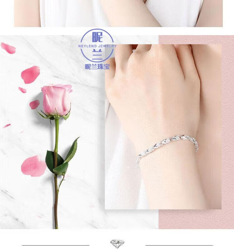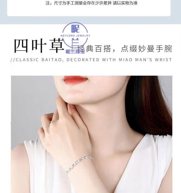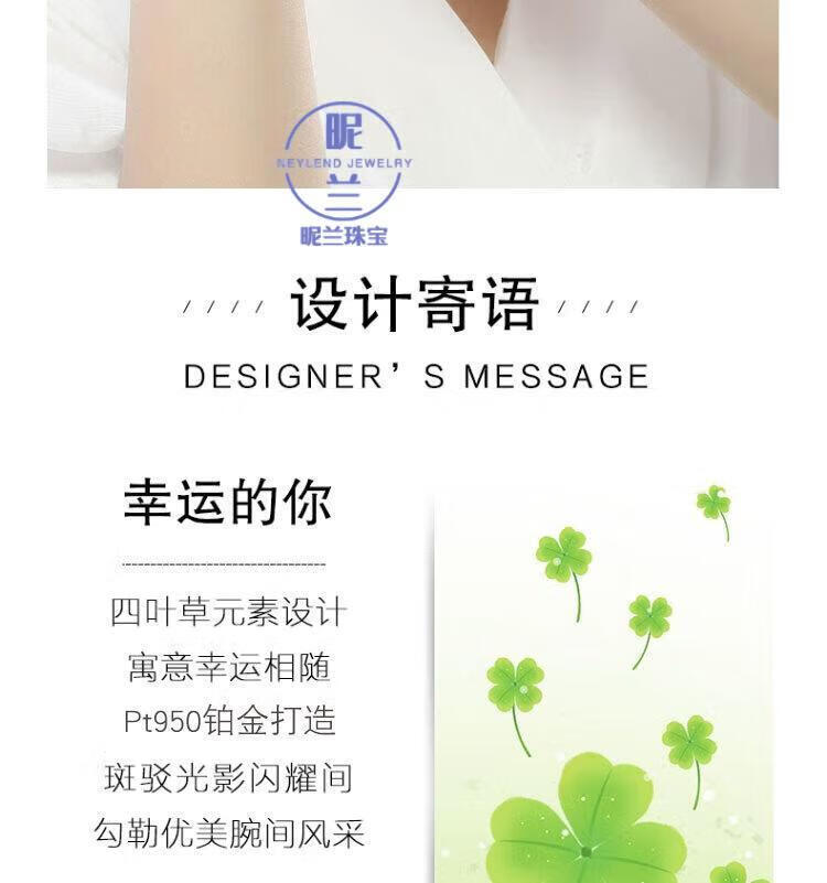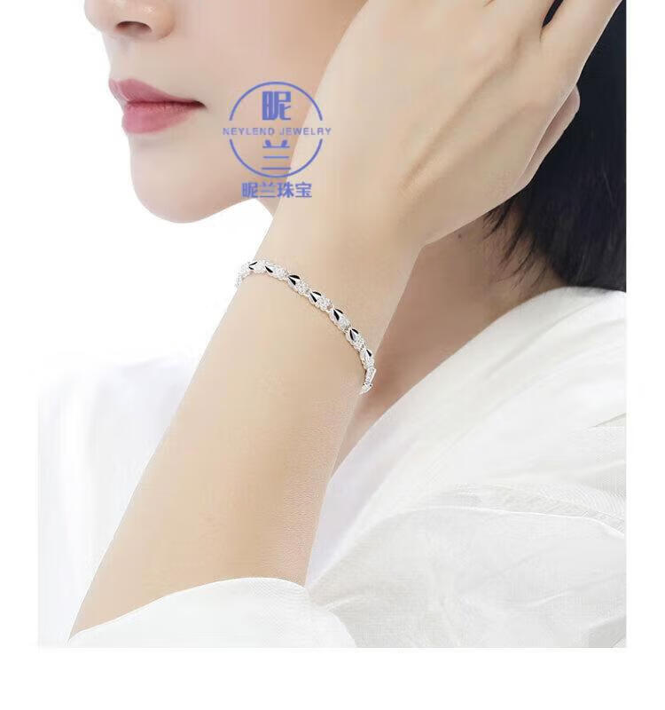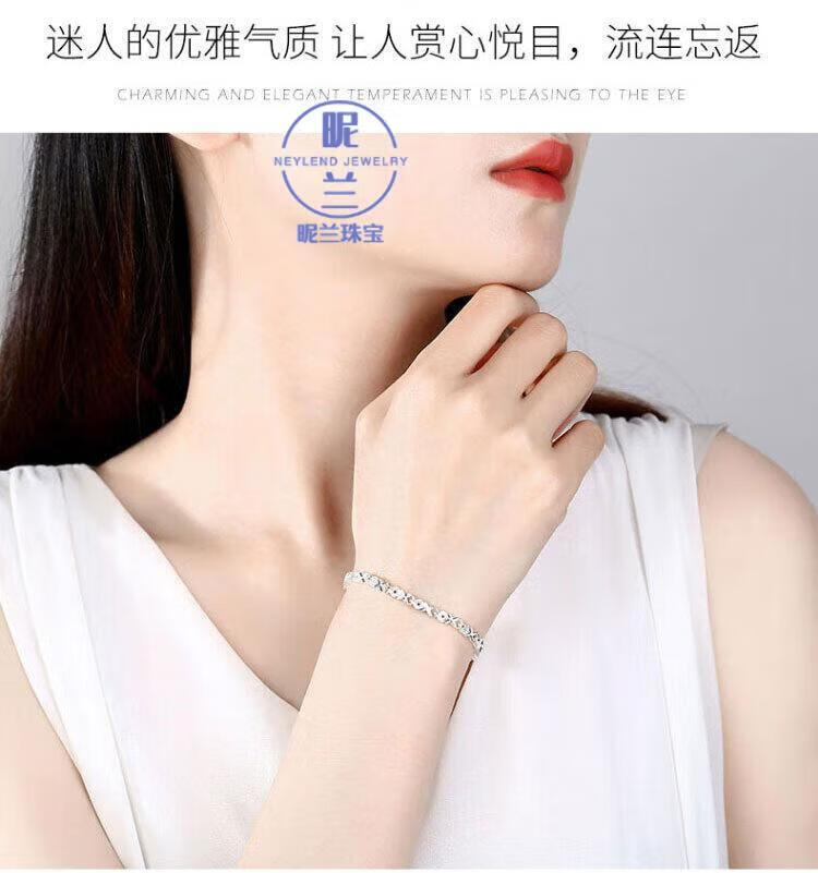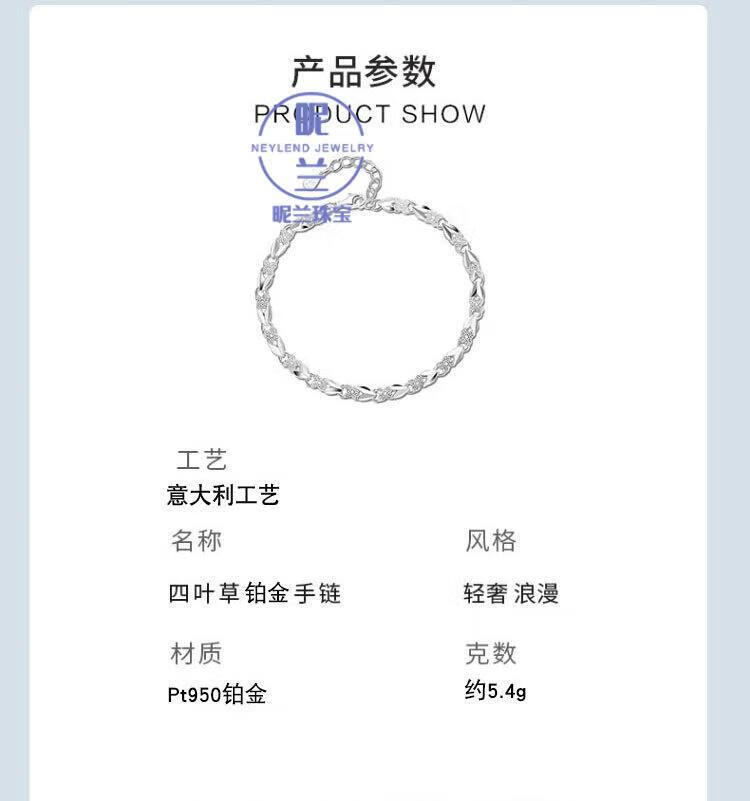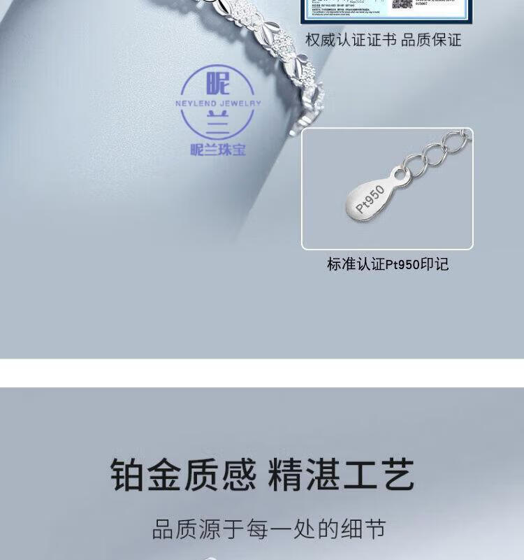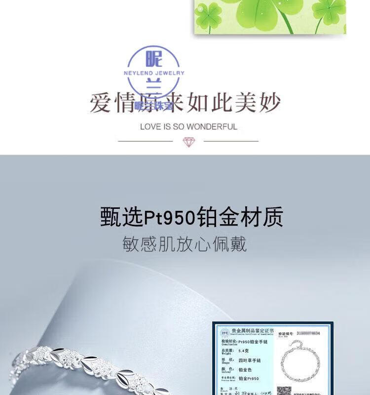 Nilan pt950 platinum bracelet four-leaf clover Pt950 2024 new style bracelet Chinese Valentine's Day PT950 platinum heart-to-heart bracelet + love
