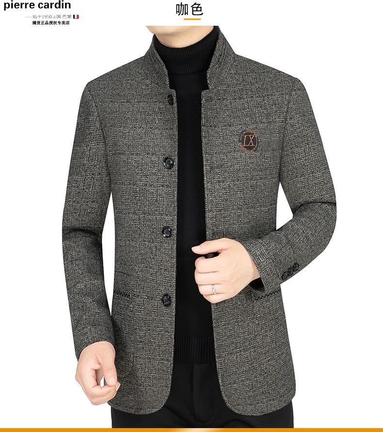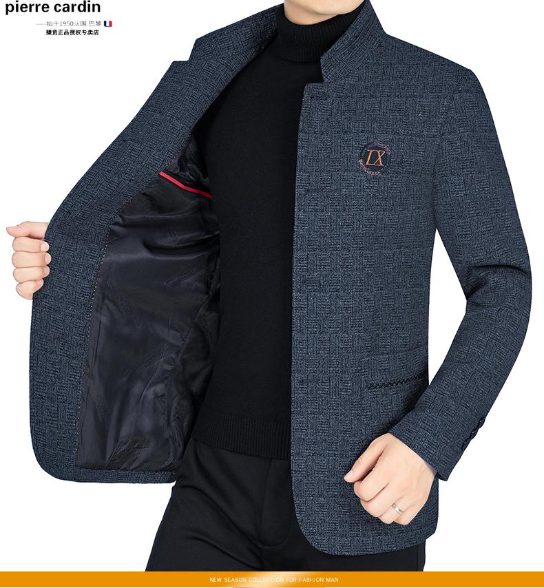 Pierre Cardin (Pierre Cardin) Spring and Autumn Woolen Jacket Men's New Men's Business Casual Stand Collar Middle-aged Men's Jacket Dad's Wear Navy Blue 185/XXL (155-165Jin Jin equals 0.5 kg)