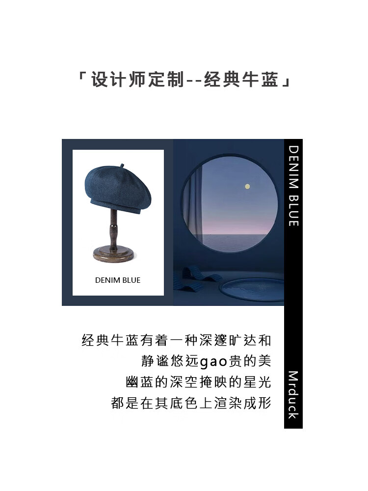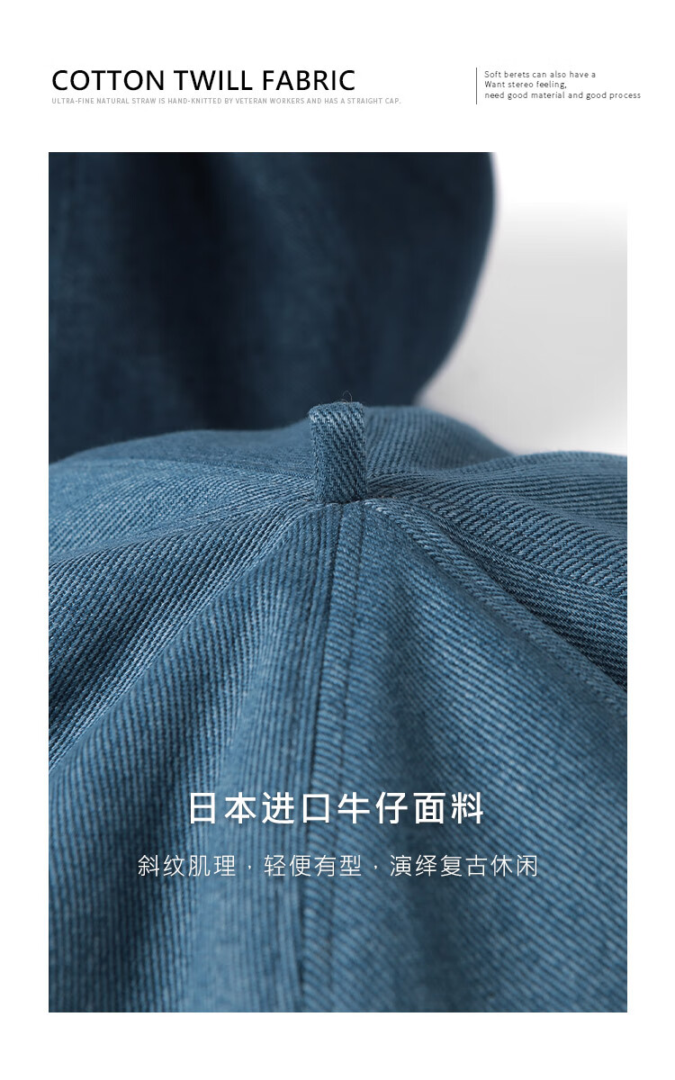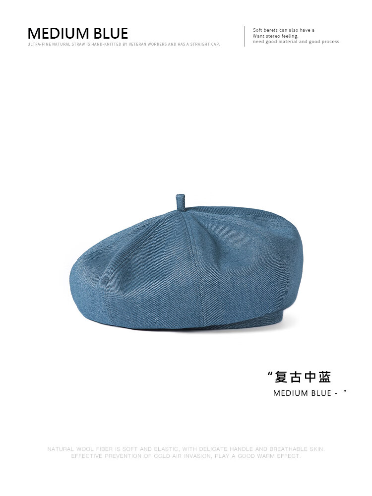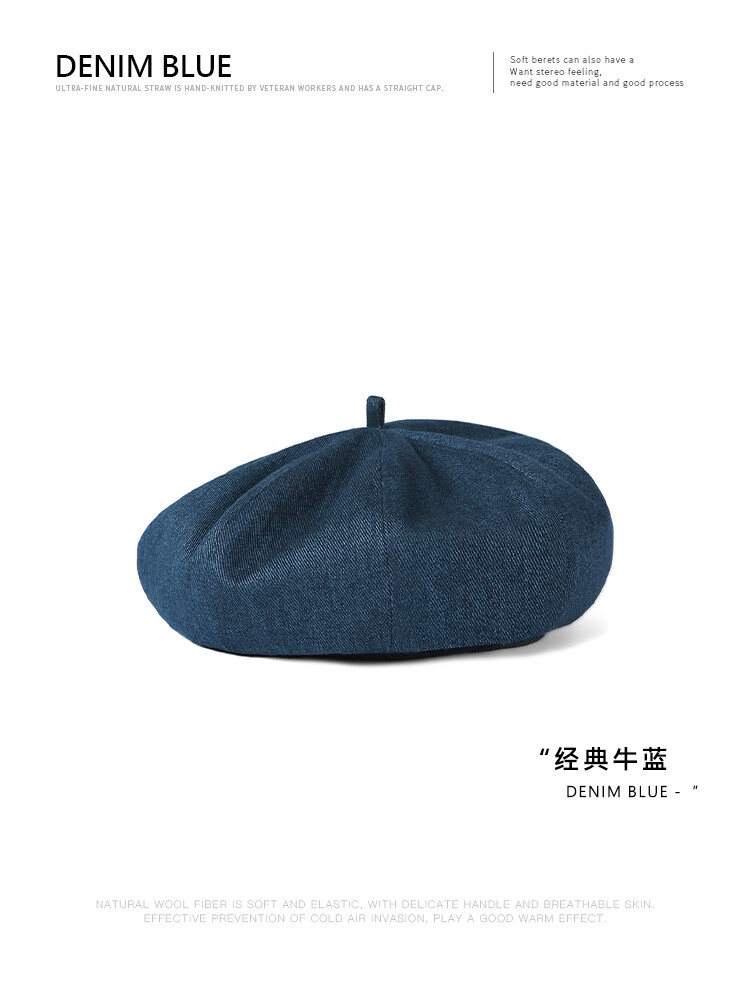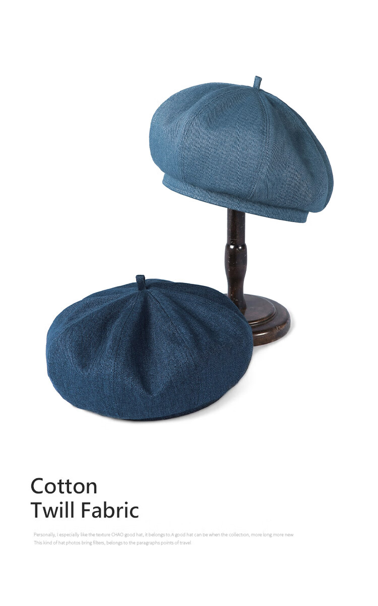 Mr DUCK Boina literaria retro japonesa teñida a mano 100% algodón para hombres y mujeres sombrero de mezclilla texturizado lavado sombrero de pintor artístico MS46718-azul vaca clásico (boina) M (adecuado para circunferencia de cabeza de 55-56 cm)