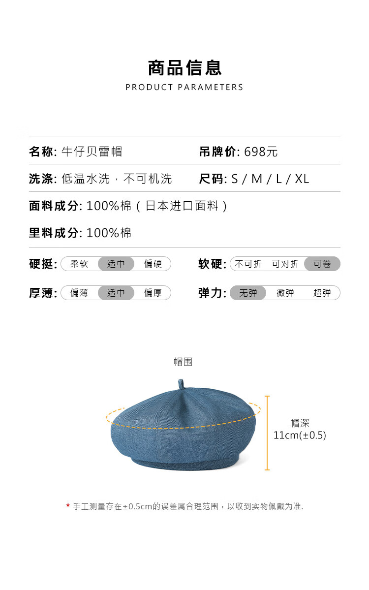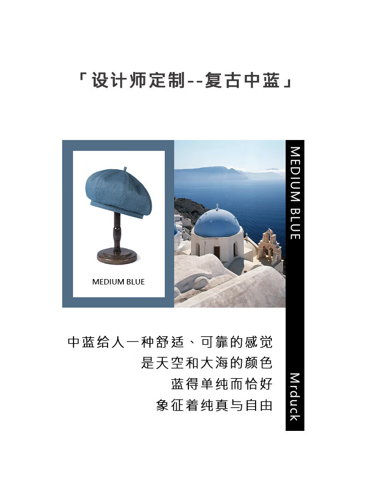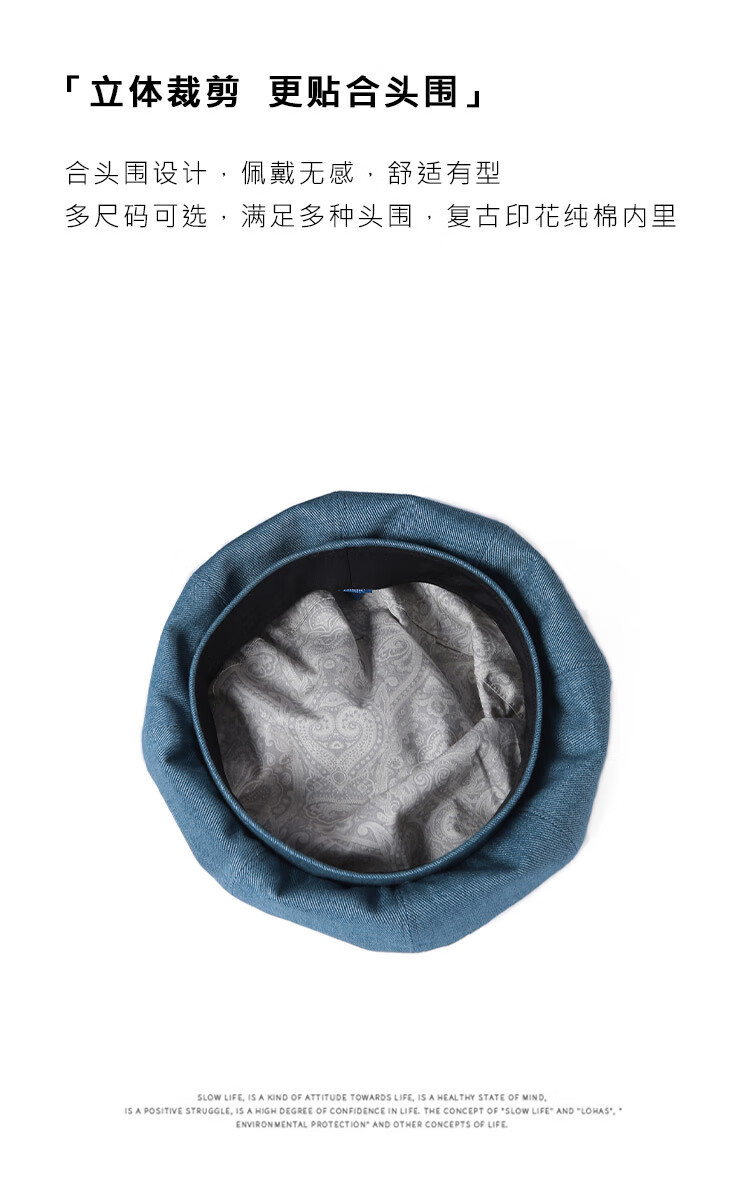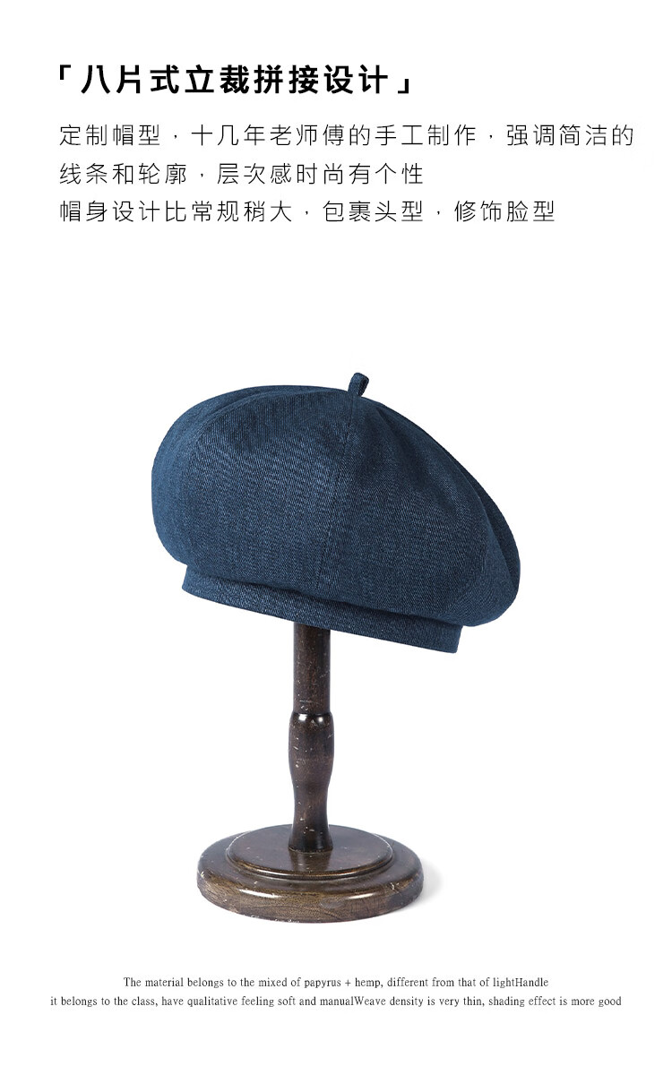 Mr DUCK Boina literaria retro japonesa teñida a mano 100% algodón para hombres y mujeres sombrero de mezclilla texturizado lavado sombrero de pintor artístico MS46718-azul vaca clásico (boina) M (adecuado para circunferencia de cabeza de 55-56 cm)