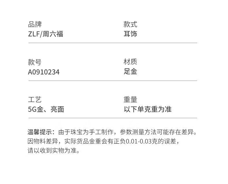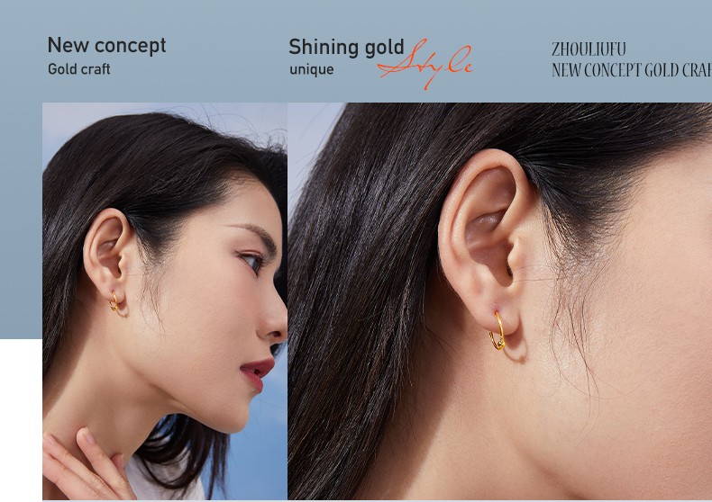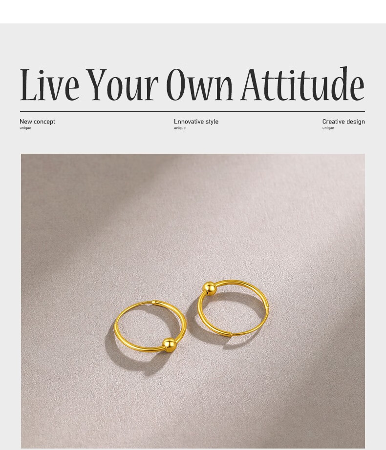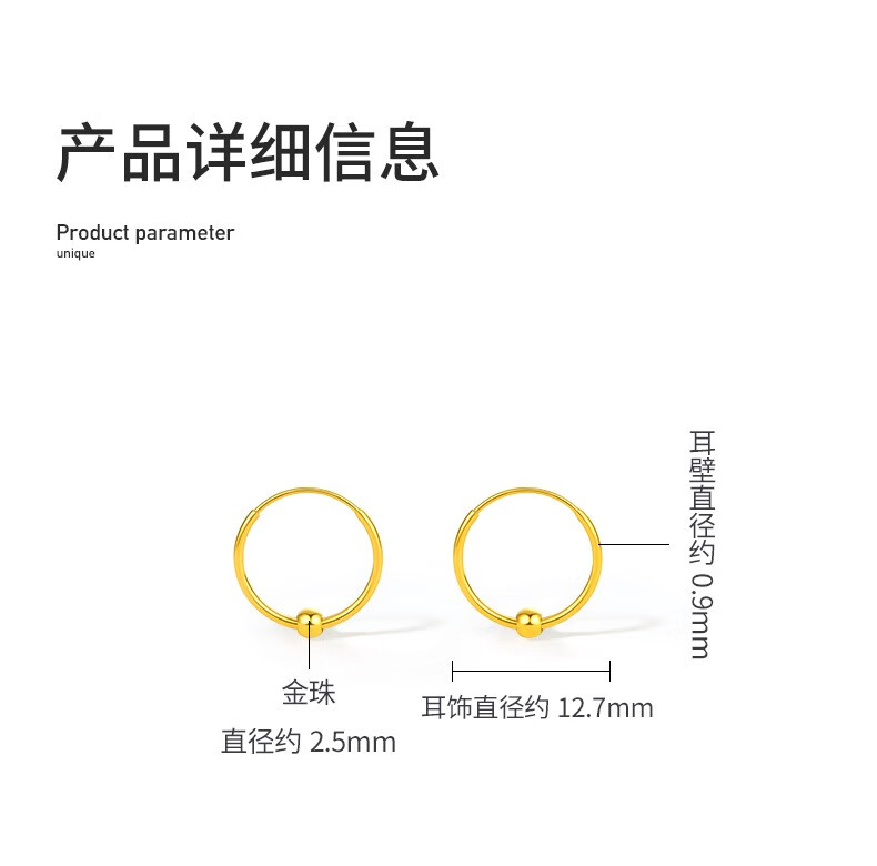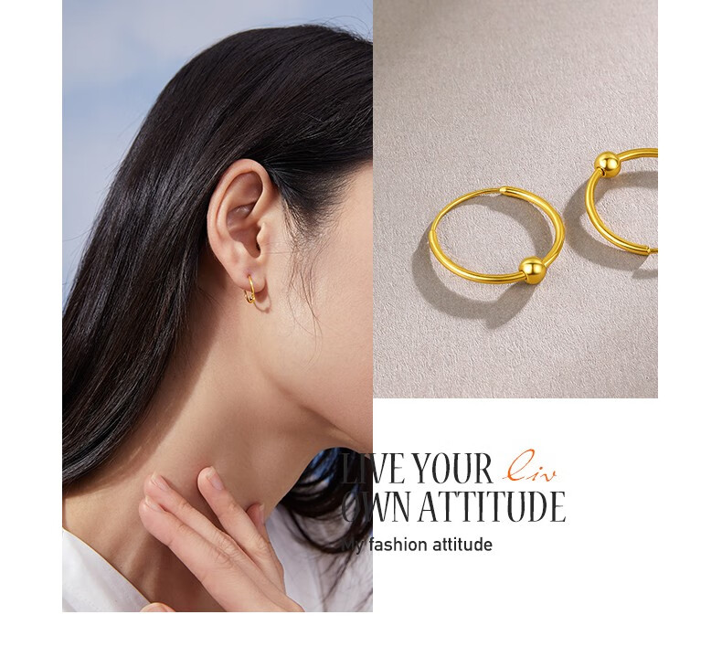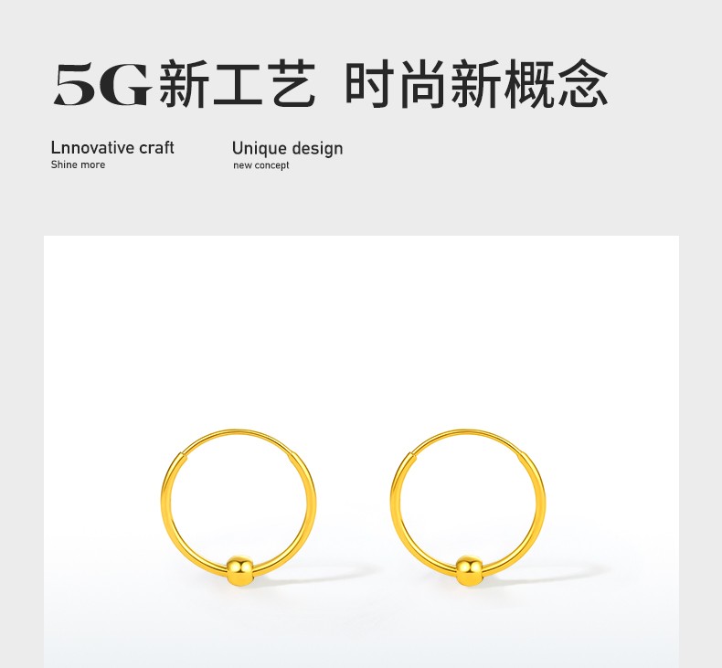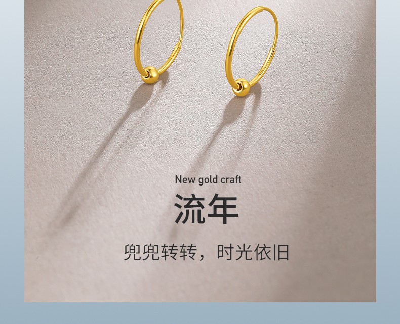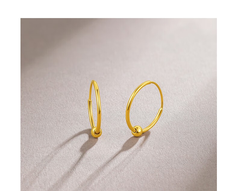 Saturday Fortune (ZLF) gold earrings for women 5G gold shiny round bead hoop earrings earrings fleeting price 0.64g