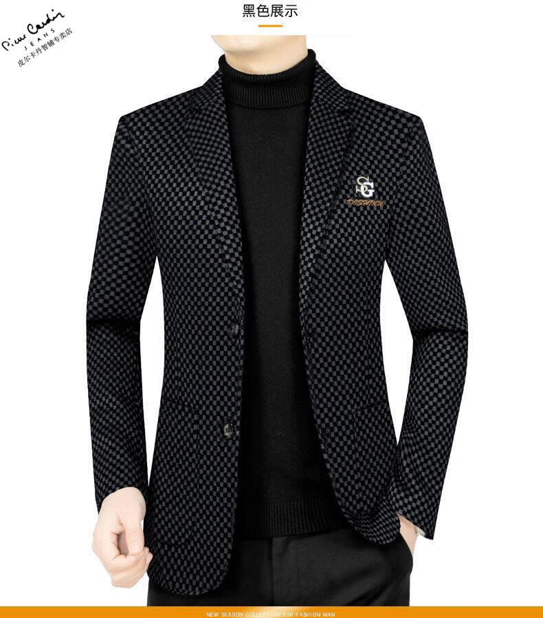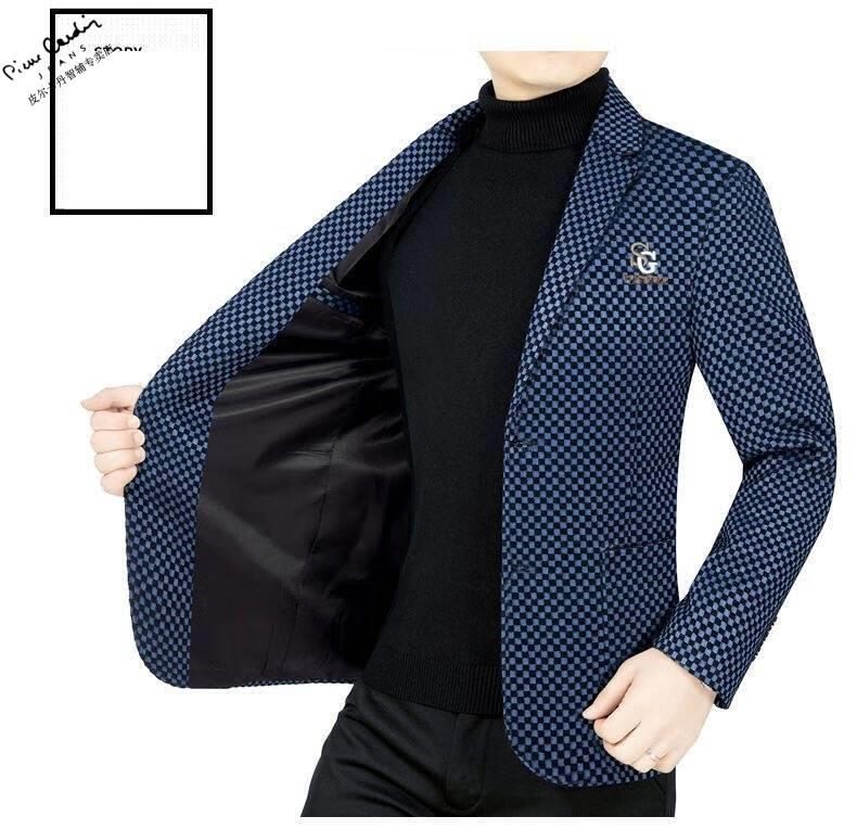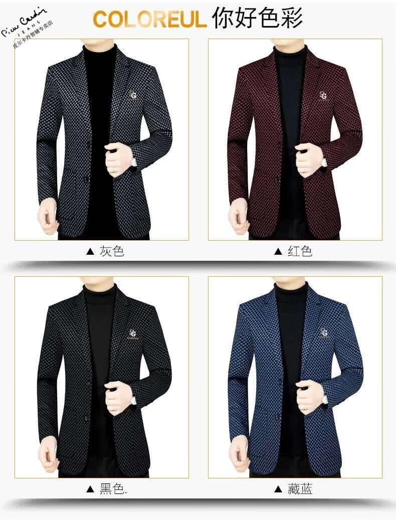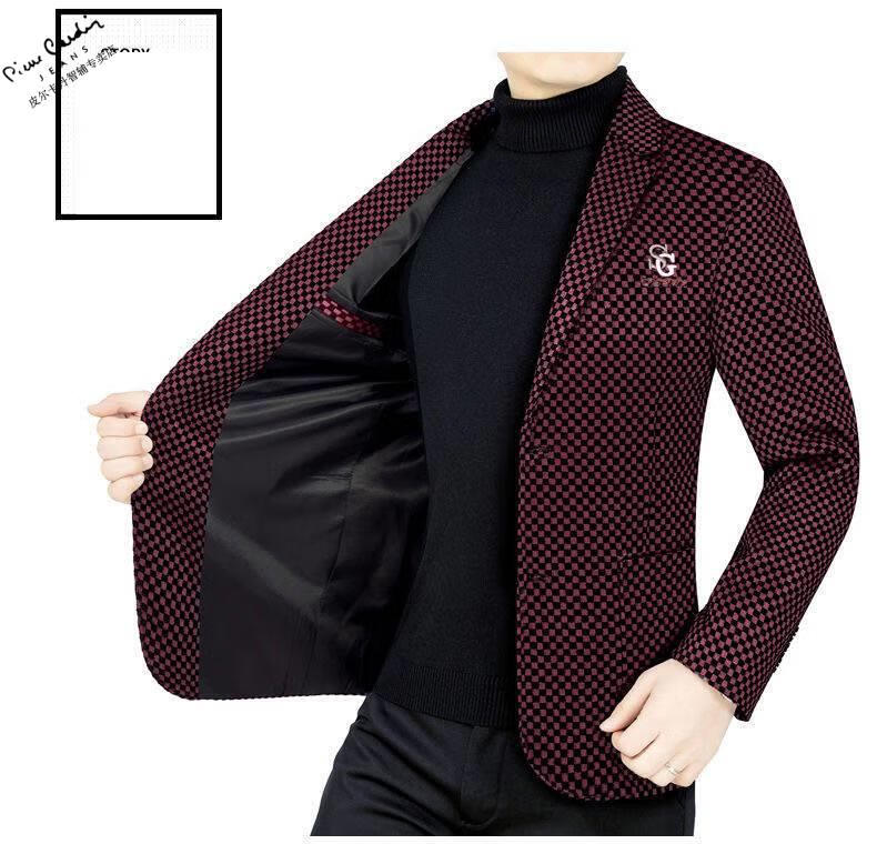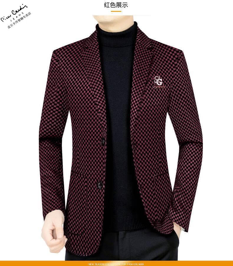 Pierre Cardin spring and autumn new style middle-aged men's casual suits dad suits single-piece houndstooth top XZ1770 red 180 135-150Jin Jin equals 0.5 kg