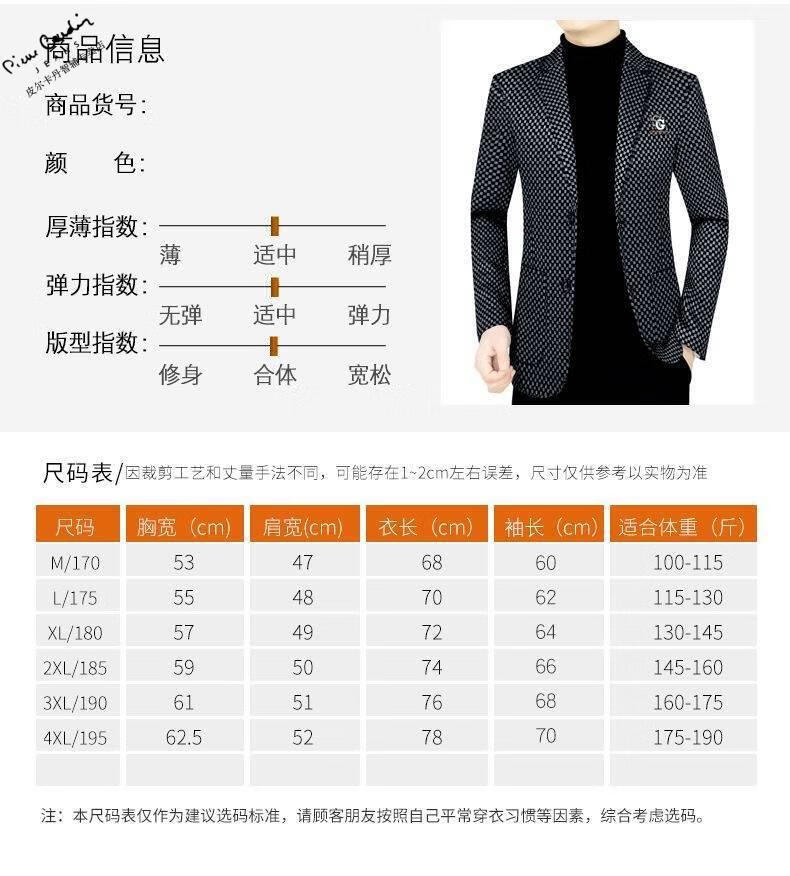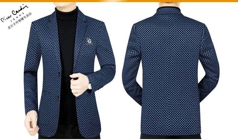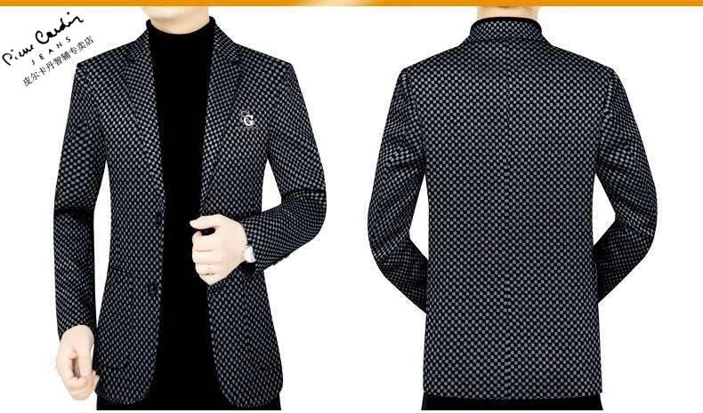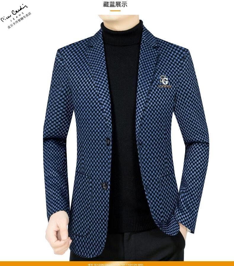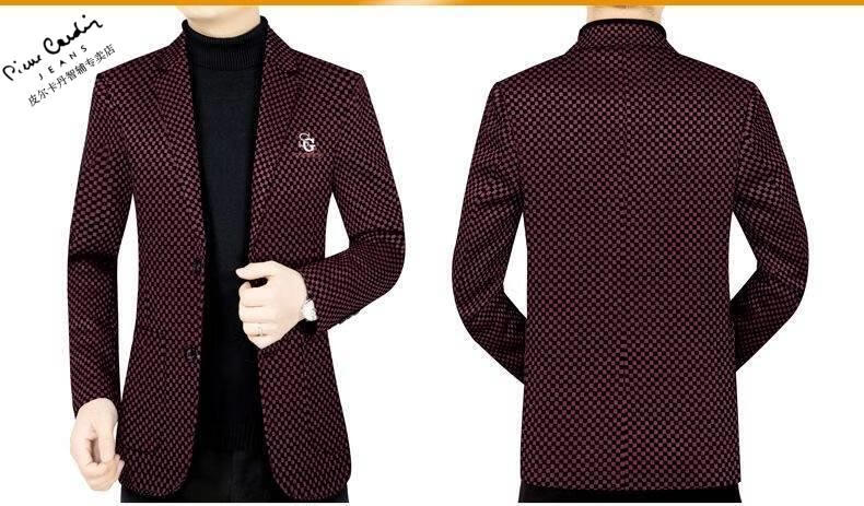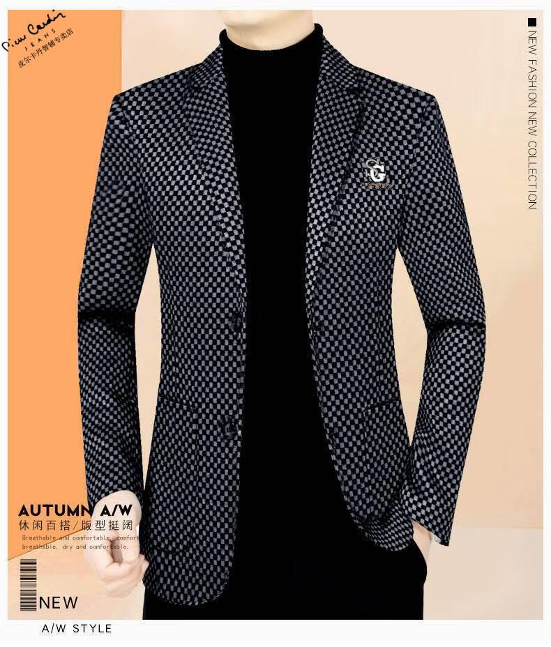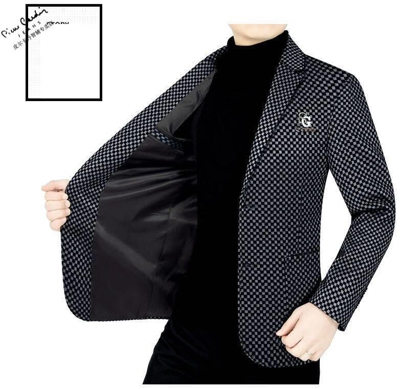Pierre Cardin spring and autumn new style middle-aged men's casual suits dad suits single-piece houndstooth top XZ1770 red 180 135-150Jin Jin equals 0.5 kg
