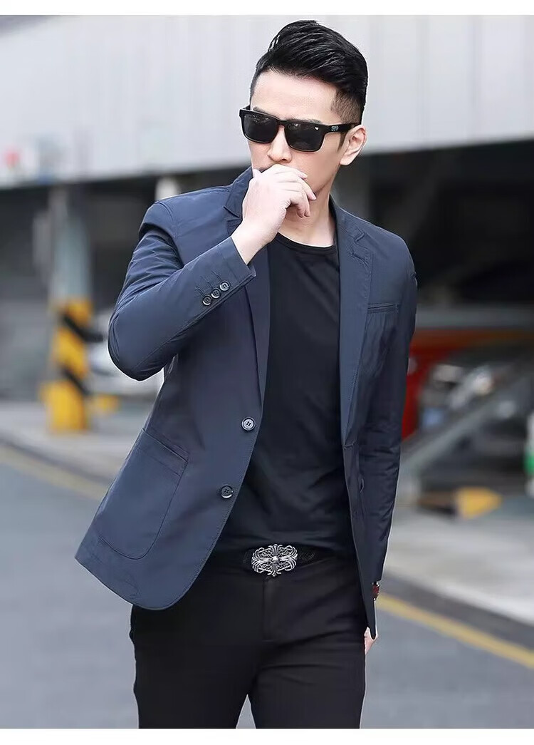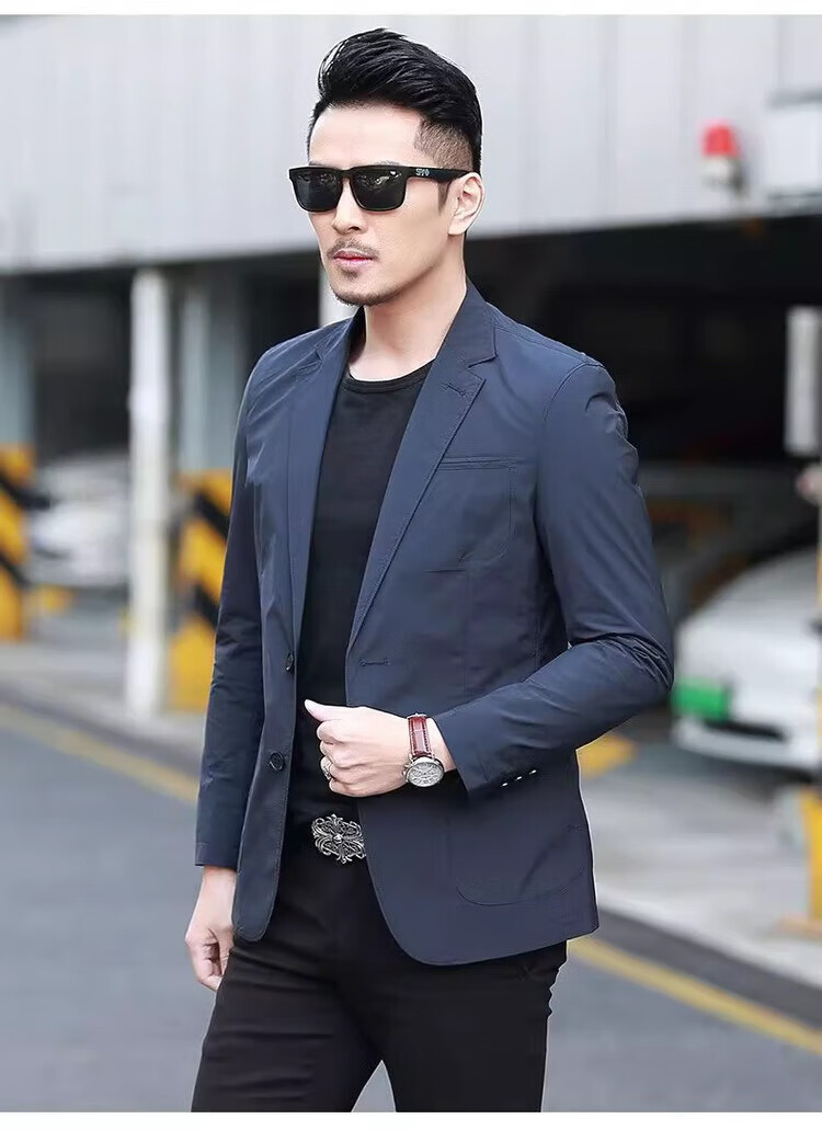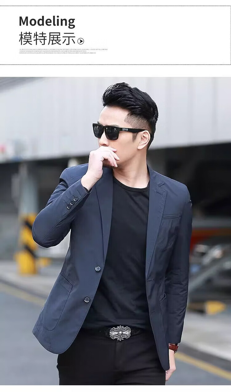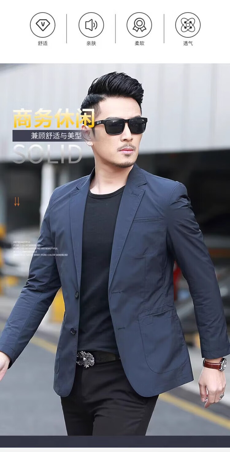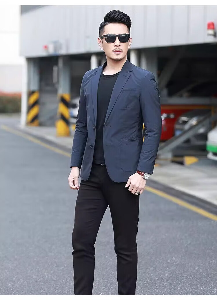 ROMON Men's Simple Suit Jacket 2024 Spring and Autumn Men's Casual Small Suit Solid Color Slim Fit Versatile Single Suit Blue M