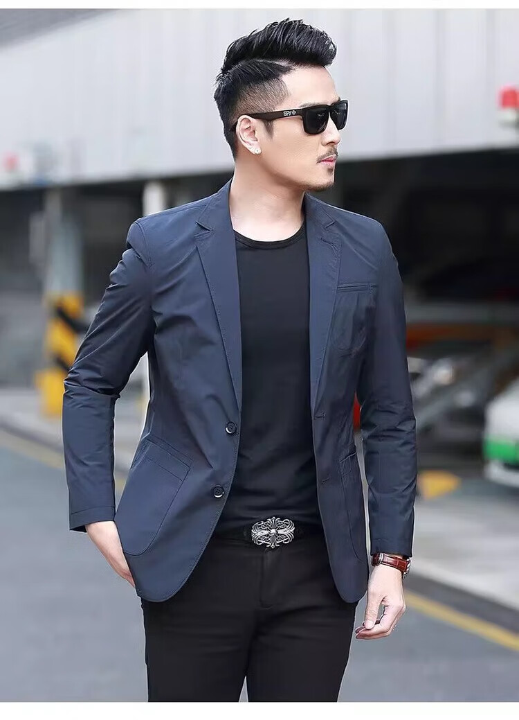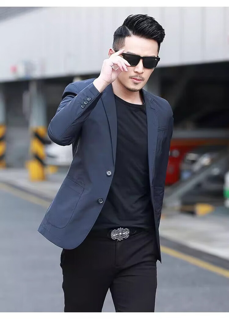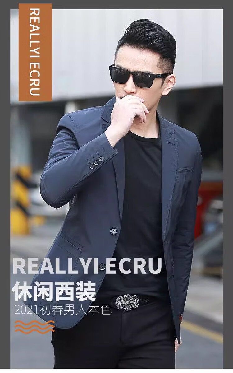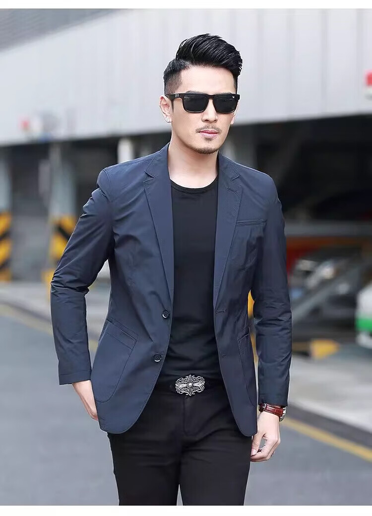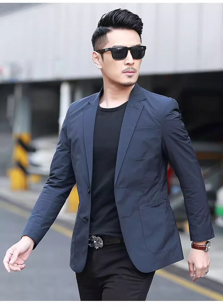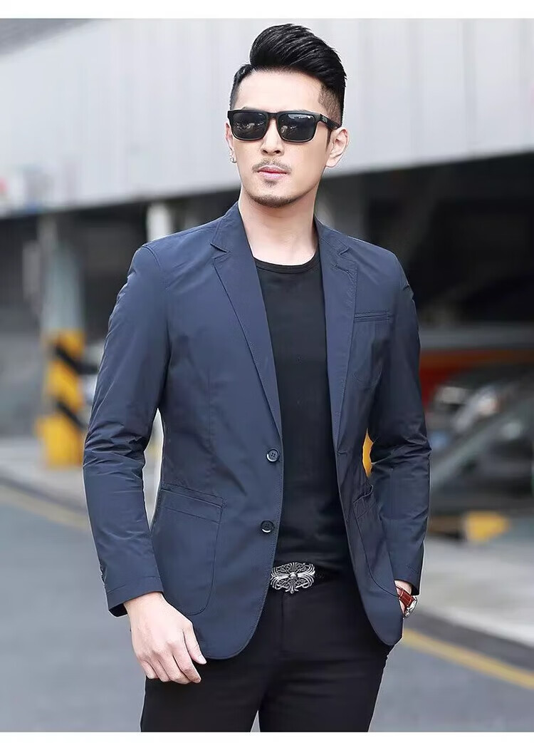 ROMON Men's Simple Suit Jacket 2024 Spring and Autumn Men's Casual Small Suit Solid Color Slim Fit Versatile Single Suit Blue M