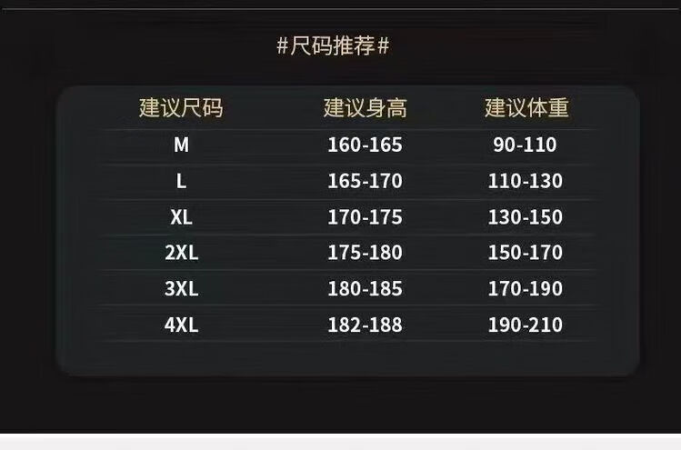China (cm) 165 / 88-90 170 / 96-98 175 / 108-110 180 / 118-122 185 / 126-130