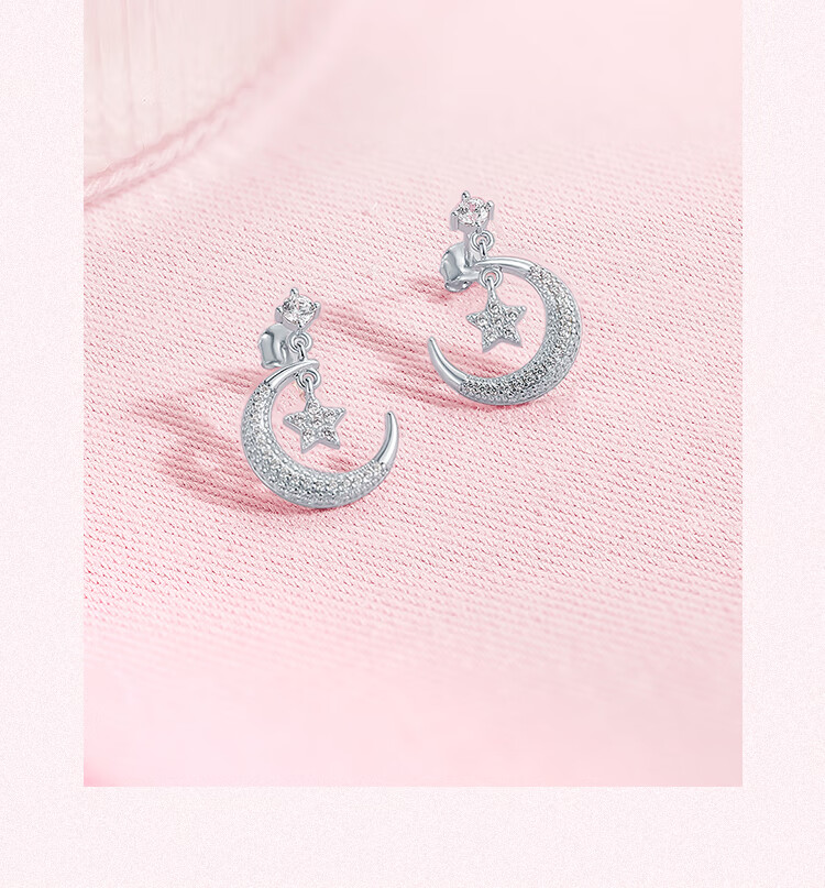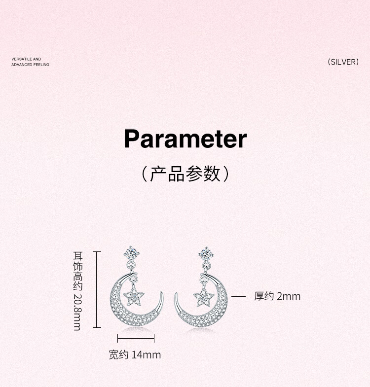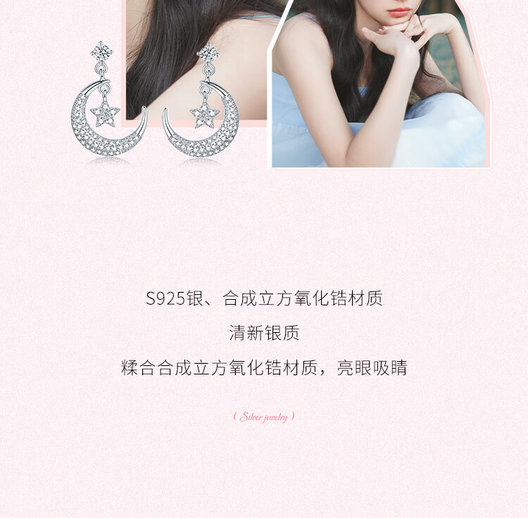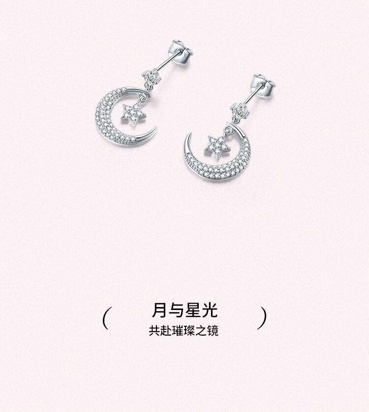 Saturday Fortune (ZLF) S925 Silver Jewelry Earrings for Women Moon and Starlight Fashionable Temperament Niche Design Earrings Gift Pair of Earrings