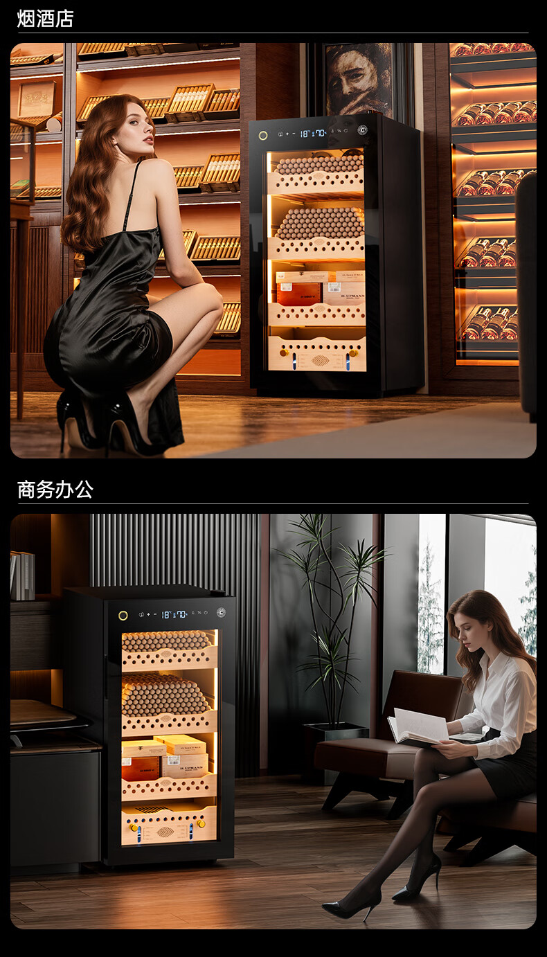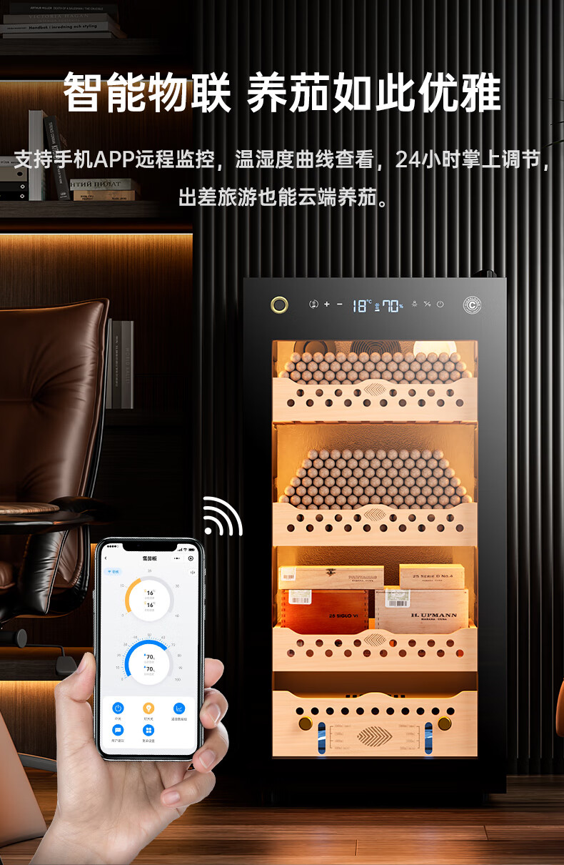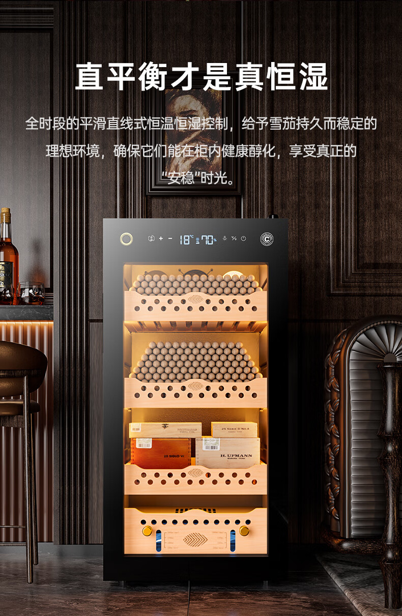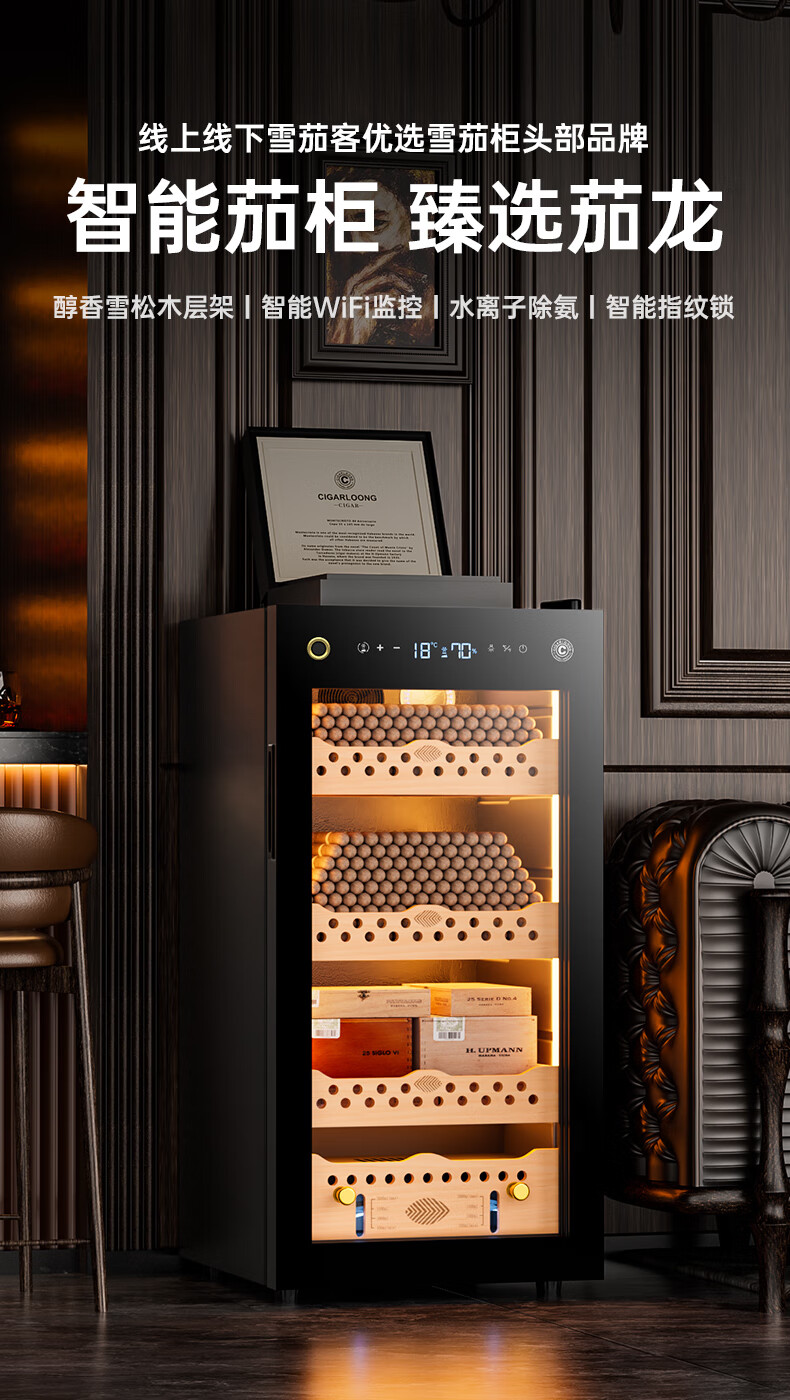 CIGARLOONG 95C constant temperature and humidity cigar cabinet air-cooled frost-free compressor household energy-saving silent cedar wood liner shelf WiFi remote IoT ammonia removal fingerprint lock Cuban cigar cabinet 95C cigar basket model + purified ammonia + WiFi + fingerprint lock