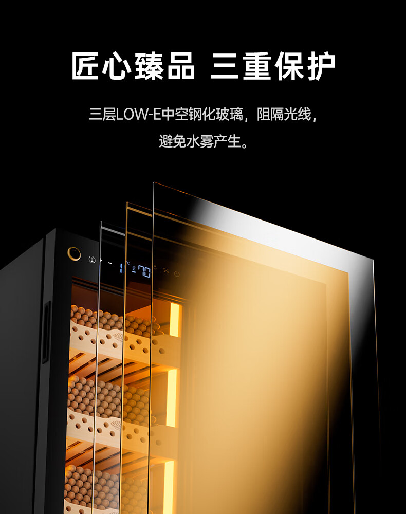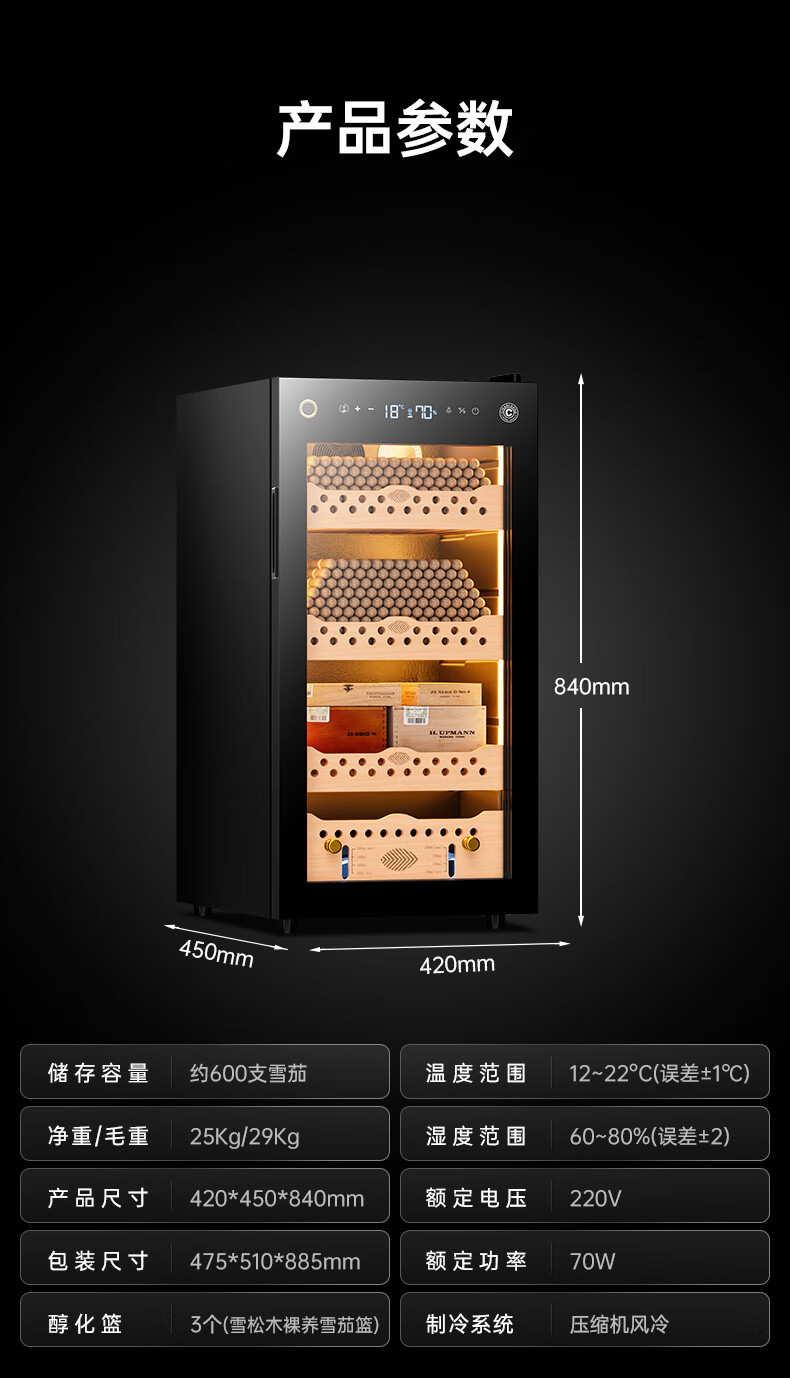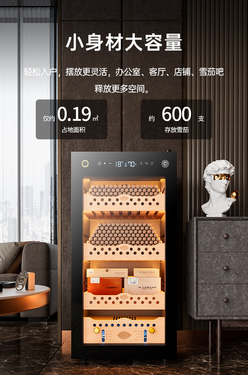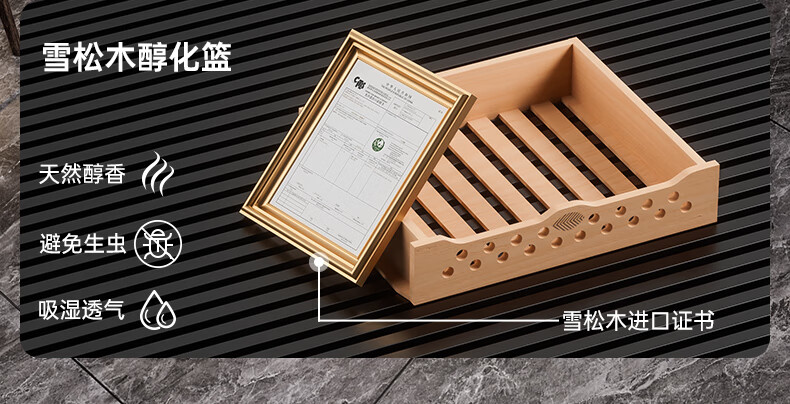 CIGARLOONG 95C constant temperature and humidity cigar cabinet air-cooled frost-free compressor household energy-saving silent cedar wood liner shelf WiFi remote IoT ammonia removal fingerprint lock Cuban cigar cabinet 95C cigar basket model + purified ammonia + WiFi + fingerprint lock