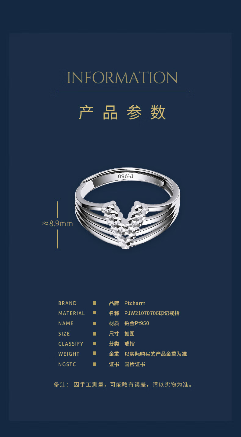 Pt.Charm new PT950 platinum ring women's fashionable light luxury live seal ring engagement ring for Valentine's Day for wife, in stock, national inspection certificate 4.1-4.2g
