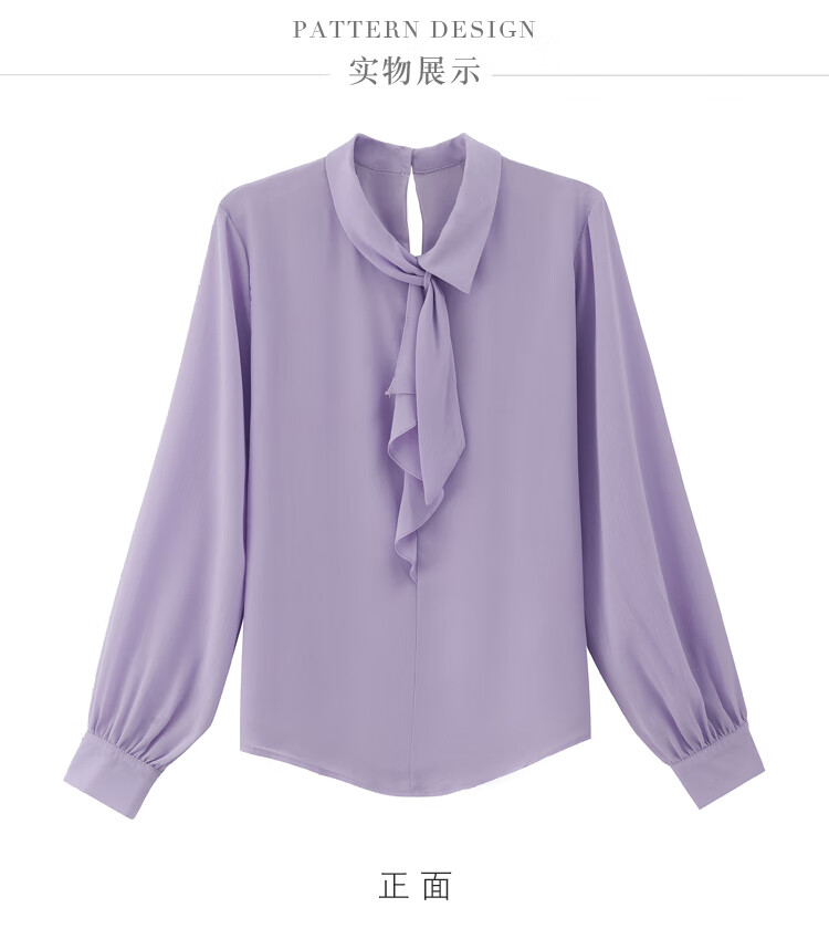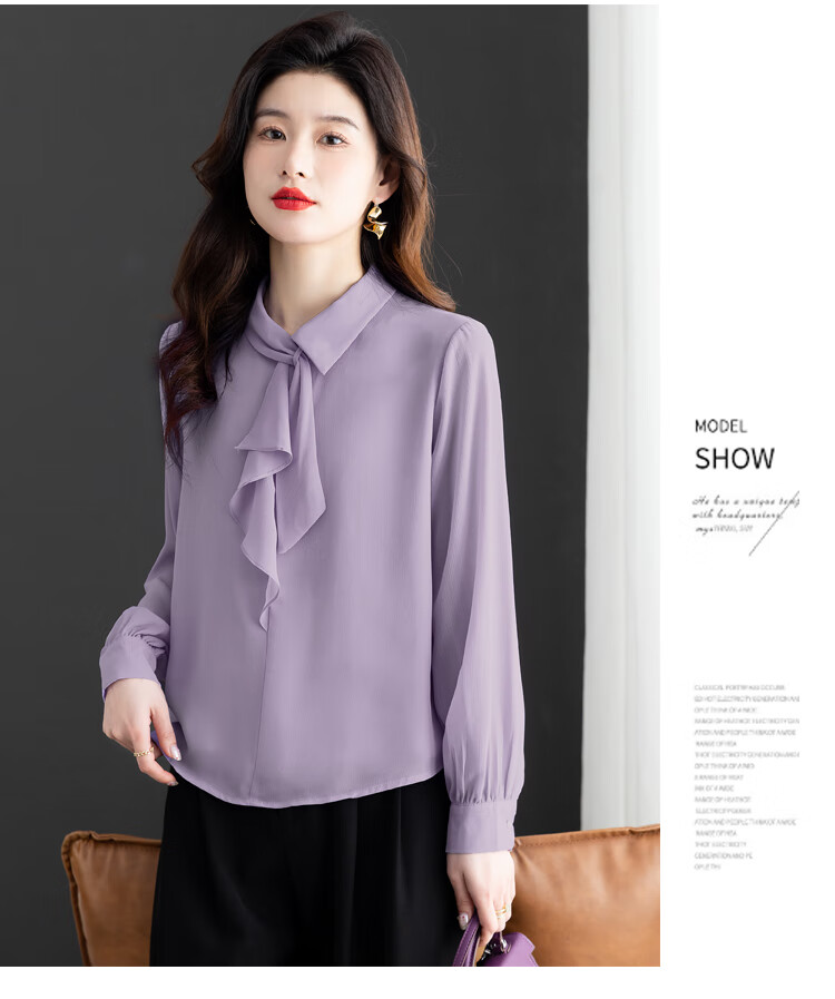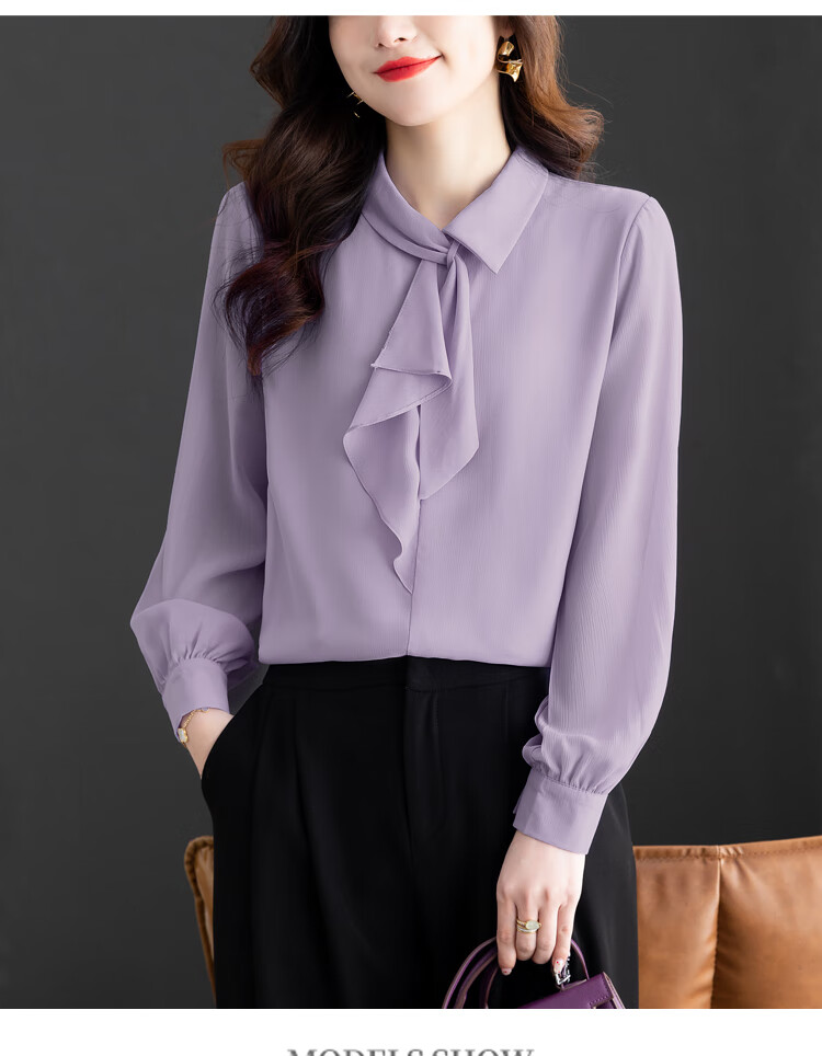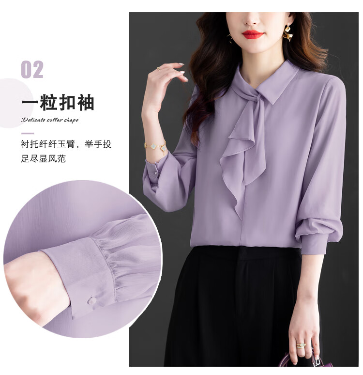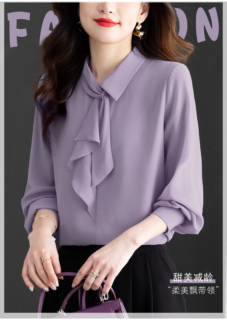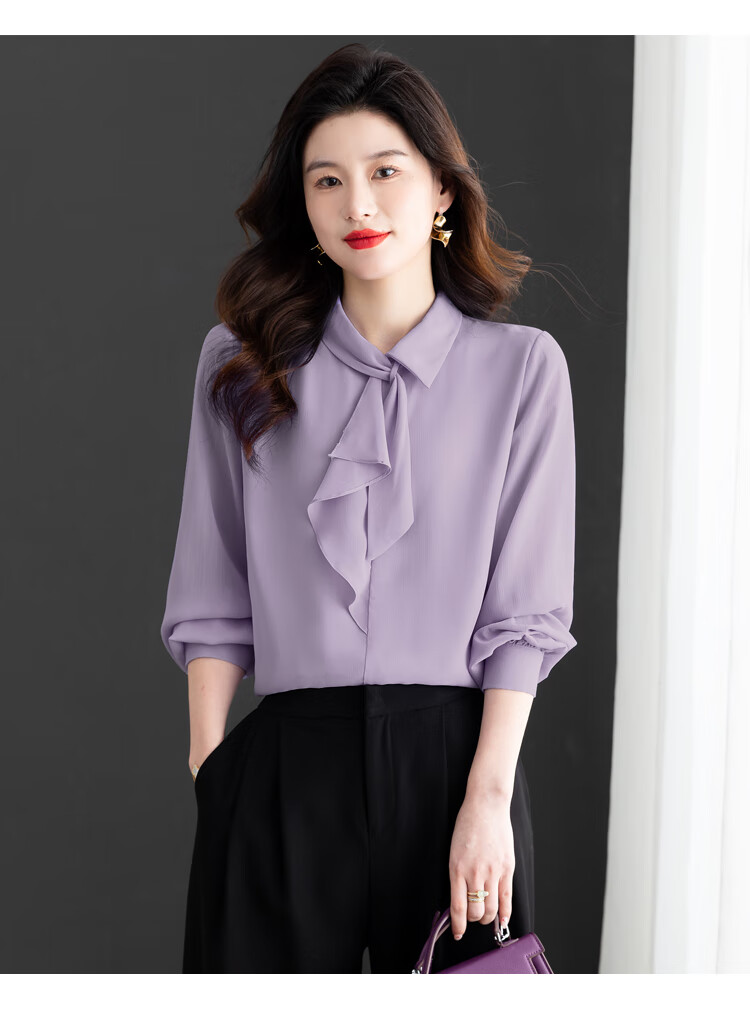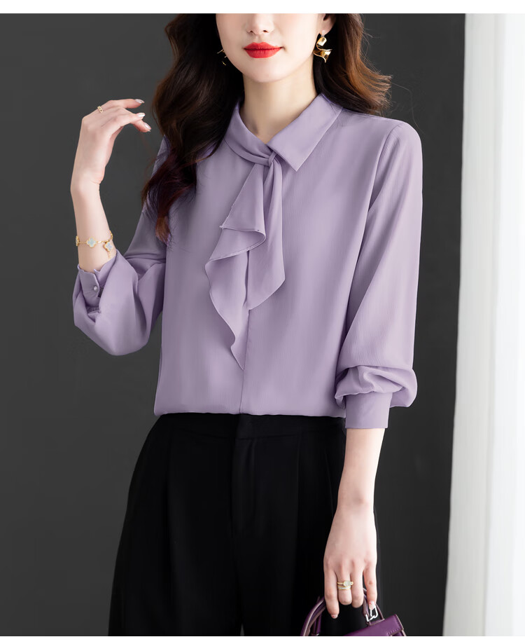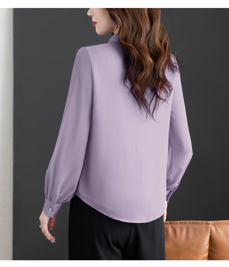 Oubaixi temperament chiffon ribbon shirt for women spring 2026 new style fashionable and age-reducing long-sleeved top purple XL