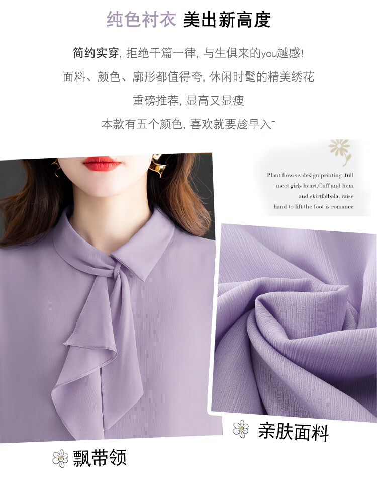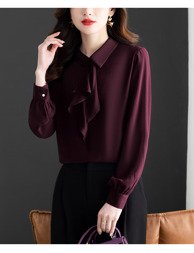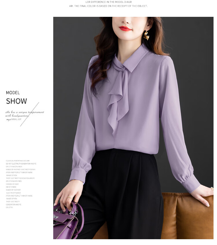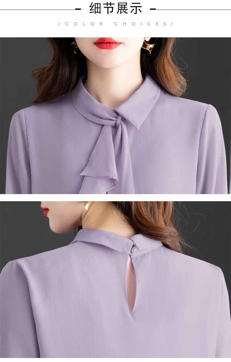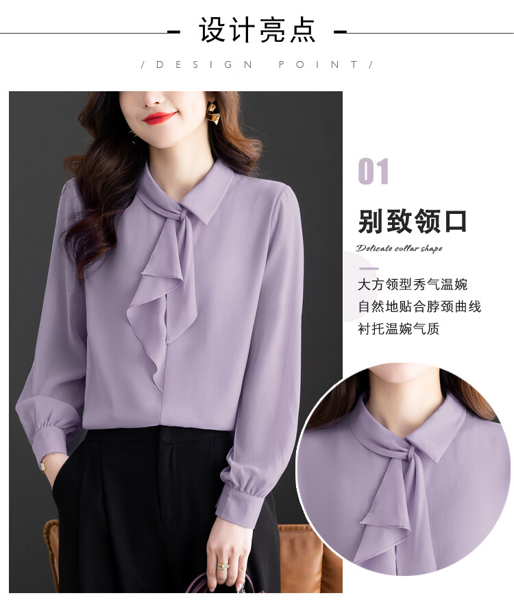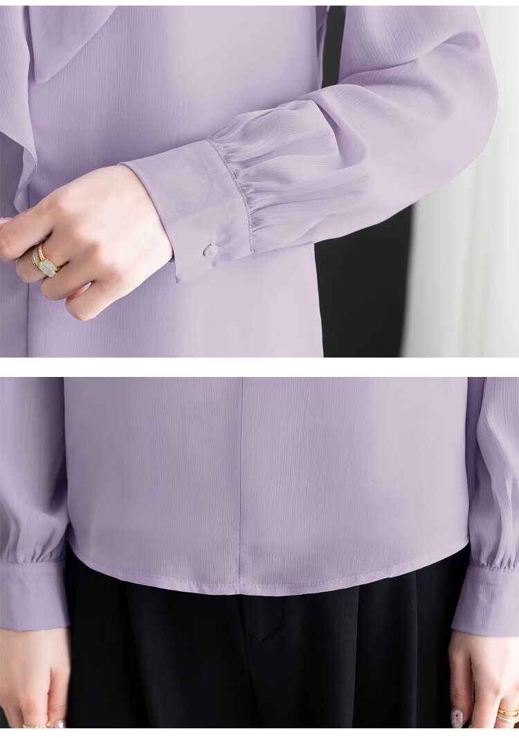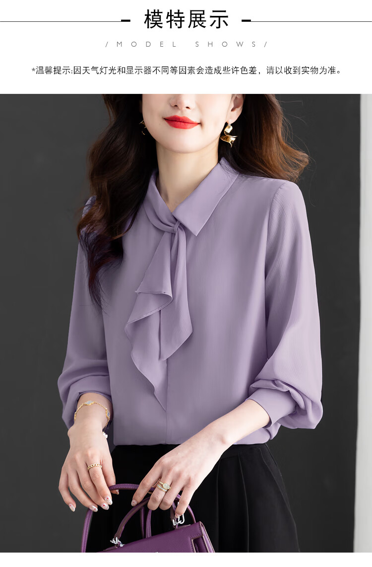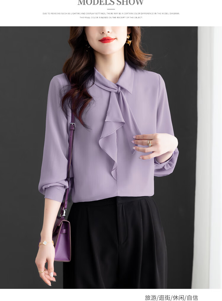 Oubaixi temperament chiffon ribbon shirt for women spring 2026 new style fashionable and age-reducing long-sleeved top purple XL