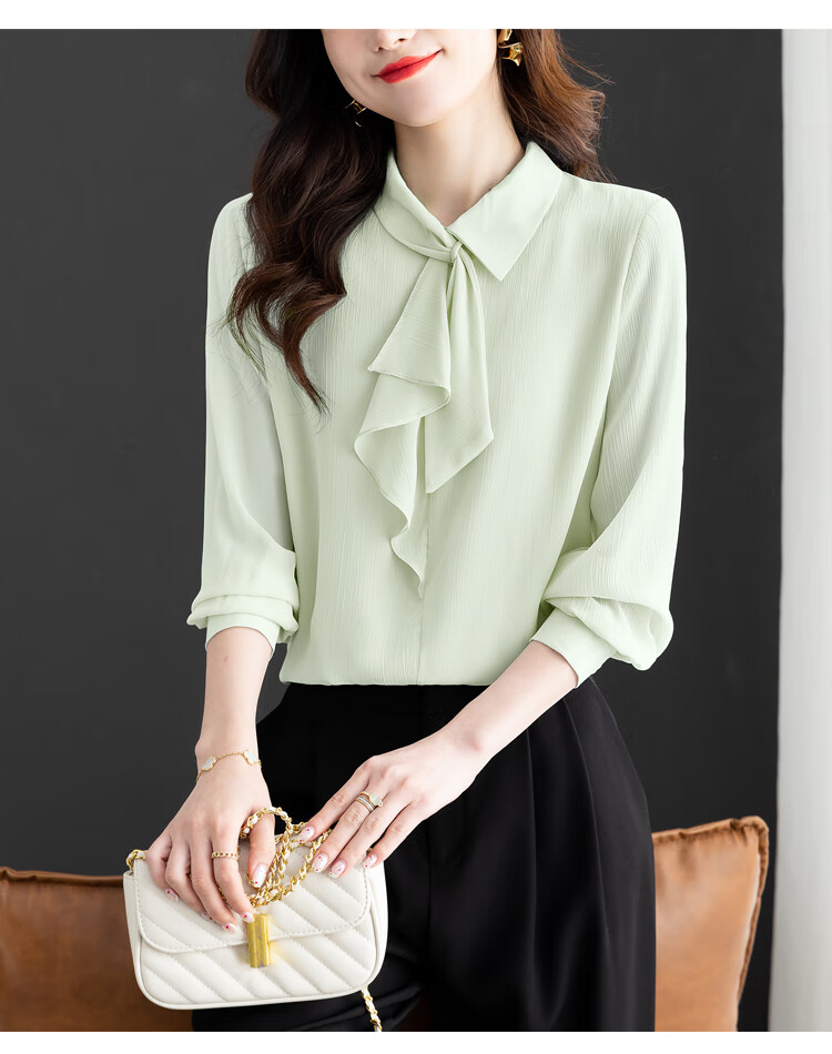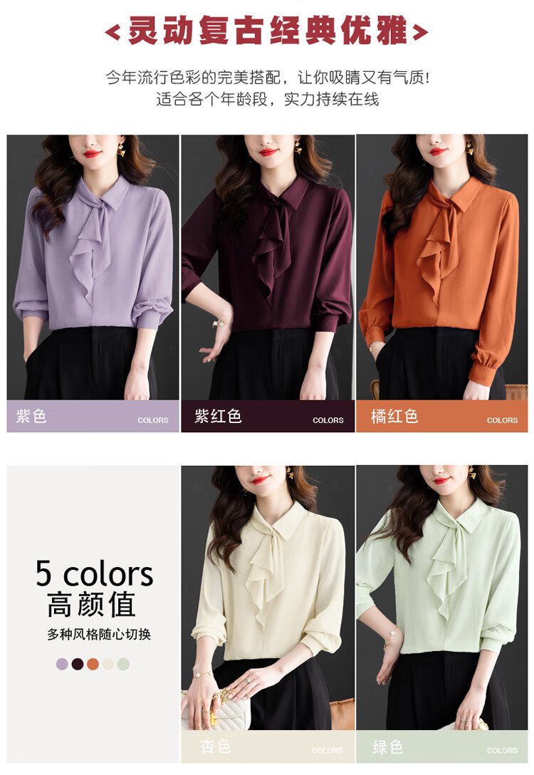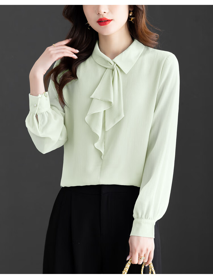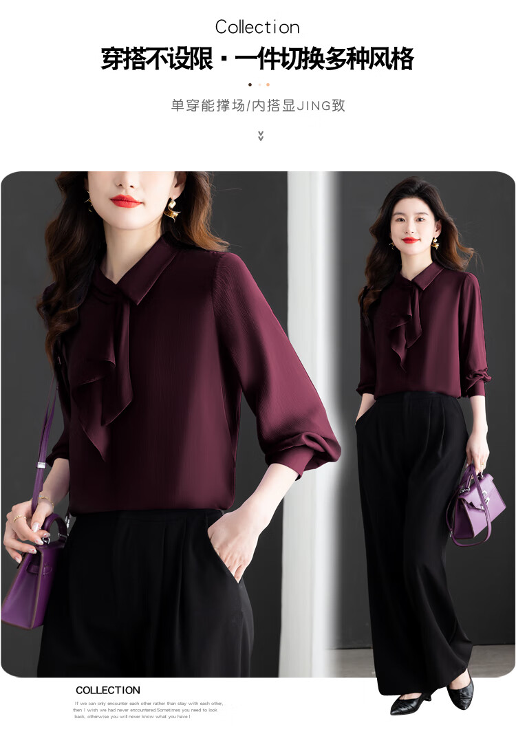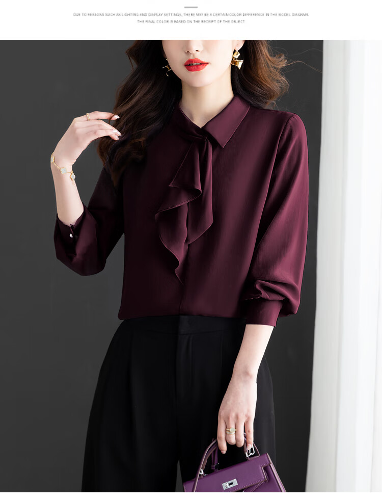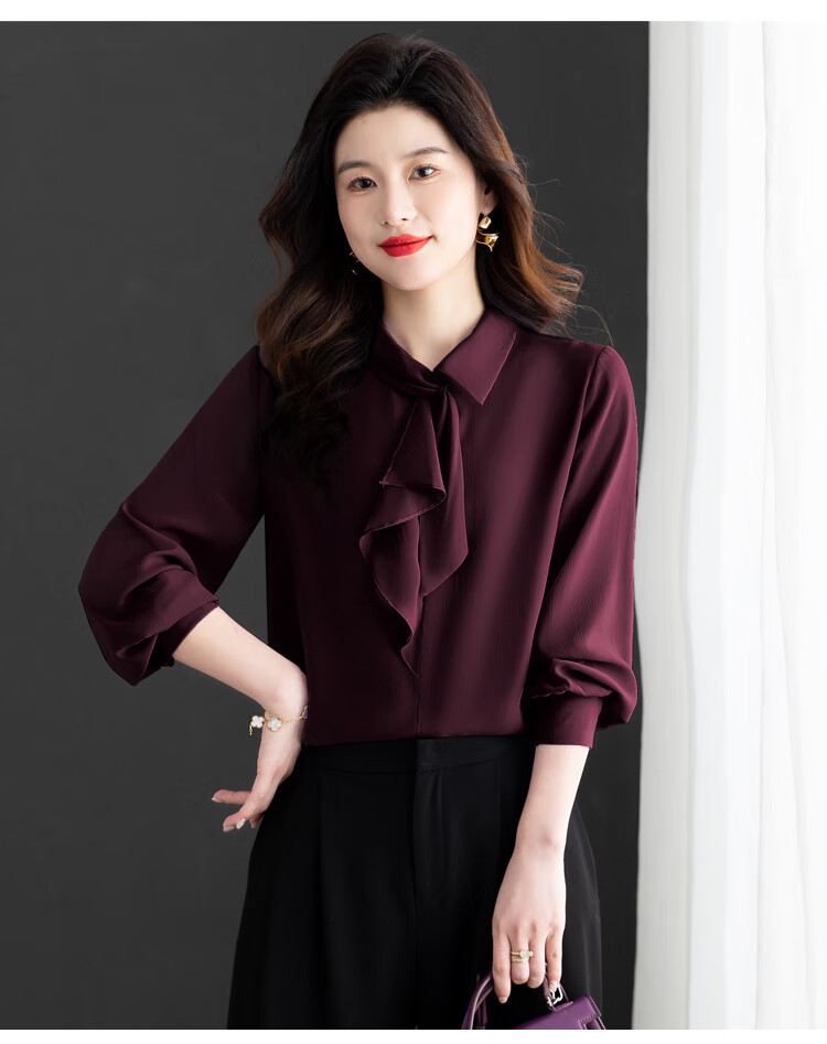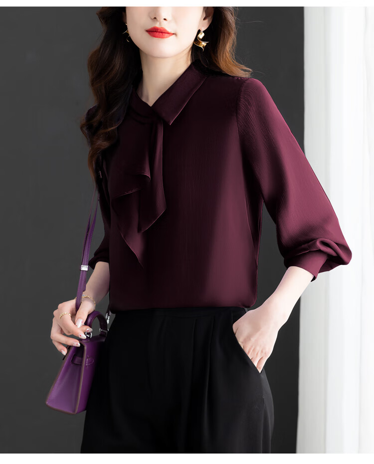 Oubaixi temperament chiffon ribbon shirt for women spring 2026 new style fashionable and age-reducing long-sleeved top purple XL