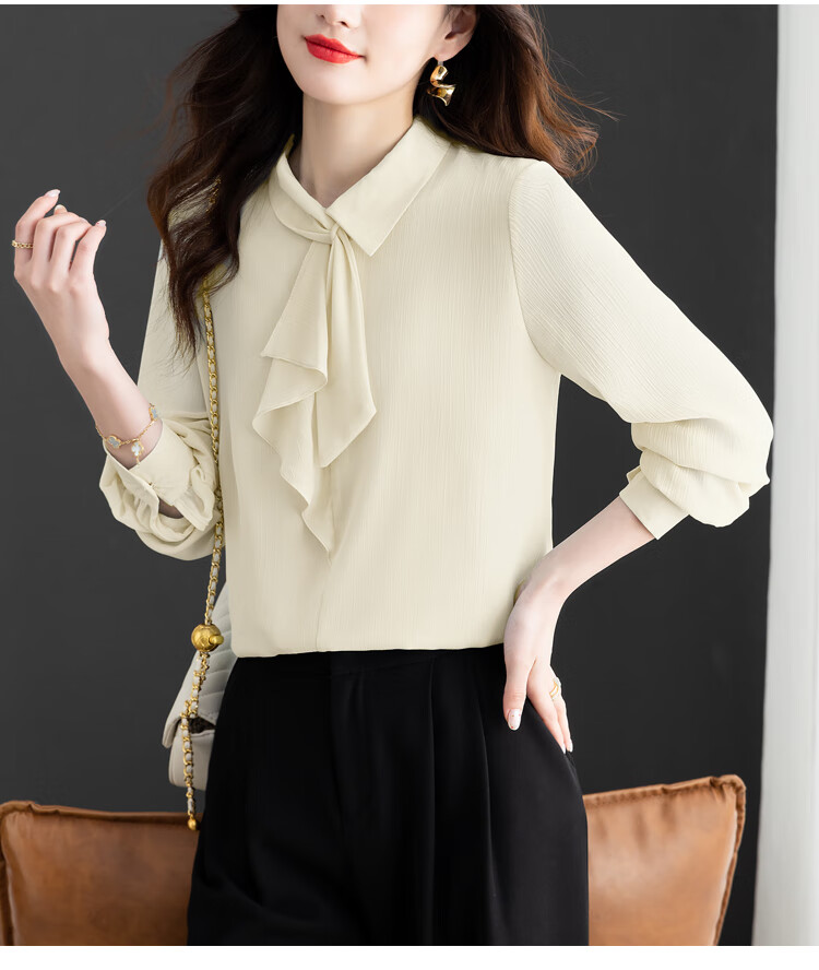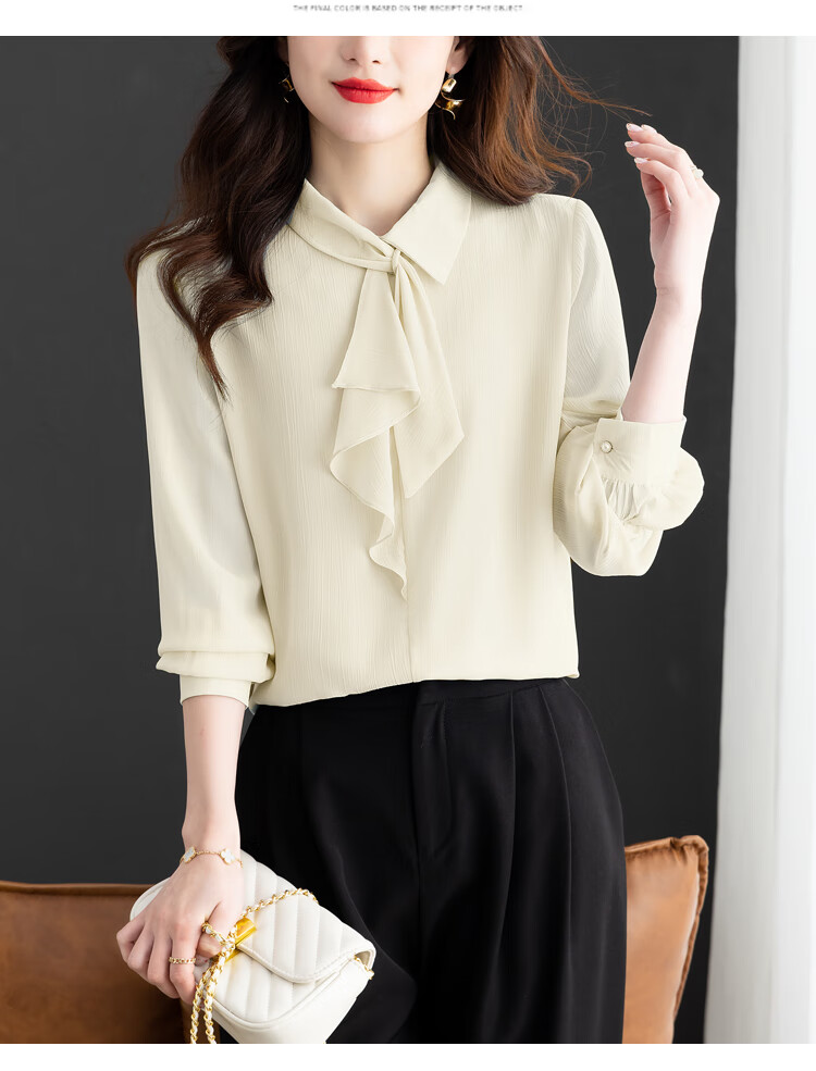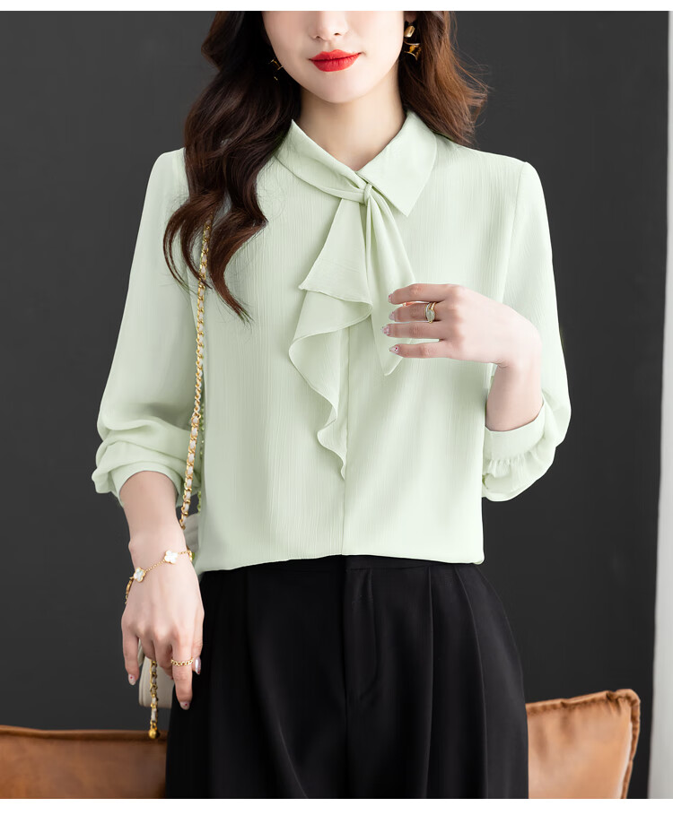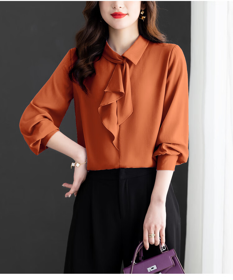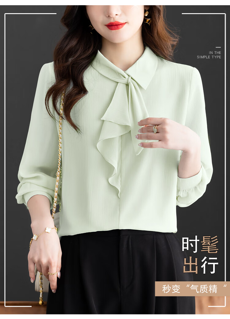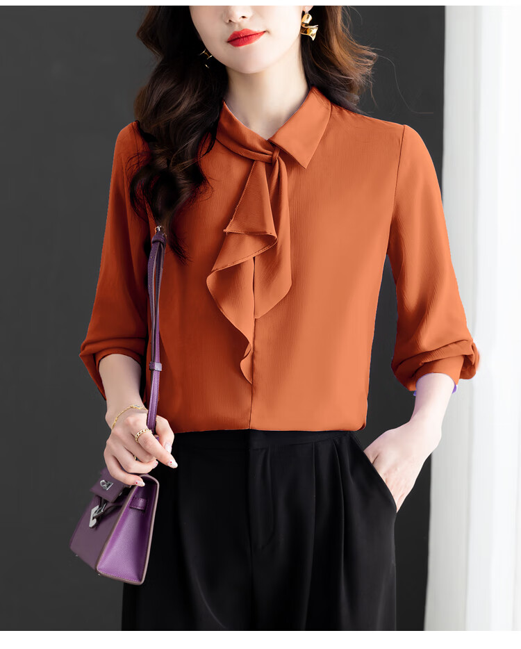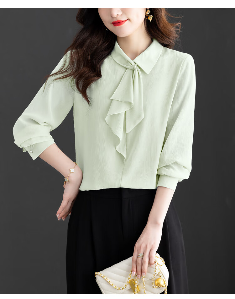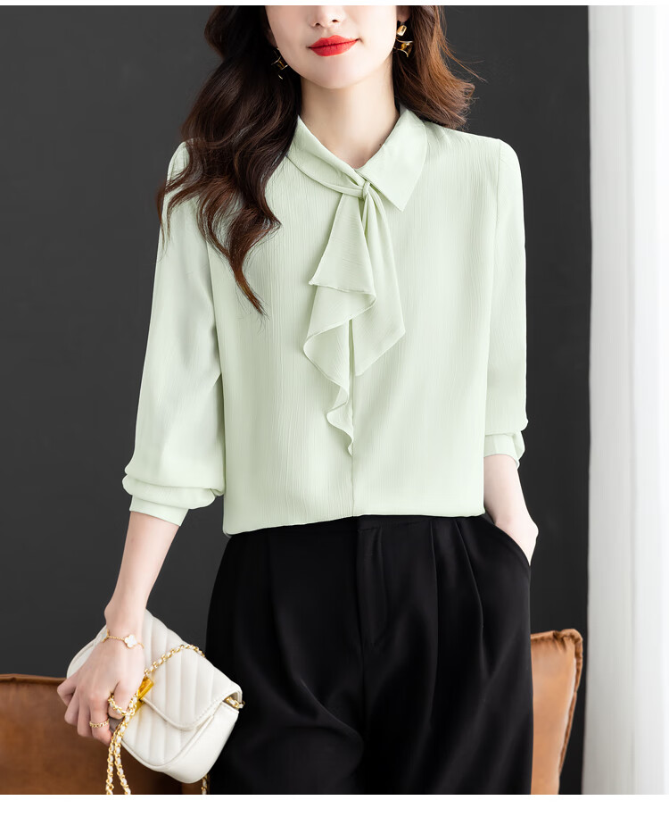 Oubaixi temperament chiffon ribbon shirt for women spring 2026 new style fashionable and age-reducing long-sleeved top purple XL
