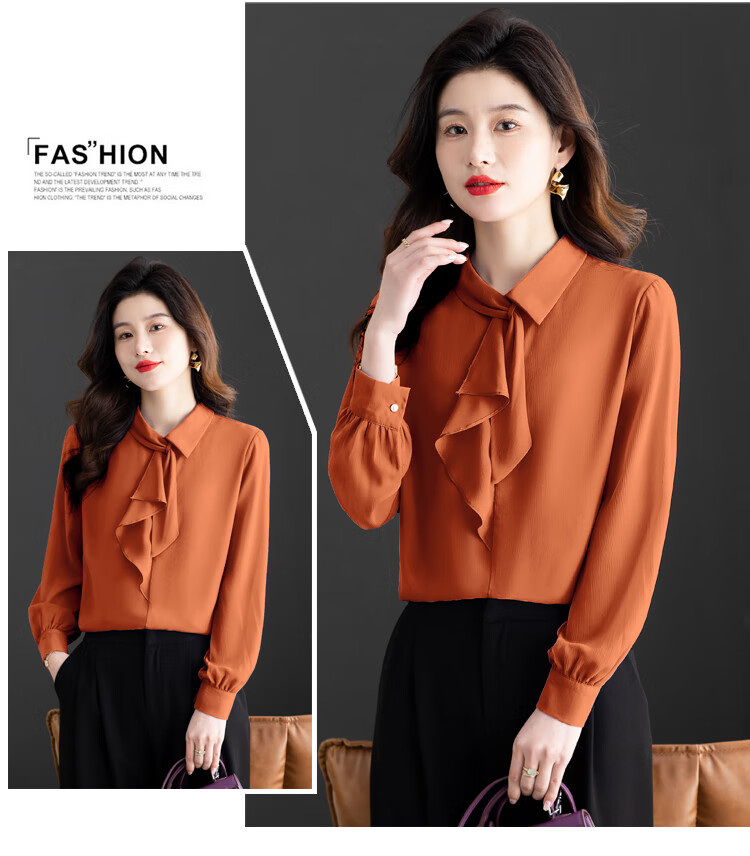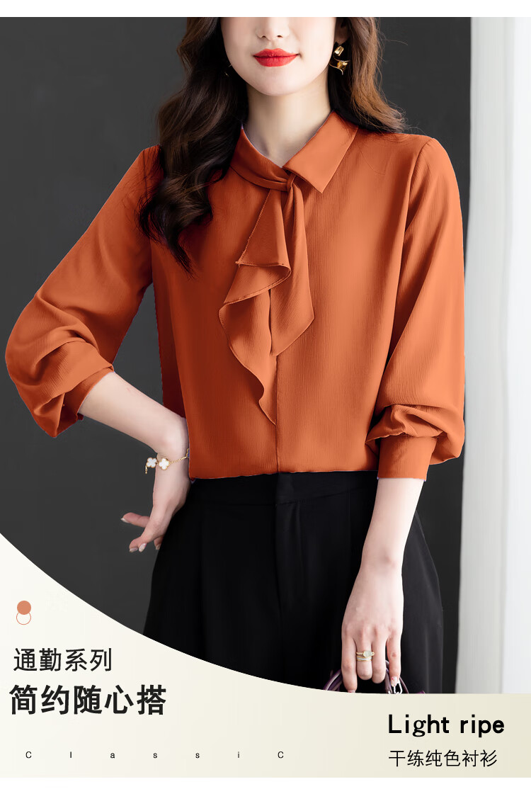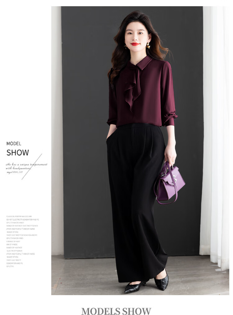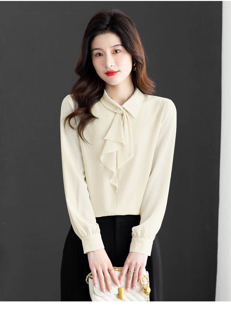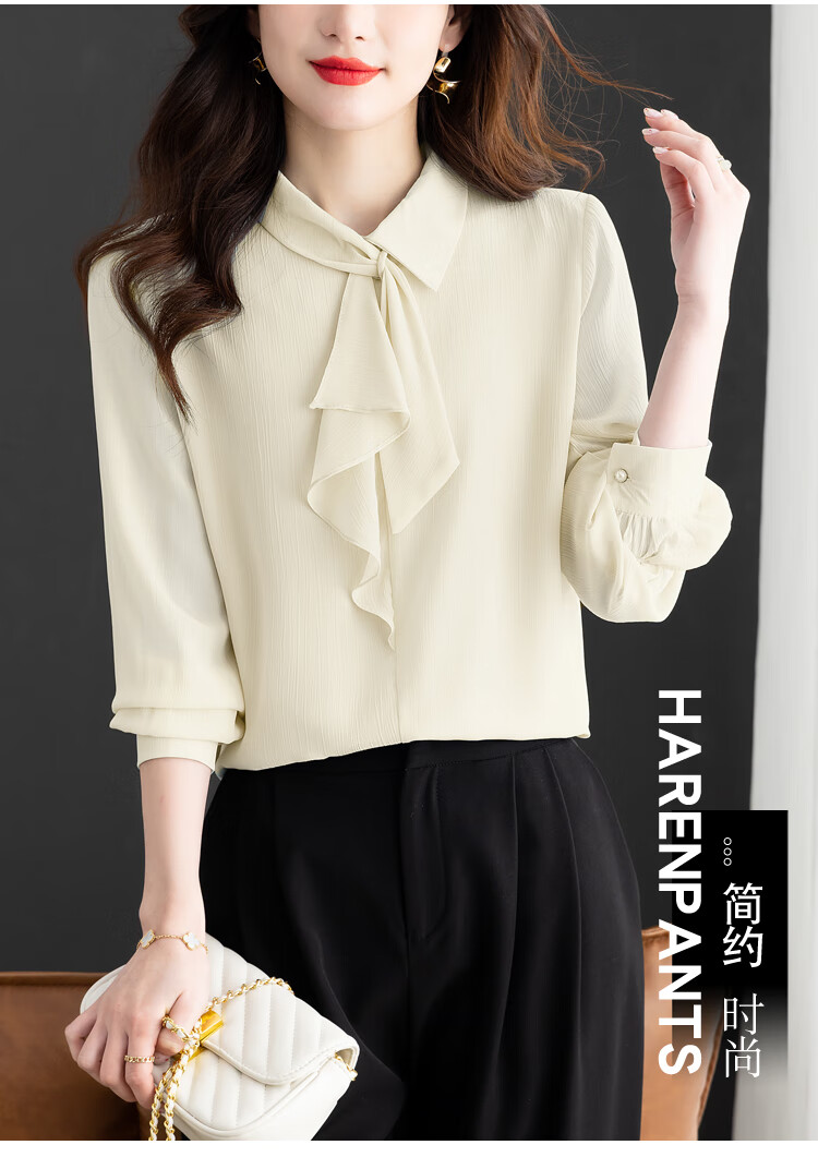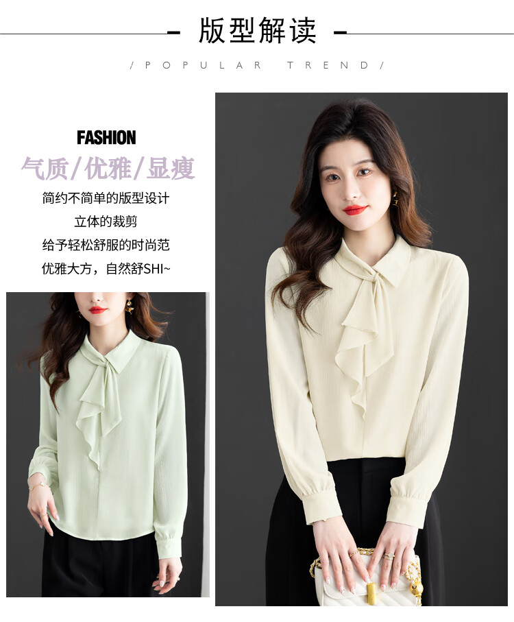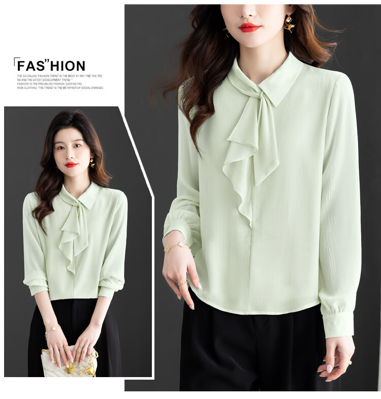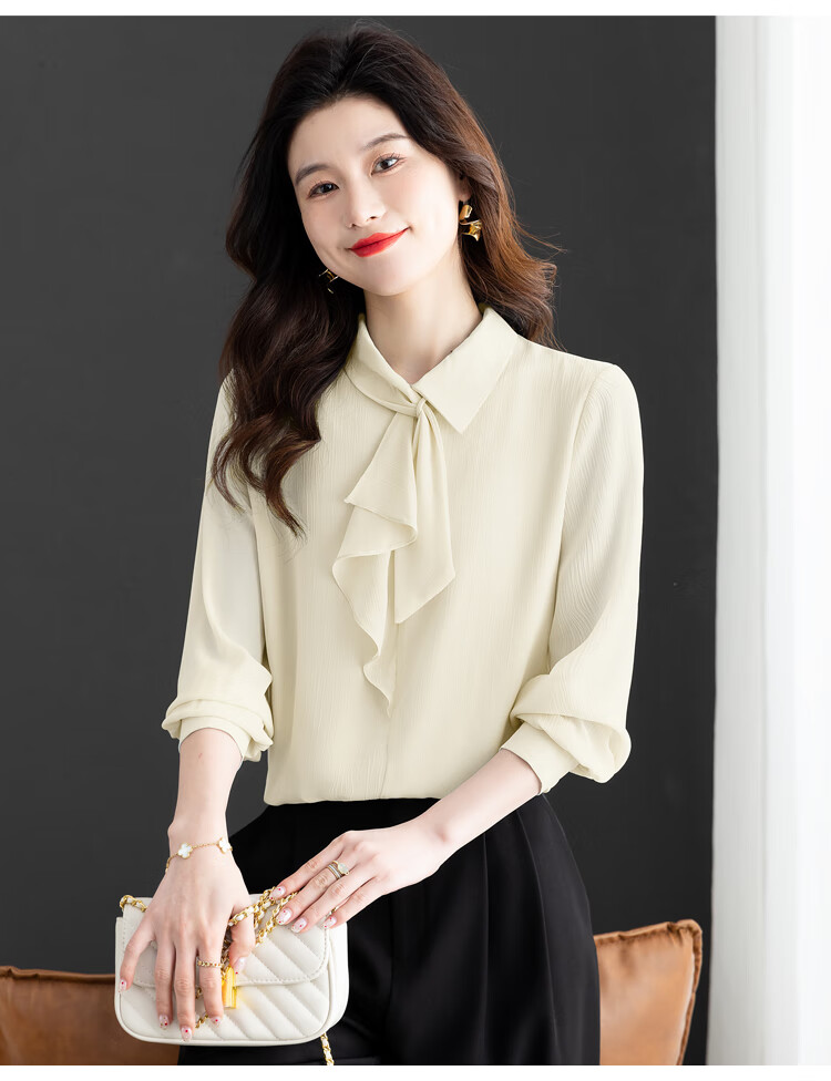 Oubaixi temperament chiffon ribbon shirt for women spring 2026 new style fashionable and age-reducing long-sleeved top purple XL