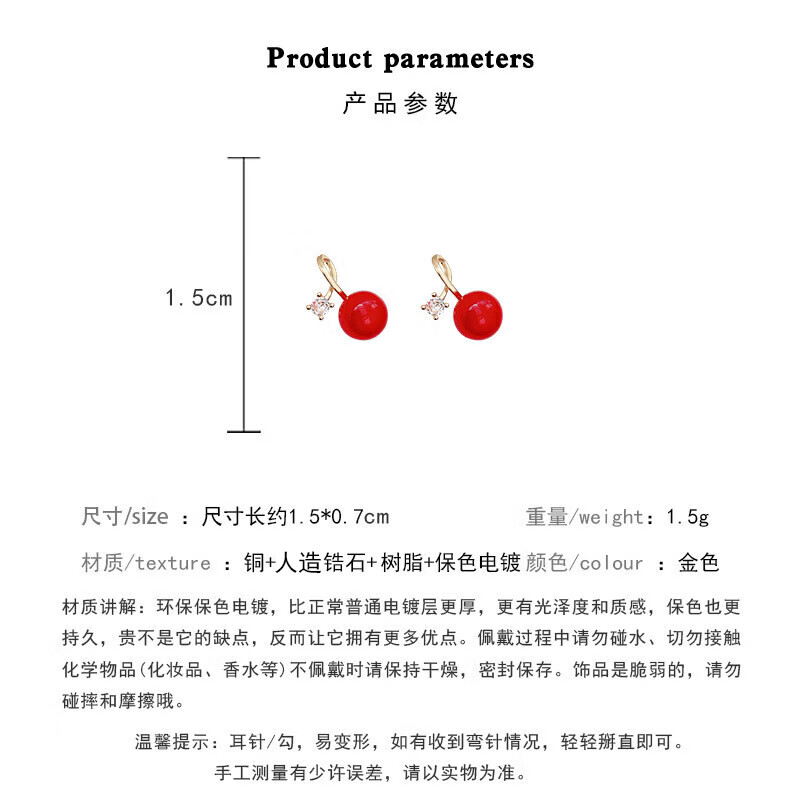 Youfang Red Acacia Bean Imitation Zirconia Earrings Women's Niche Design Light Luxury High-Quality New Year's Earrings 2025 New Gold Pair