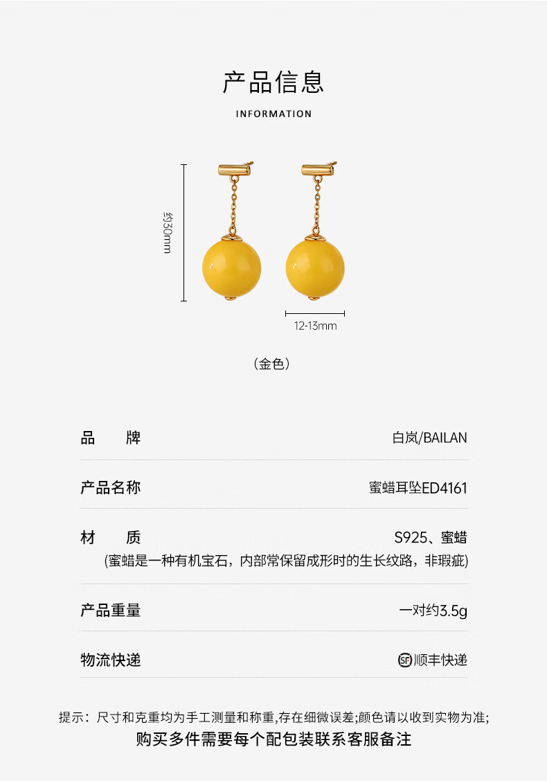 Bailan Beeswax Earrings for Women 925 Silver Earrings Design Light Luxury Fashion Light Luxury Elegant Temperament Birthday Gift for Wife S925 Silver & Beeswax