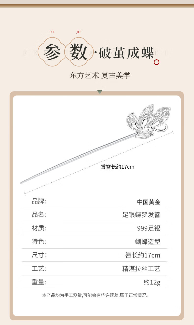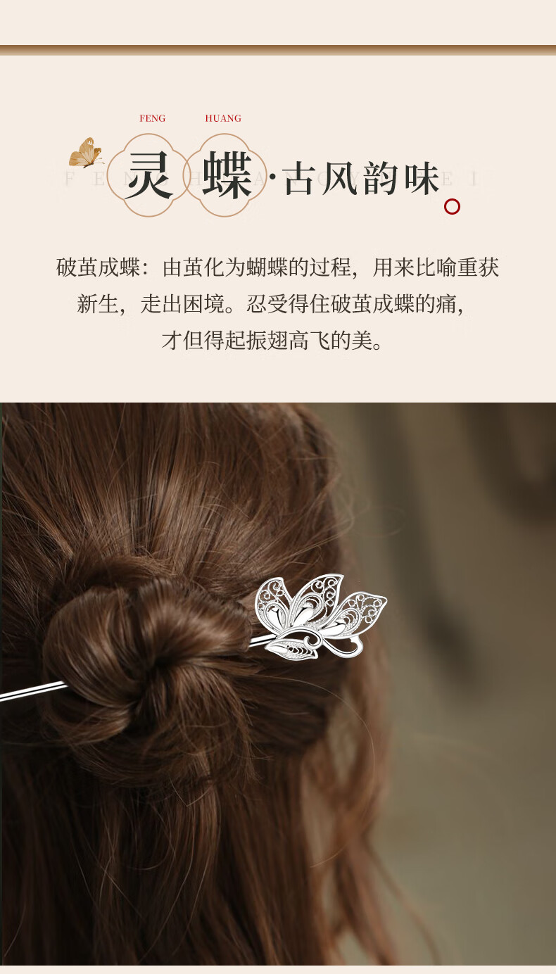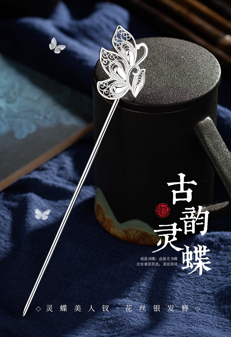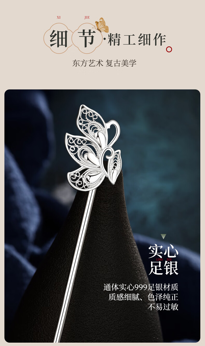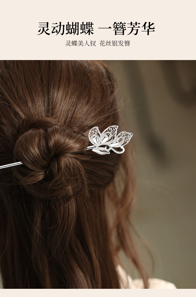 Chinese Gold Butterfly Dream Hairpin for Women Ancient Style Silver Hairpin Hanfu Hairpin Hairpin Birthday Gift for Girlfriend and Wife Wedding Anniversary 999 Silver Butterfly Dream Hairpin
