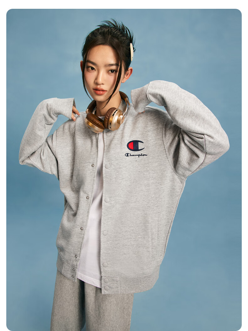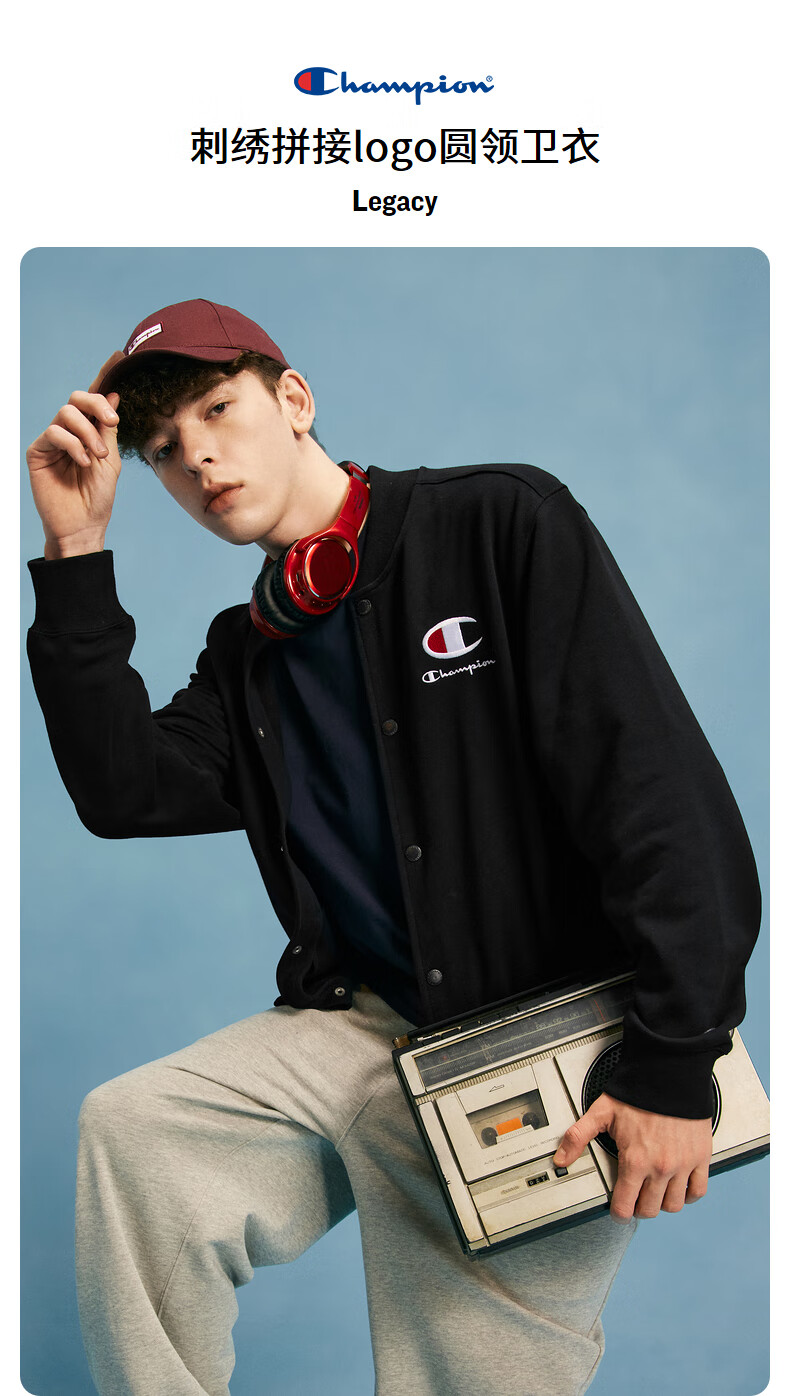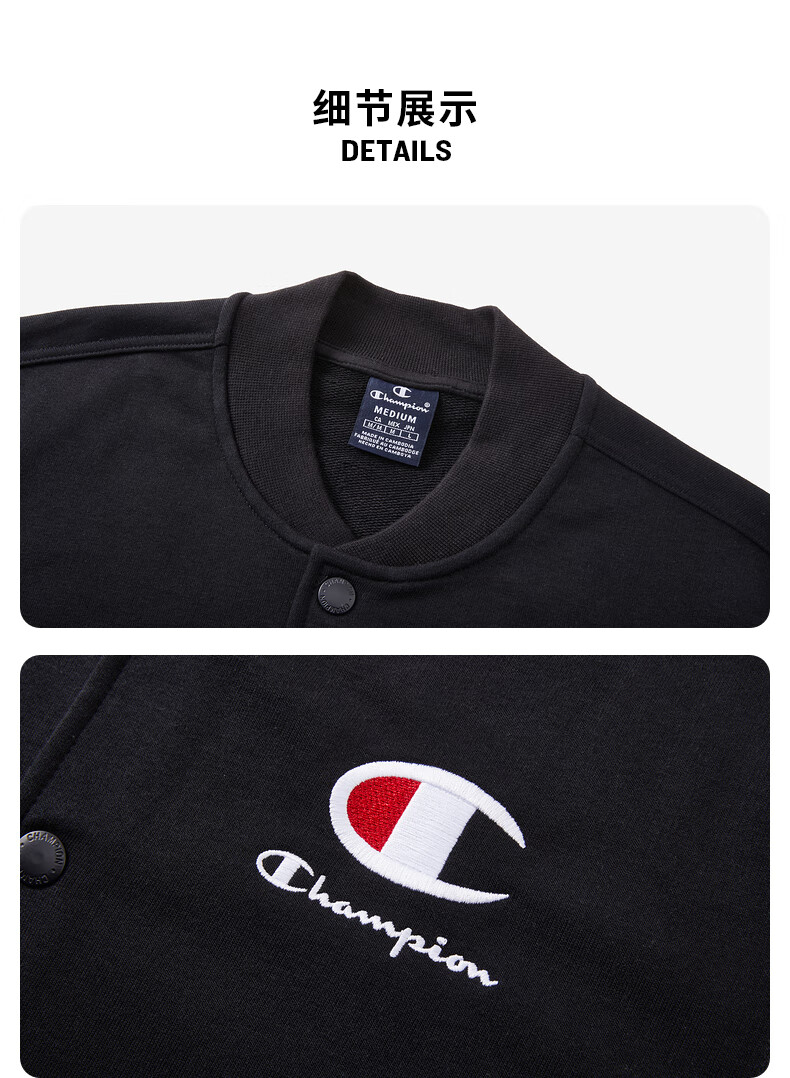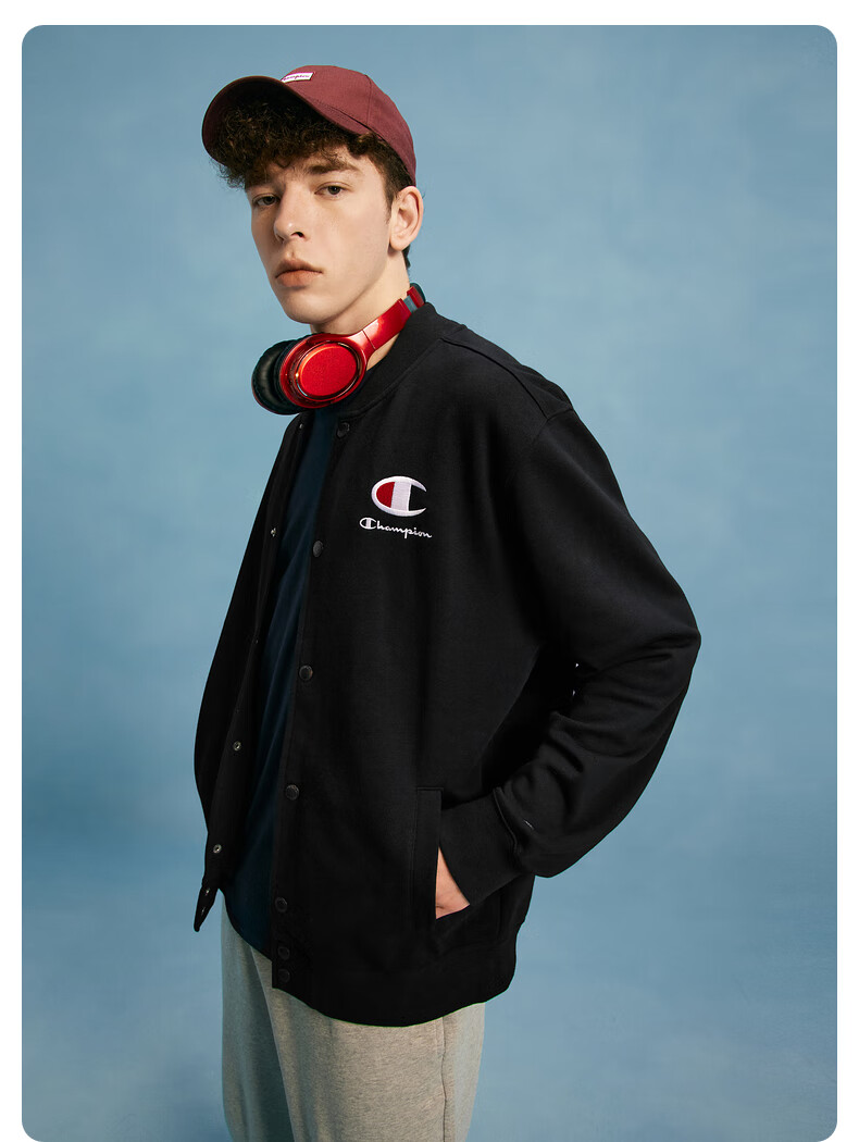Champion Champion Sweatshirt 24 Spring New Baseball Collar Sweatshirt Men's American Casual Embroidered Cardigan Jacket Women Black L